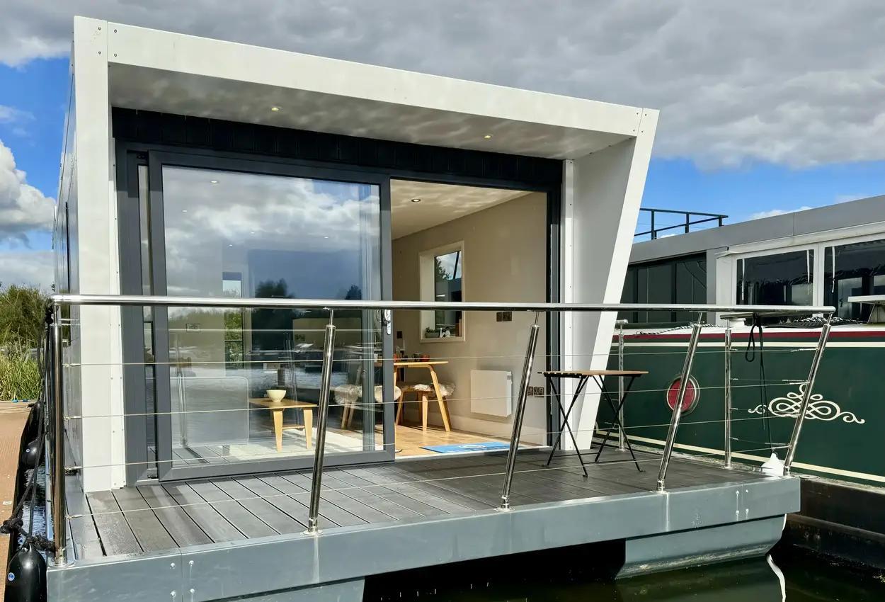 There is the ability to customize both the interior and exterior finishes, including the addition of a roof terrace accessed via a spiral staircase from the rear balcony. This flexibility allows customers to personalize the houseboat to their specific style and taste.