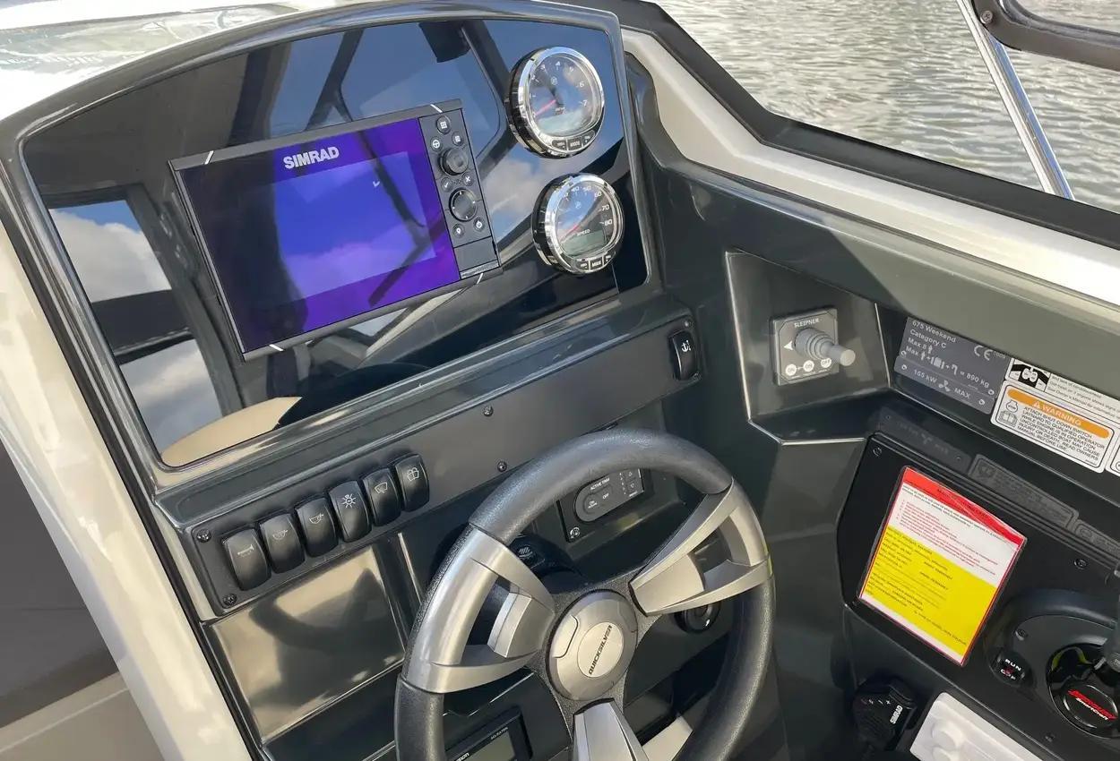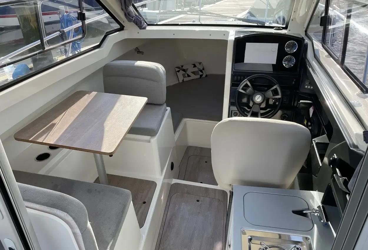 2022 Quicksilver 675 Weekend complete with Mercury 225hp outboard engine. with seating for 6 persons through the cockpit and saloon and a double berth forward. This boat is ready to go in great condition. Regularly serviced and maintained. View now in Swanwick. Fitted Extras:Bow cushionsCanopy coverGas cooker (to be reconnected)SinkDiesel heatingBowthrusterSimrad VHFSimrad GPS plotterFusion stereoElectric windlass