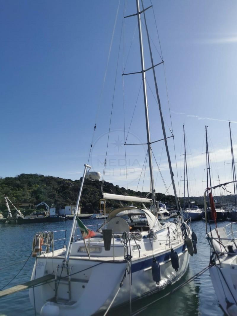 This HALLBERG RASSY 40 has had only one owner and is very well-equipped, featuring: teak deck, bow thruster, 3 electric winches, electric in-mast furling mainsail, equipped stern, davits for the outboard, Raymarine electronics with dual indoor/outdoor color GPS with chart plotting, autopilot, Webasto heating system, sprayhood, and bimini top, an aft owner’s cabin with a double bed, bathroom with a shower booth, a fully-equipped kitchen, fixed cockpit table, and a Hi-Fi system with external speakers - Check the full brochure, the video and the sea trial on our Web site MEDIA SHIP
