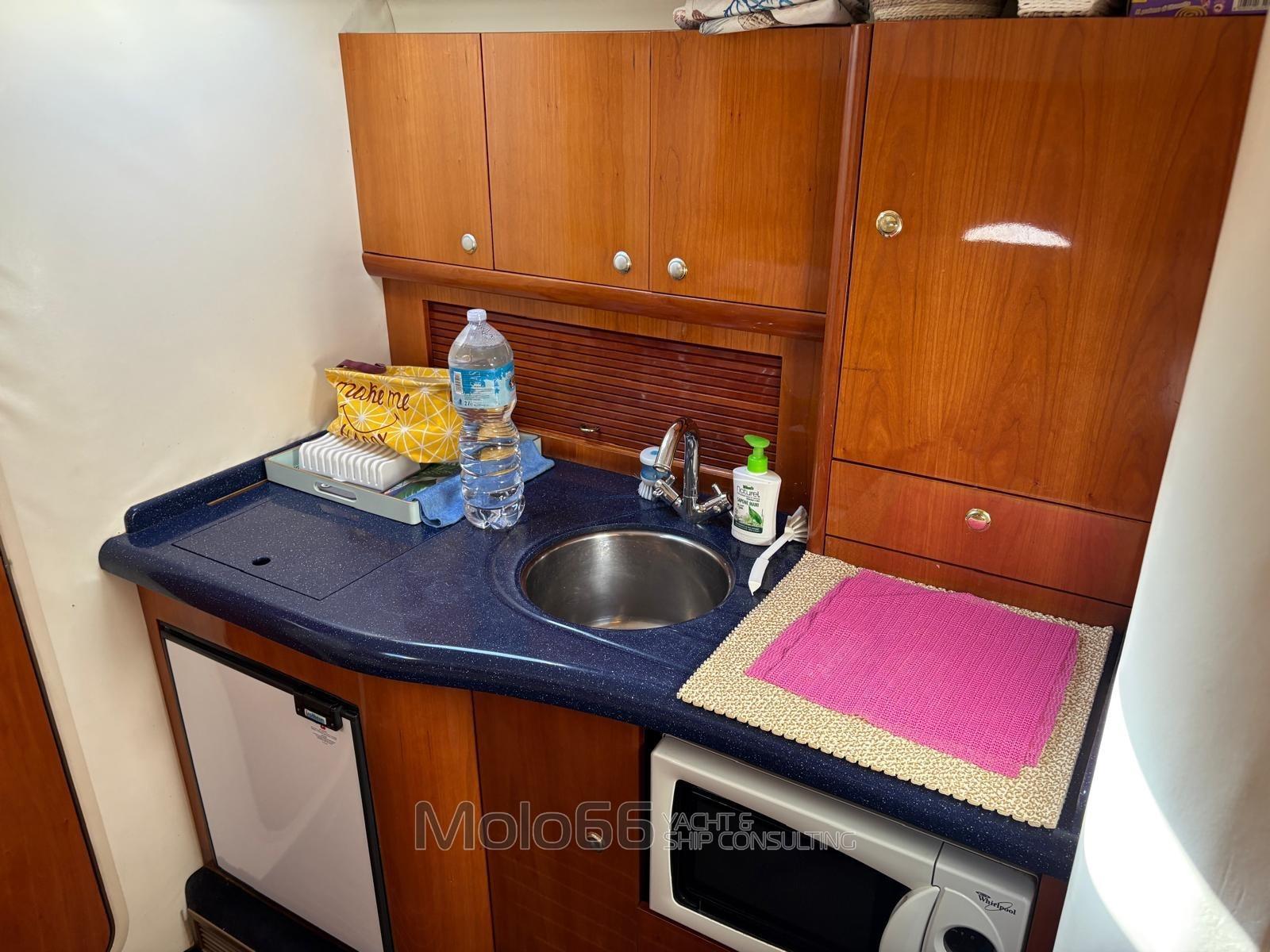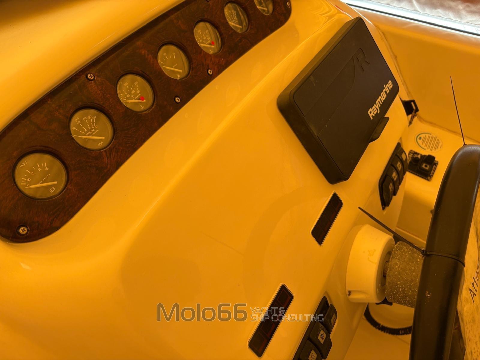 Engine Alarm, Bilge Alarm, Water pressure pump, Deck Shower, Hydraulic Flaps, Fire Extinguishing System, Washbasin in the cockpit, Gangway, Platform, Automatic Bilge Pump, Shorepower connector, Rollbar, Electric Windlass, swimming ladder, Horn.