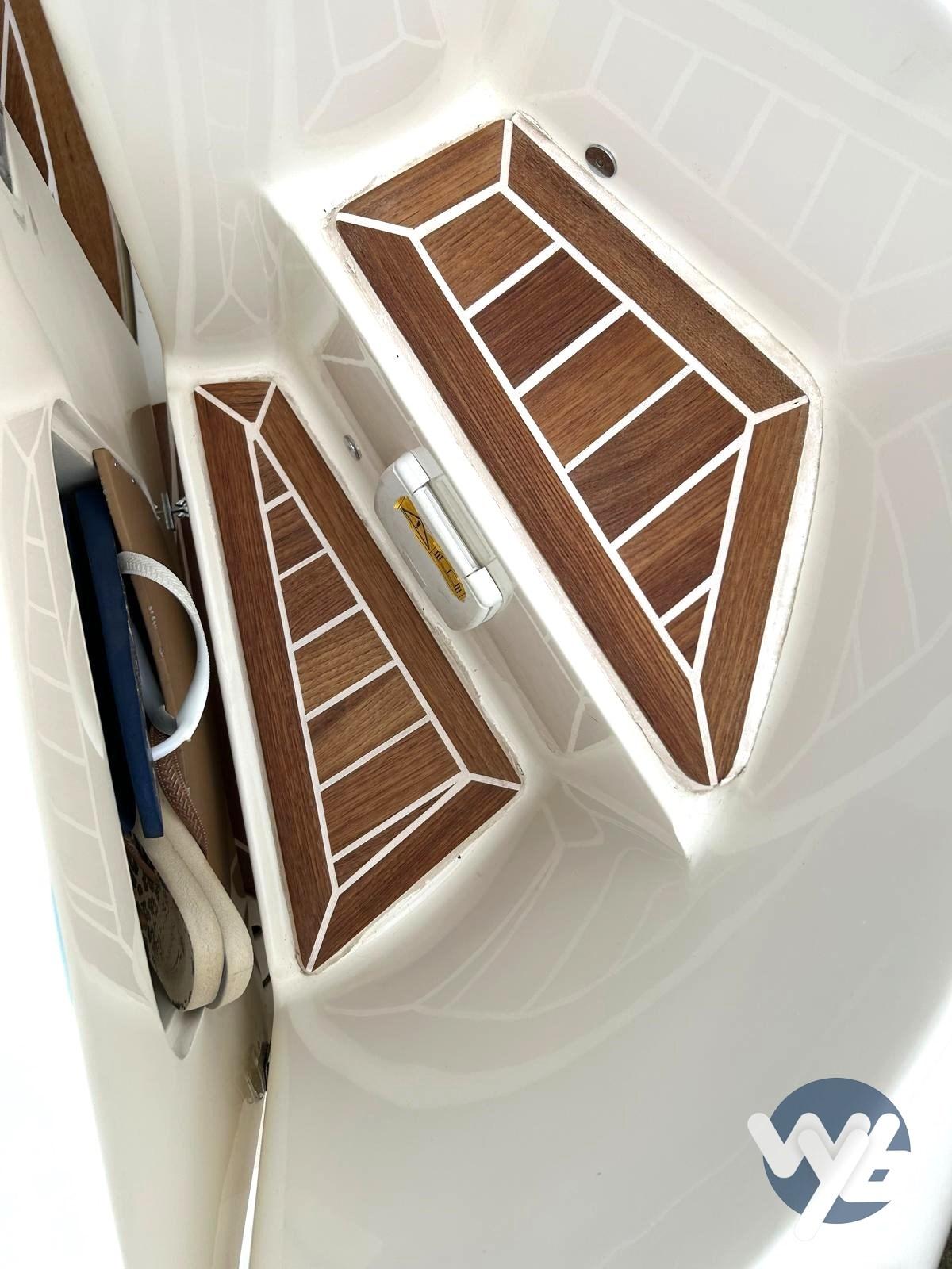 Engine Alarm, Bilge Alarm, Electric Engine Compartment Opening, Water pressure pump, Deck Shower, Electric Flaps, Gangway, Manual Bilge Pump, Entry door, Shorepower connector, Rollbar, Electric Windlass, swimming ladder, cockpit table.