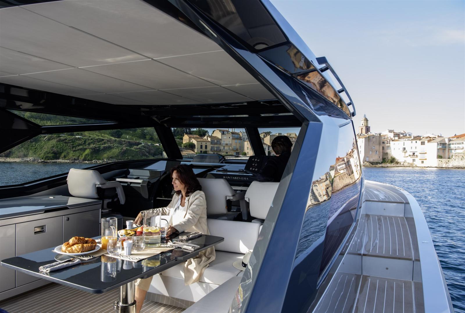 Crafted, envisioned andbrought to life by ing FrancescoGuida, the Santasevera 52 epitomizes a modern twist on our timeless exterior , featuring and enduring style enhancedby a dynamic sport flair. The Santasevera 52 effortlessy merges contemporary aesthetics with a spacious customizable interior. With advanced features and enhanced performance, it ensures a smoother and more comfortable voyage. Santasevera goes above and beyond to ensure the exterior and interior styling perfectly reflects your individual tase. Call us for any further detail.