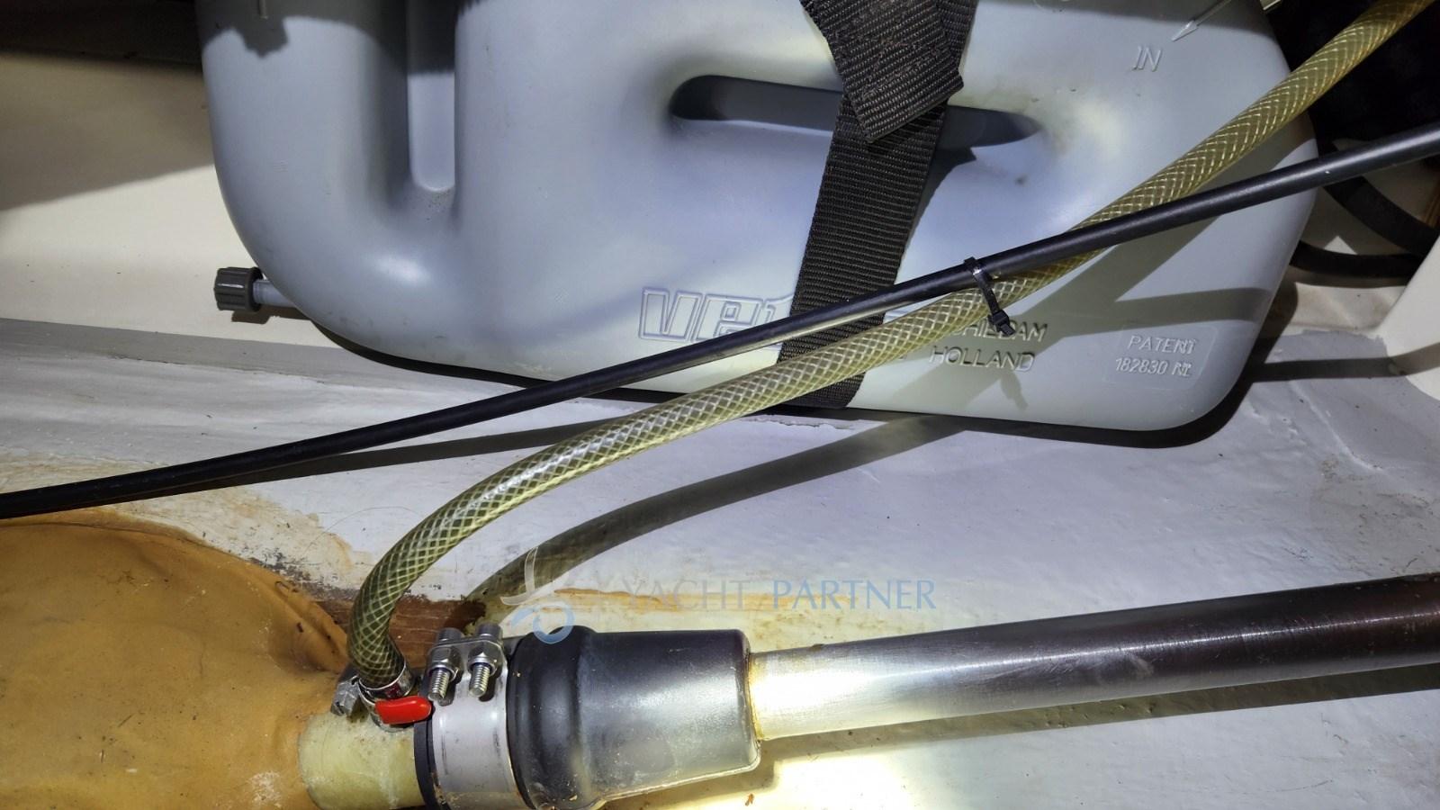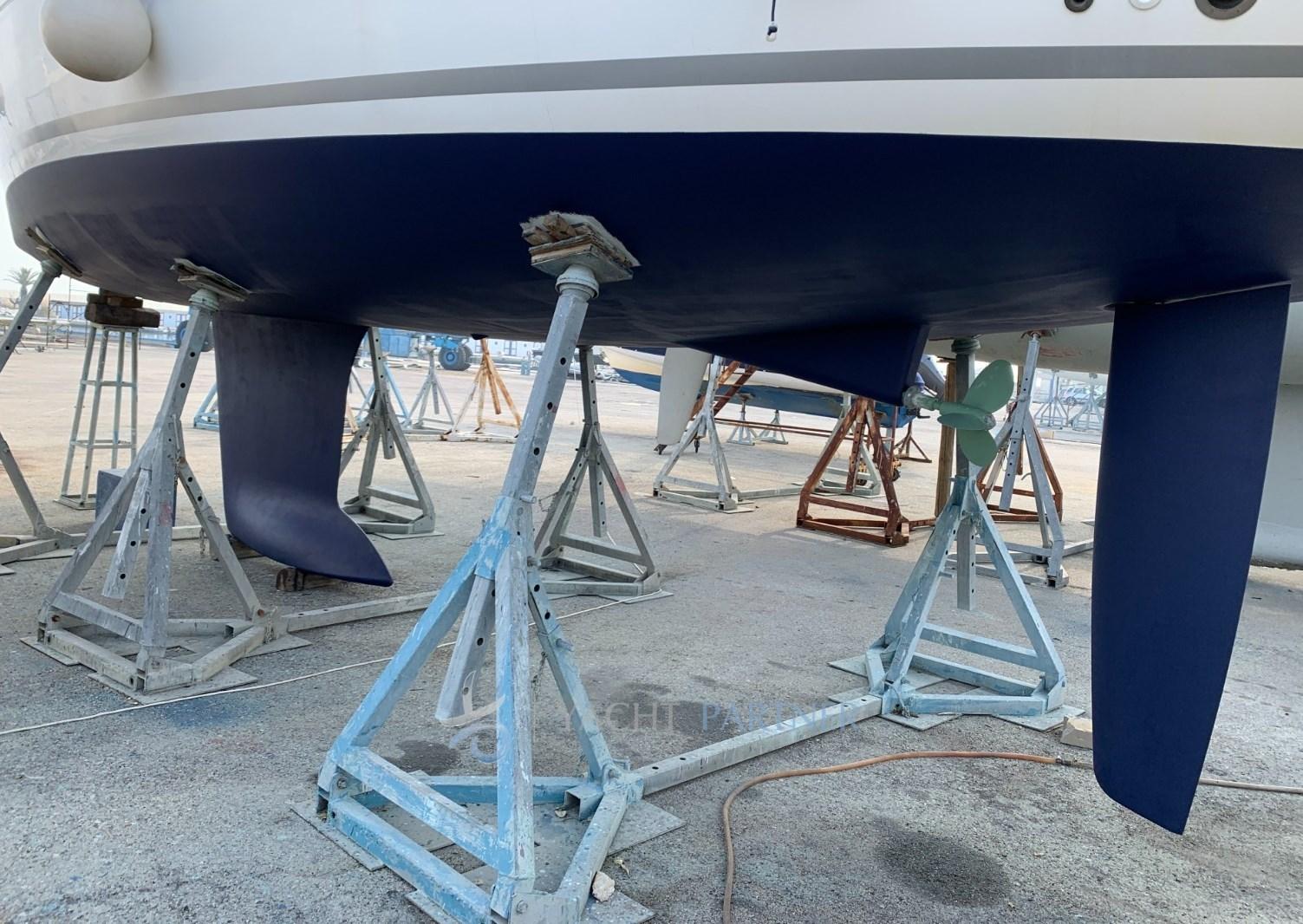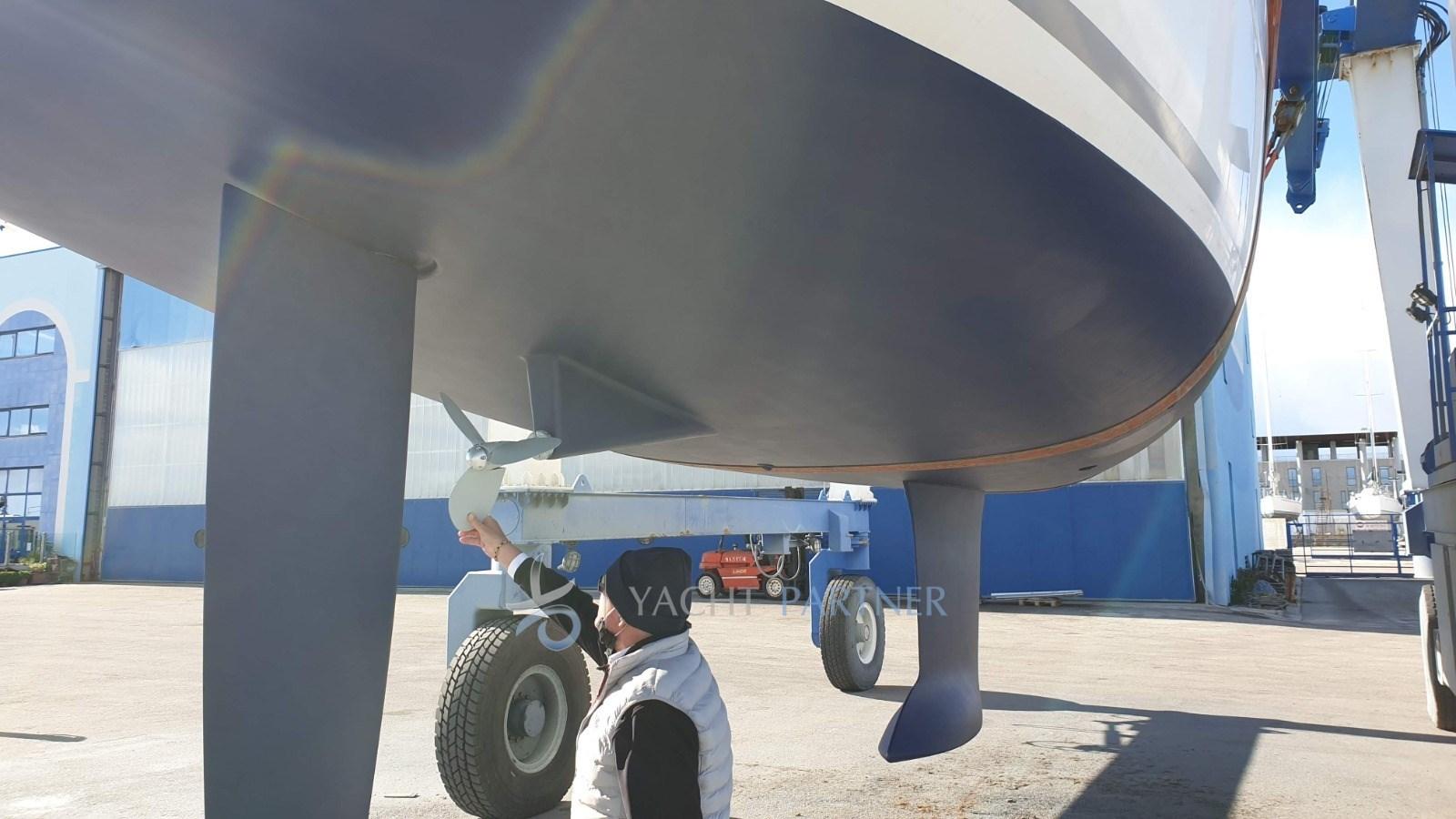 Engine Alarm, Water pressure pump, 3 Batteries (servizi 400A - 2020, motore 100A 2022), Deck Shower, Twin Steering, Platform, Manual Bilge Pump, Teak Cockpit (Teak sintetico, sostituito nel 2020), Shorepower connector, Voltage Rectifier, Electric Windlass, Strand rigging, swimming ladder, Outboard Engine Support Bracket, cockpit table, 4 Winch, Windex.