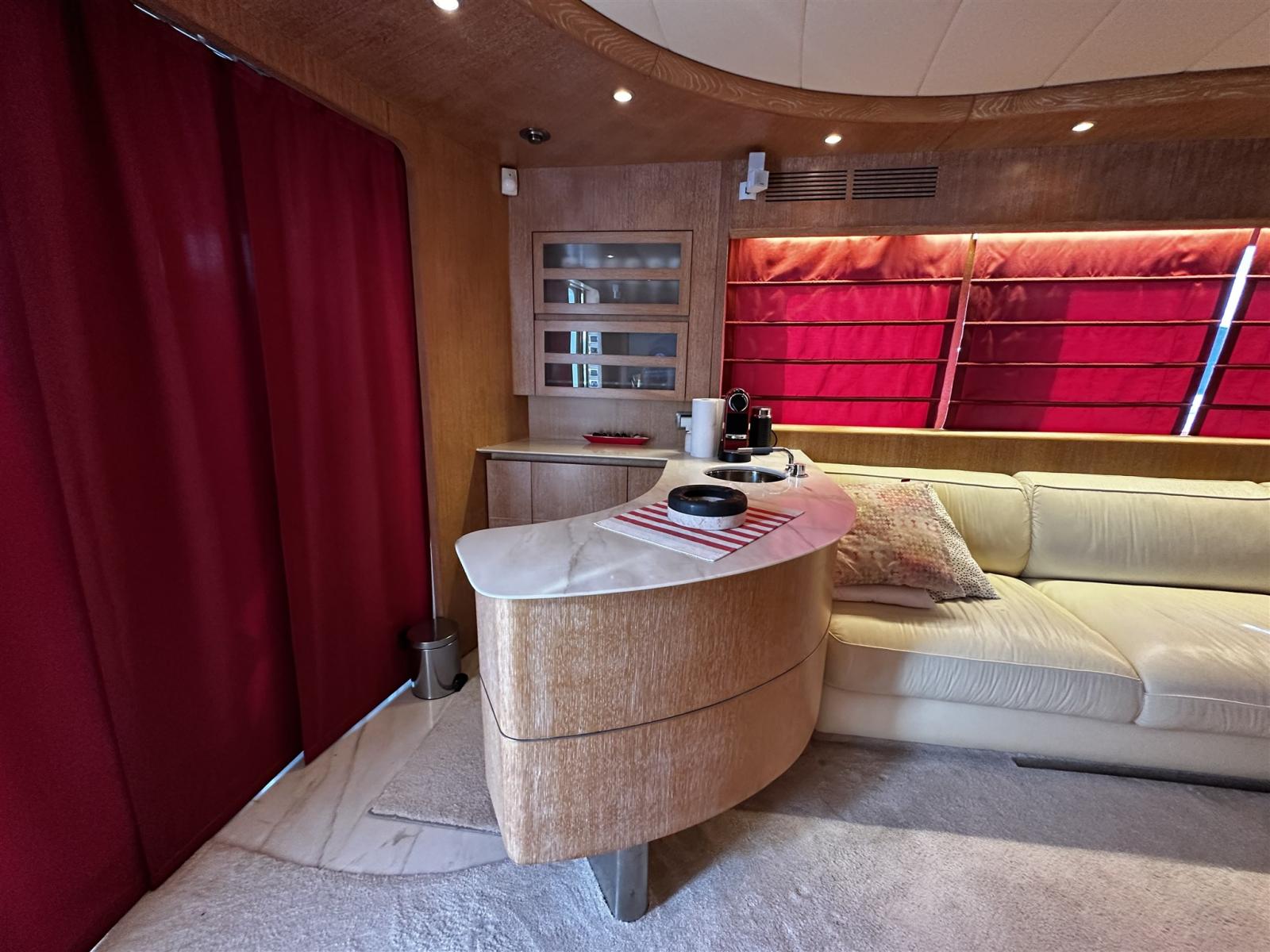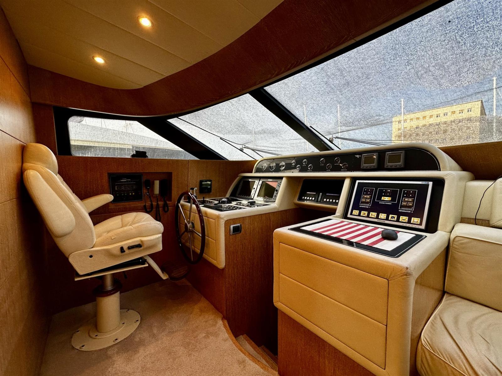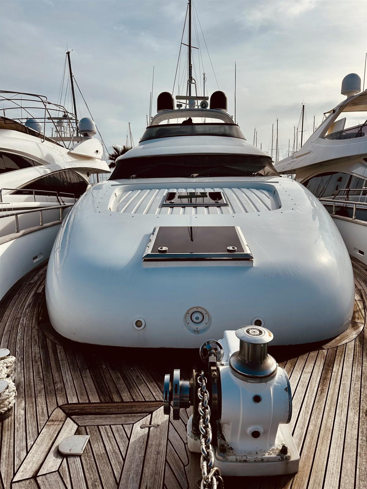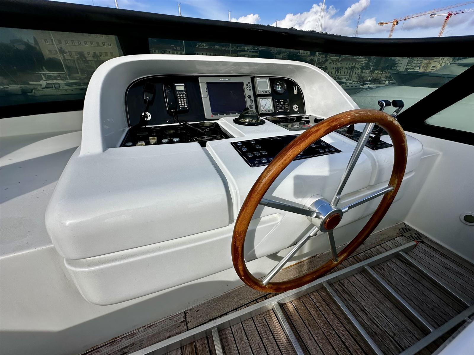 Bilge Alarm, Water pressure pump, 2 Folding cleats, Teak Side Decks, Deck Shower, Hydraulic Flaps, Davits for tender on fly, Fire Extinguishing System, Compressor Air System, Flaps Indicators, Gangway, Platform, Automatic Bilge Pump, Entry door, Side door, Teak Cockpit, Voltage Rectifier, Rollbar, Electric Windlass, swimming ladder, cockpit table, Horn, Stern Winches, Bow Winches.