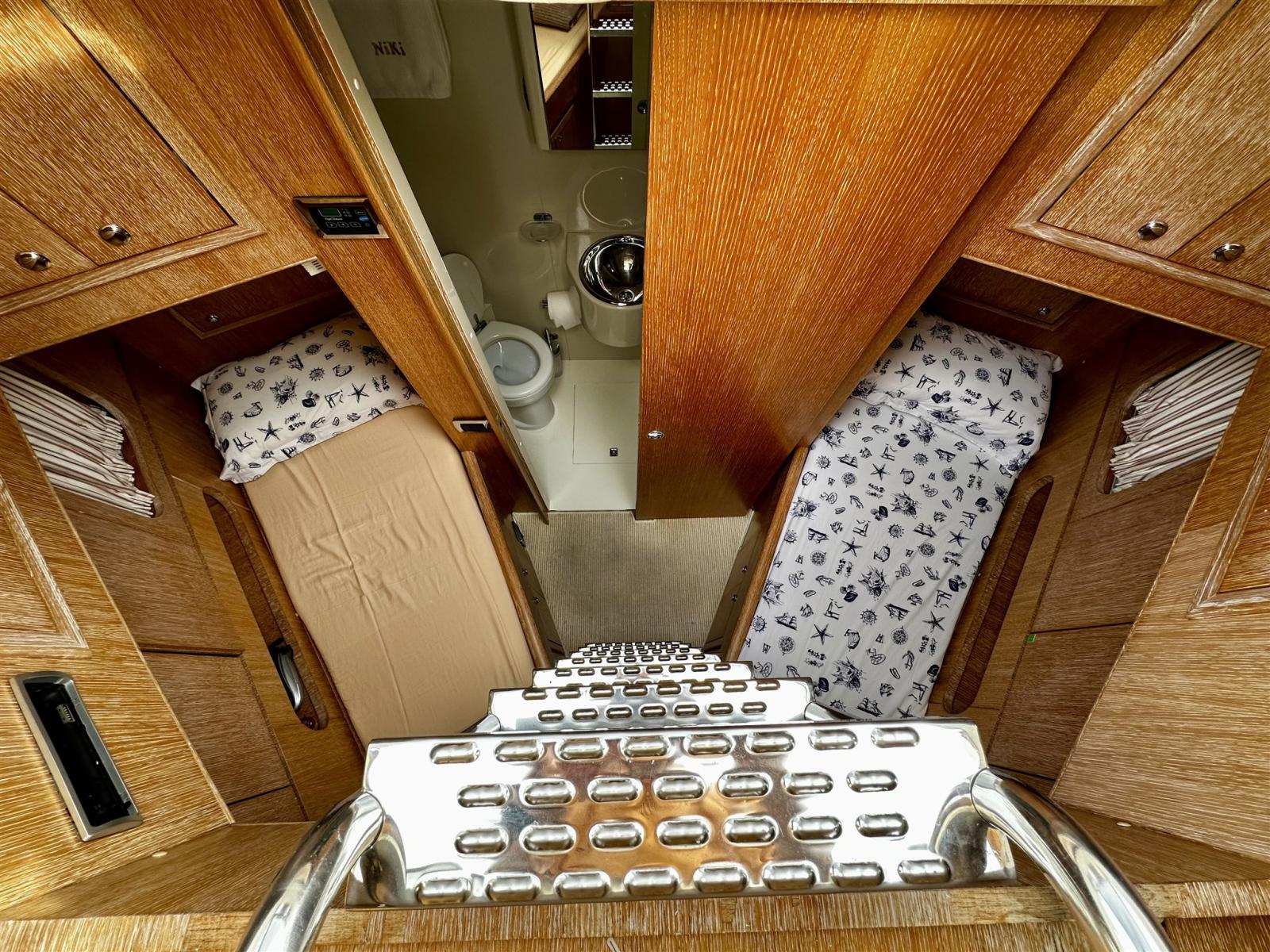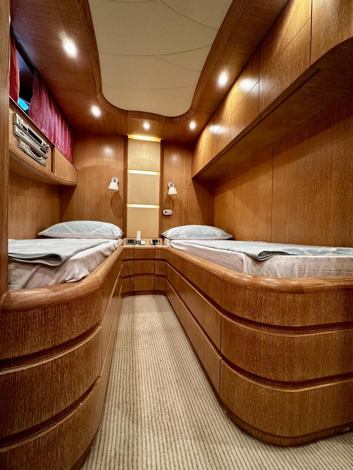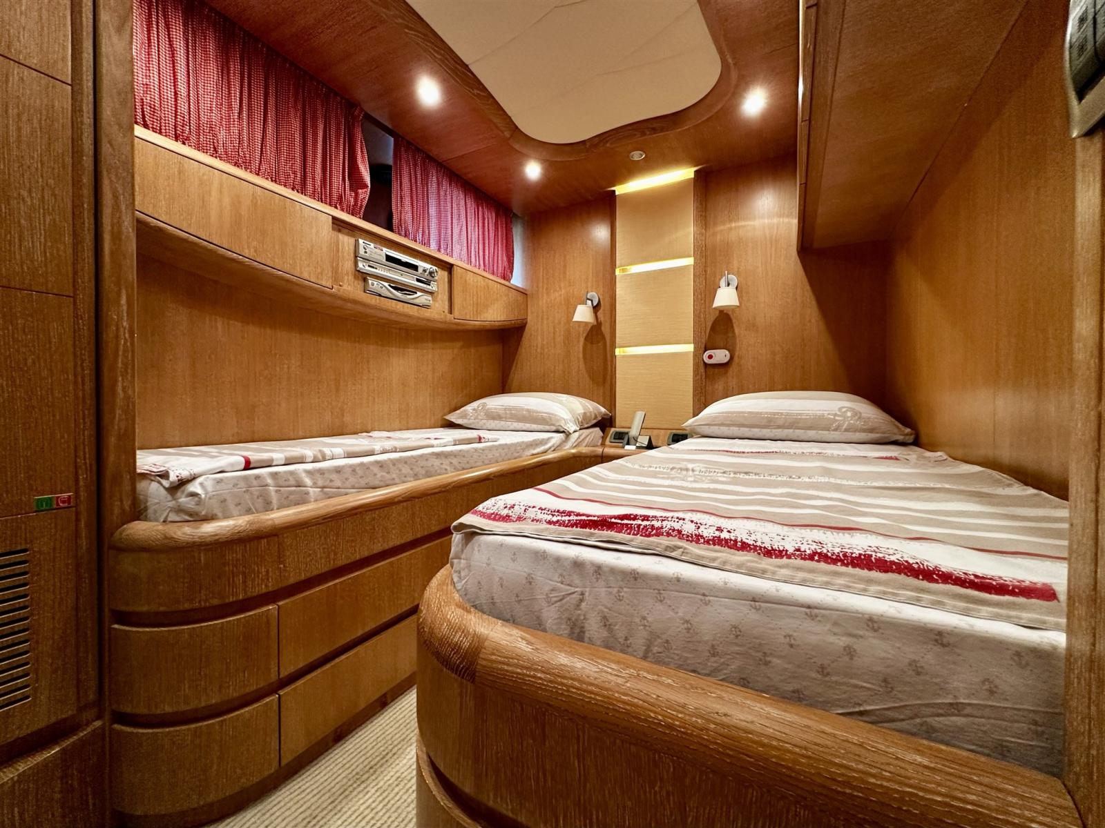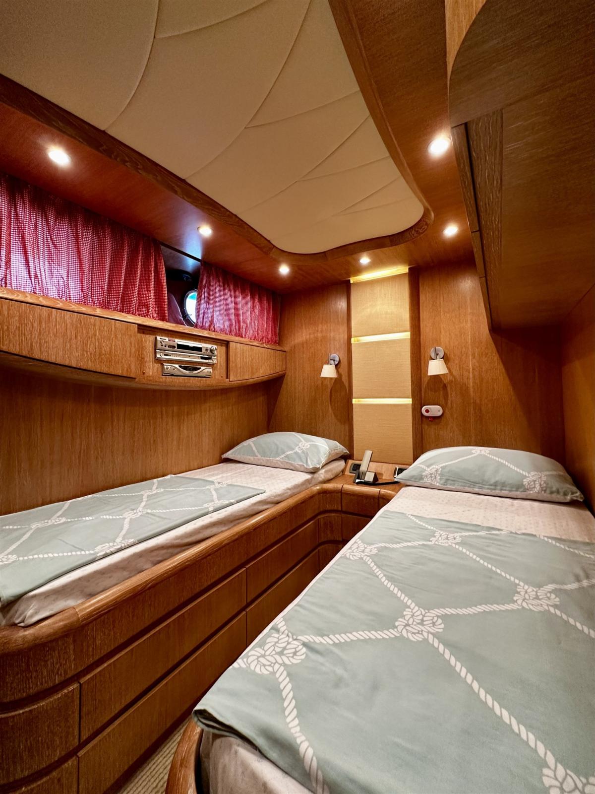 Bilge Alarm, Water pressure pump, 2 Folding cleats, Teak Side Decks, Deck Shower, Hydraulic Flaps, Davits for tender on fly, Fire Extinguishing System, Compressor Air System, Flaps Indicators, Gangway, Platform, Automatic Bilge Pump, Entry door, Side door, Teak Cockpit, Voltage Rectifier, Rollbar, Electric Windlass, swimming ladder, cockpit table, Horn, Stern Winches, Bow Winches.