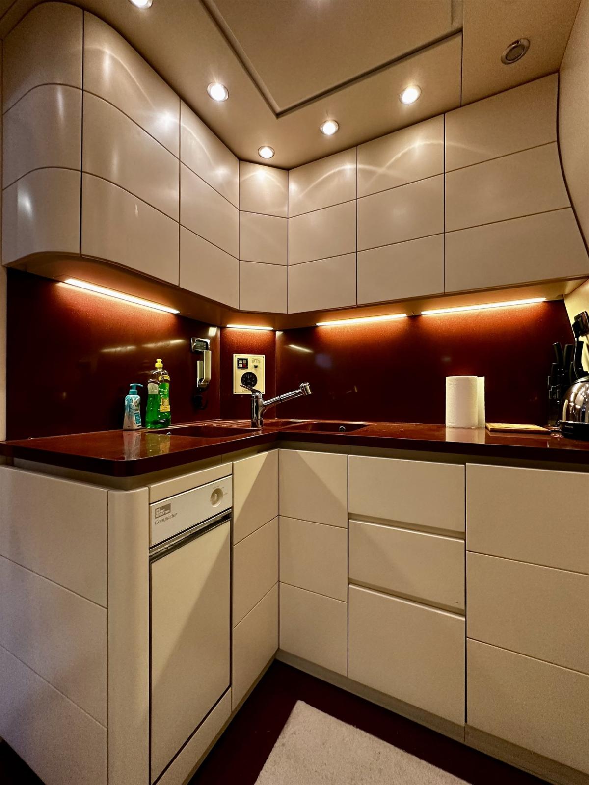 Warm Water System, Watermaker (Idromar 120 l/h), 12V Outlets, 220V Outlets, Black Water Tank, Internal Phone, 5 Electric Toilet.