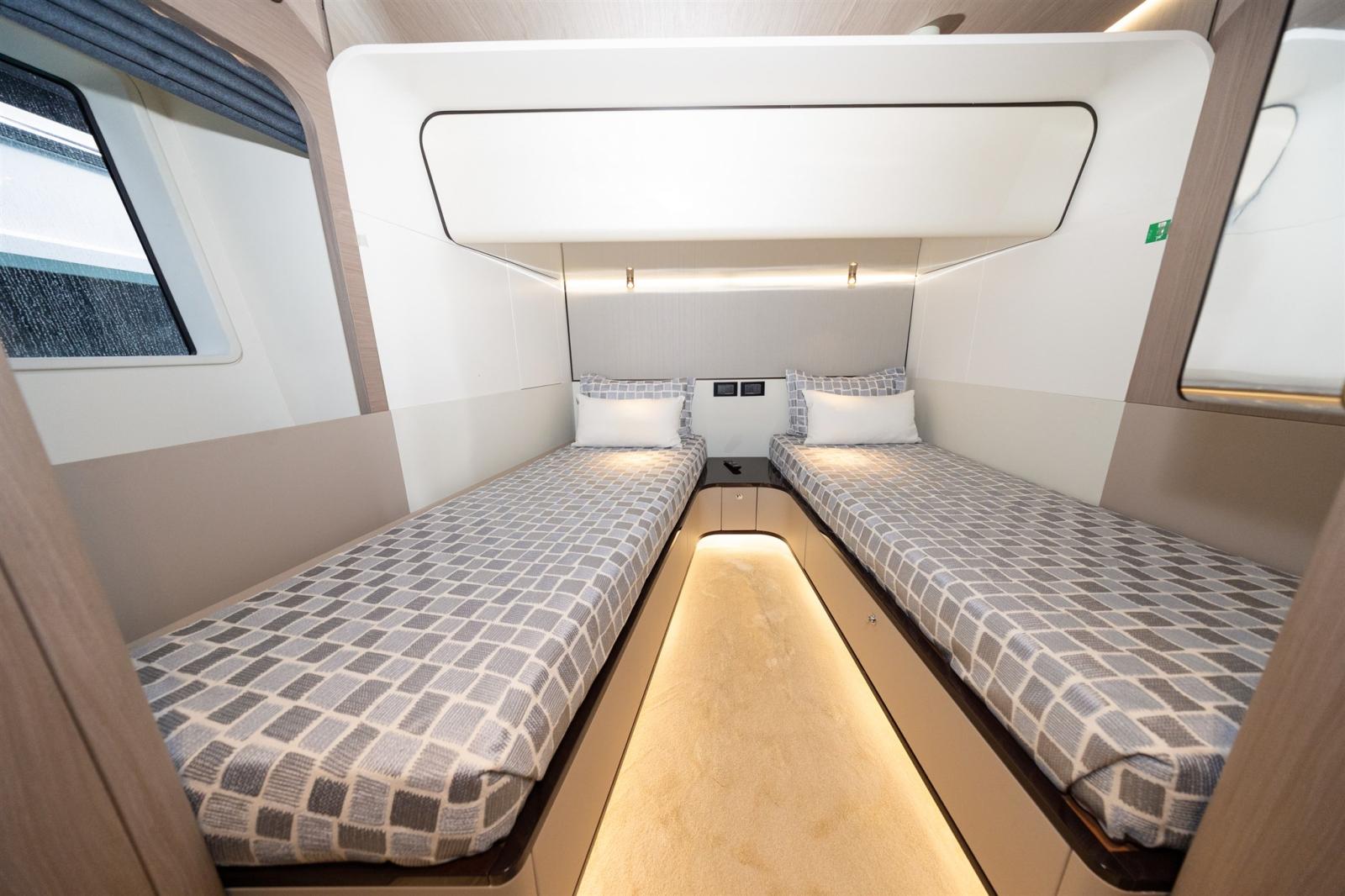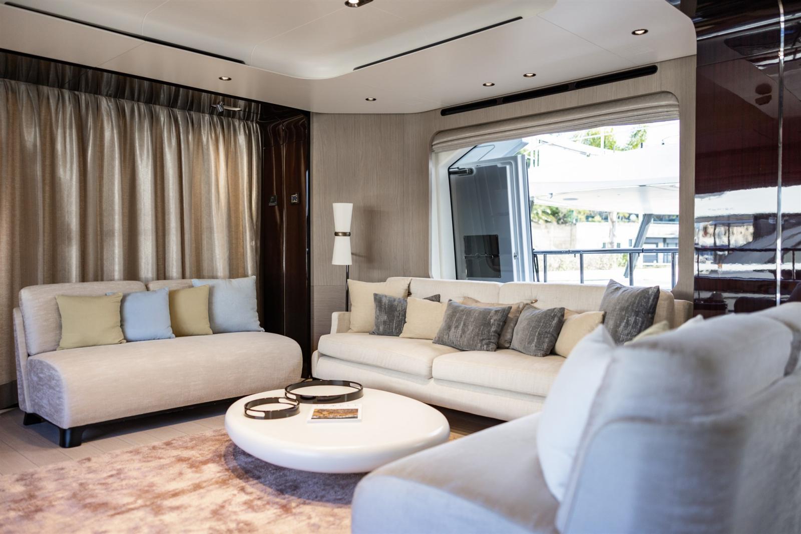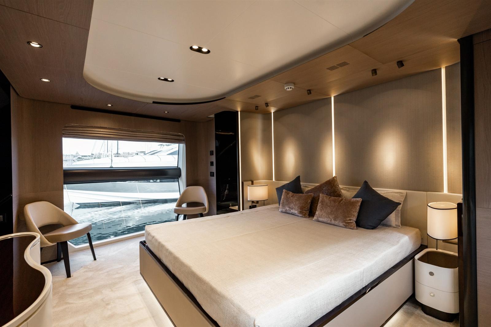 Designed by Stefano Righini, the Grande 27M boasts a carbon fiber superstructure, ensuring a lightweight yet ultra-stable ride. The spacious flybridge, beach club, and foredeck lounge provide the perfect settings for relaxation and entertainment, while the generous full-beam master suite on the main deck offers a private retreat with opulent finishes.