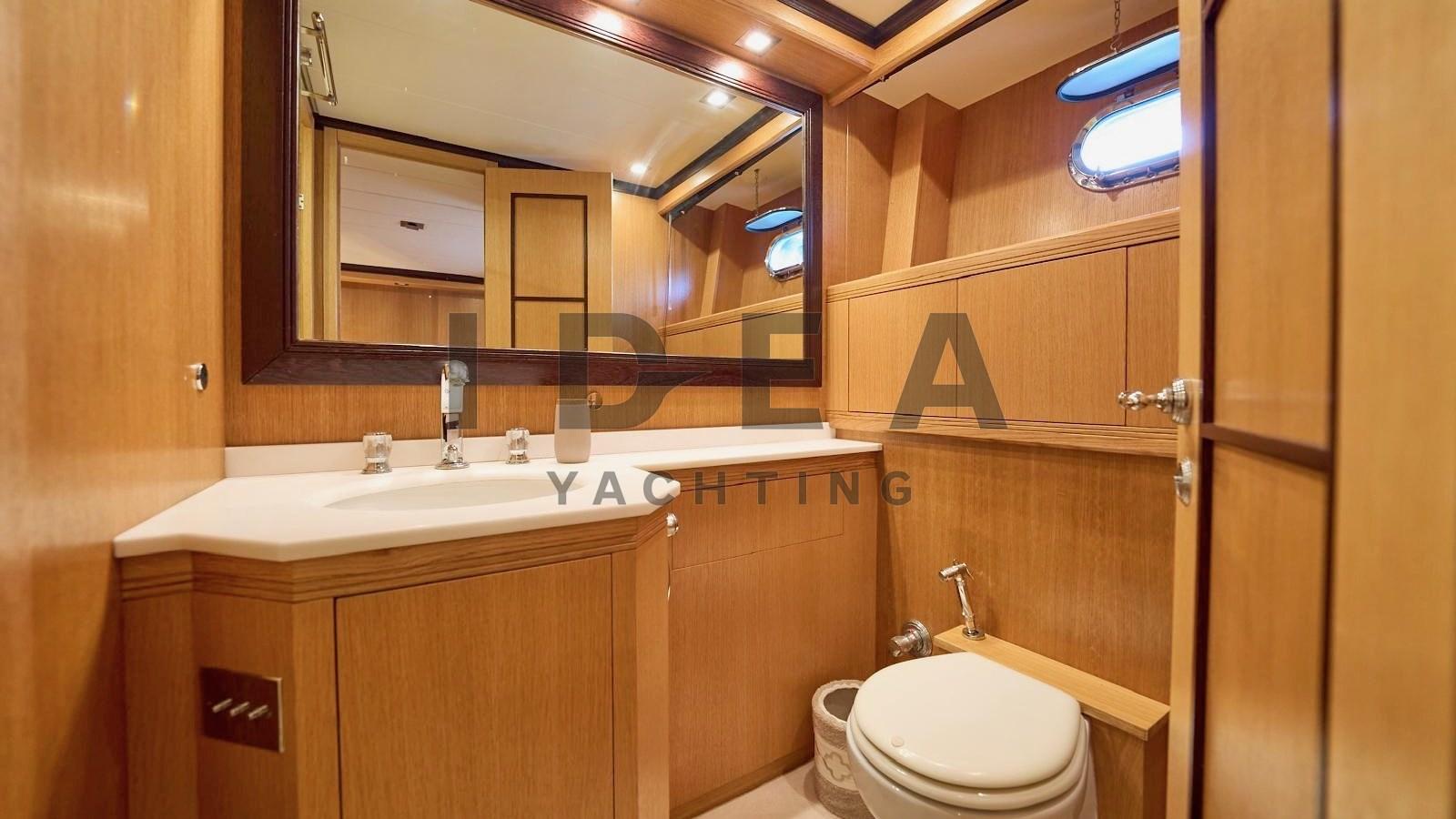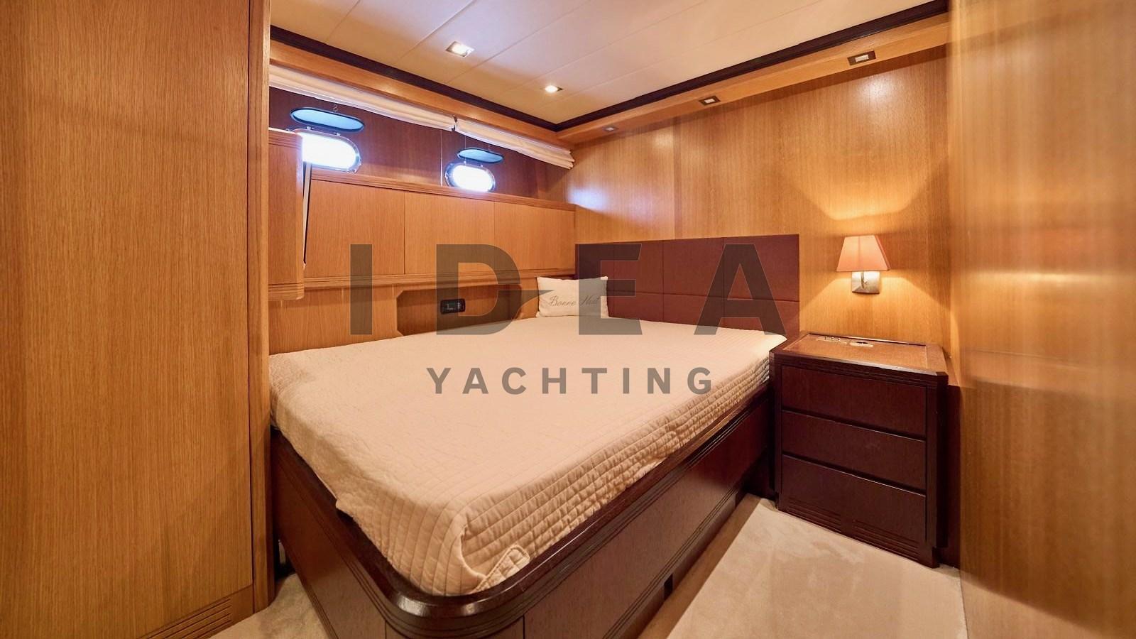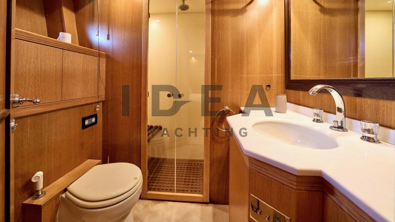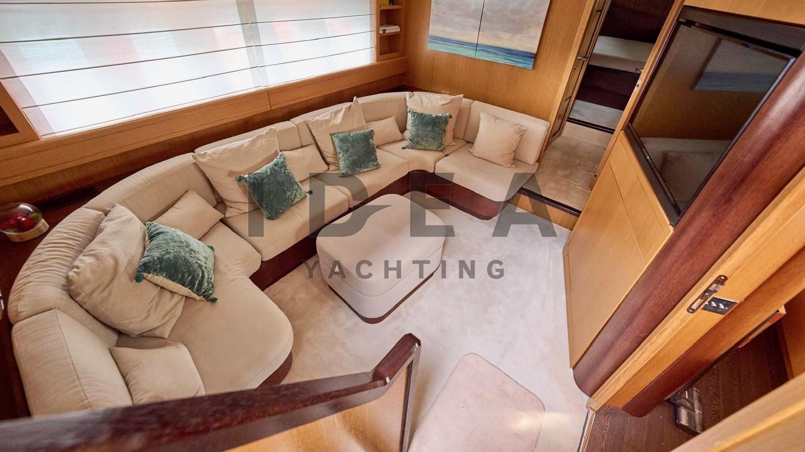 Fume/Gas Detector, 2 Engine Alarm, Bilge Alarm, Water pressure pump, 2 Battery charger, Deck Shower, Stern Thruster (Side Power), Bow Thruster (Side Power), Directional Spotlight, Tender Garage, Fire Extinguishing System, Washbasin in the cockpit, Courtesy Lights, Underwater lights, Gangway (Hydraulic telescopic Besenzoni), Platform, Automatic Bilge Pump, Manual Bilge Pump, Teak Cockpit, Shorepower connector, Water harbor connector system, Voltage Rectifier, Rollbar, Electric Windlass (Lofrans), swimming ladder, cockpit table (Telescopic), Horn, 2 Stern Winches (Lofrans), Bow Winches (Lofrans).