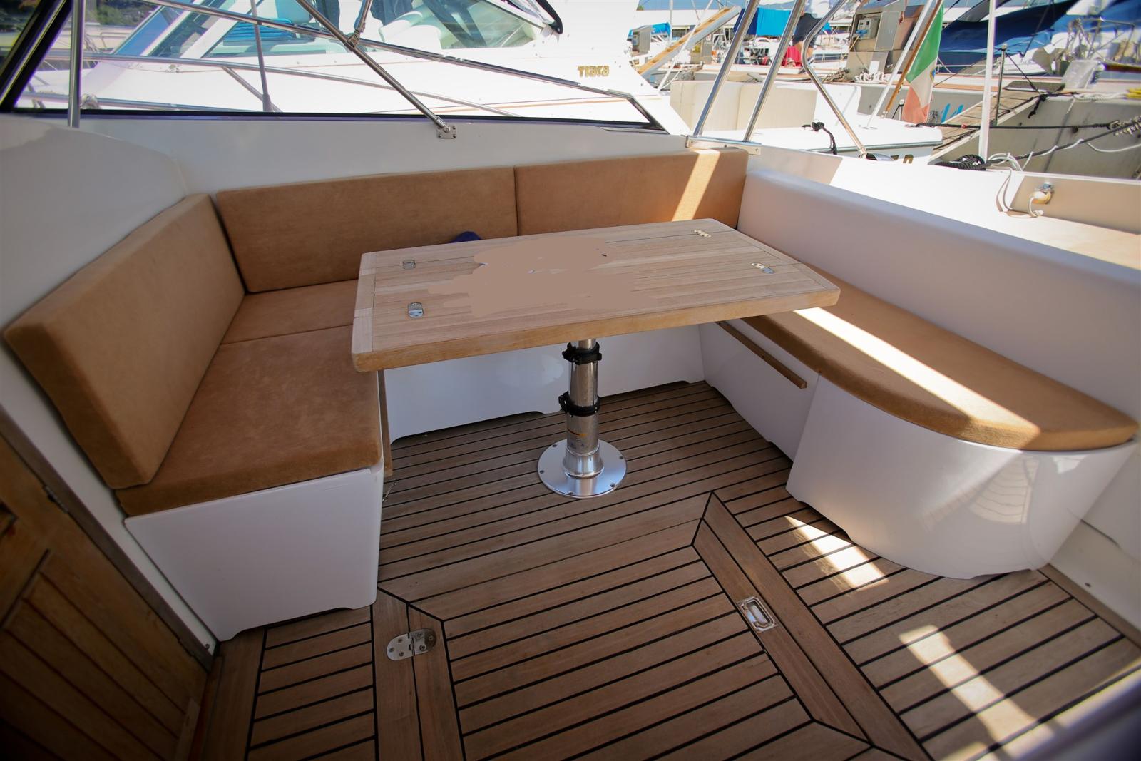 Gangway (Idraulica), Platform, Entry door, Teak Cockpit, Shorepower connector, Water harbor connector system, cockpit table.
