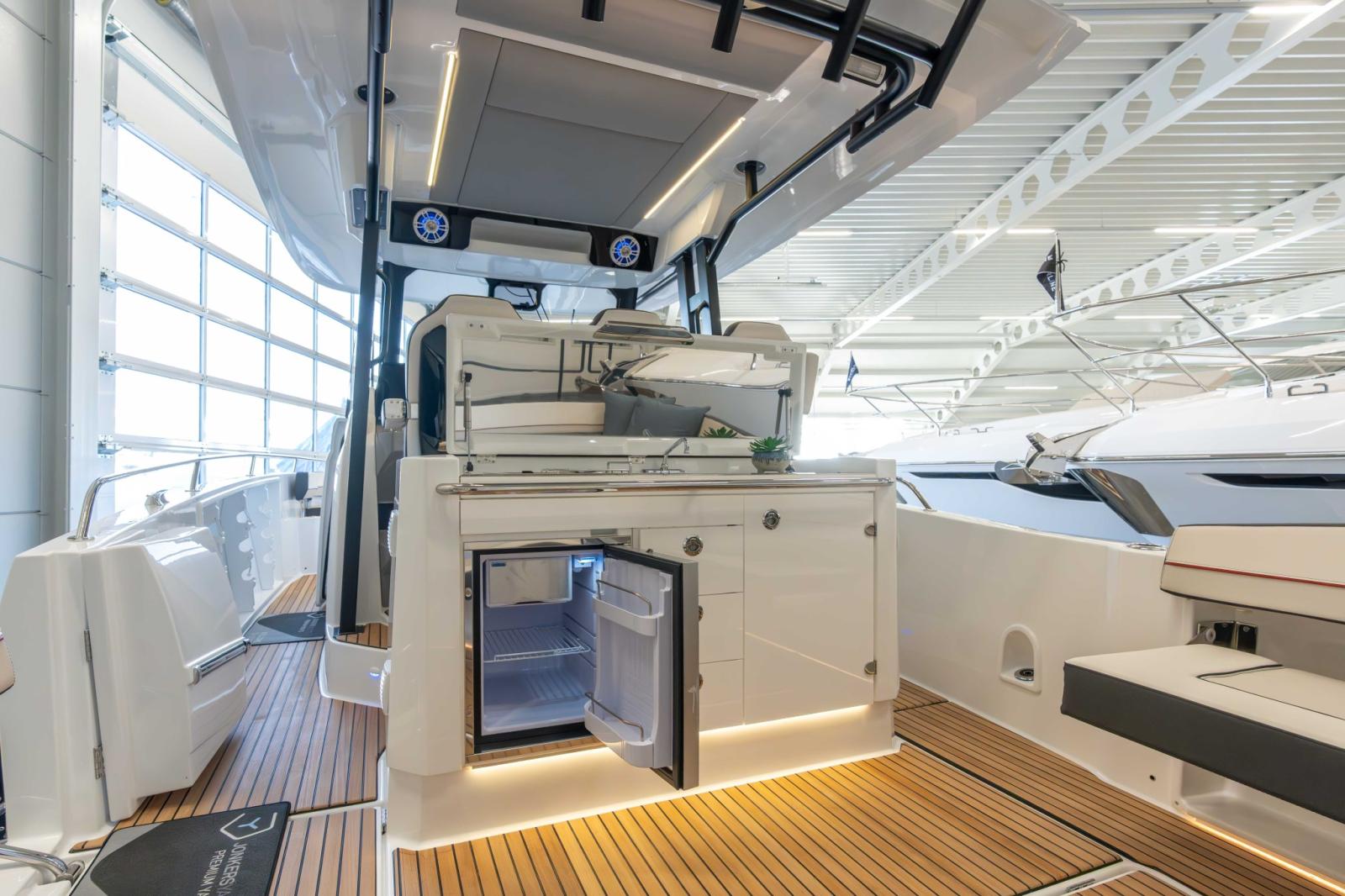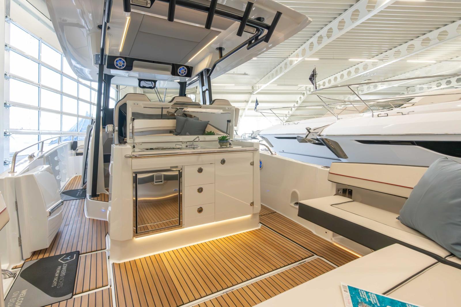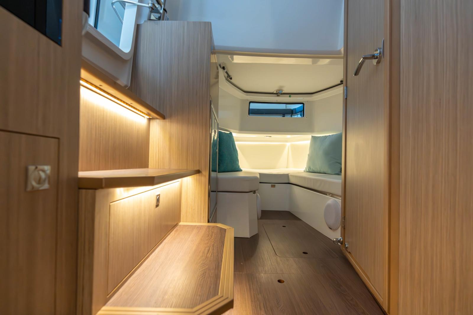 With two generous cockpits, and an immense side door with an integrated swim ladder for
