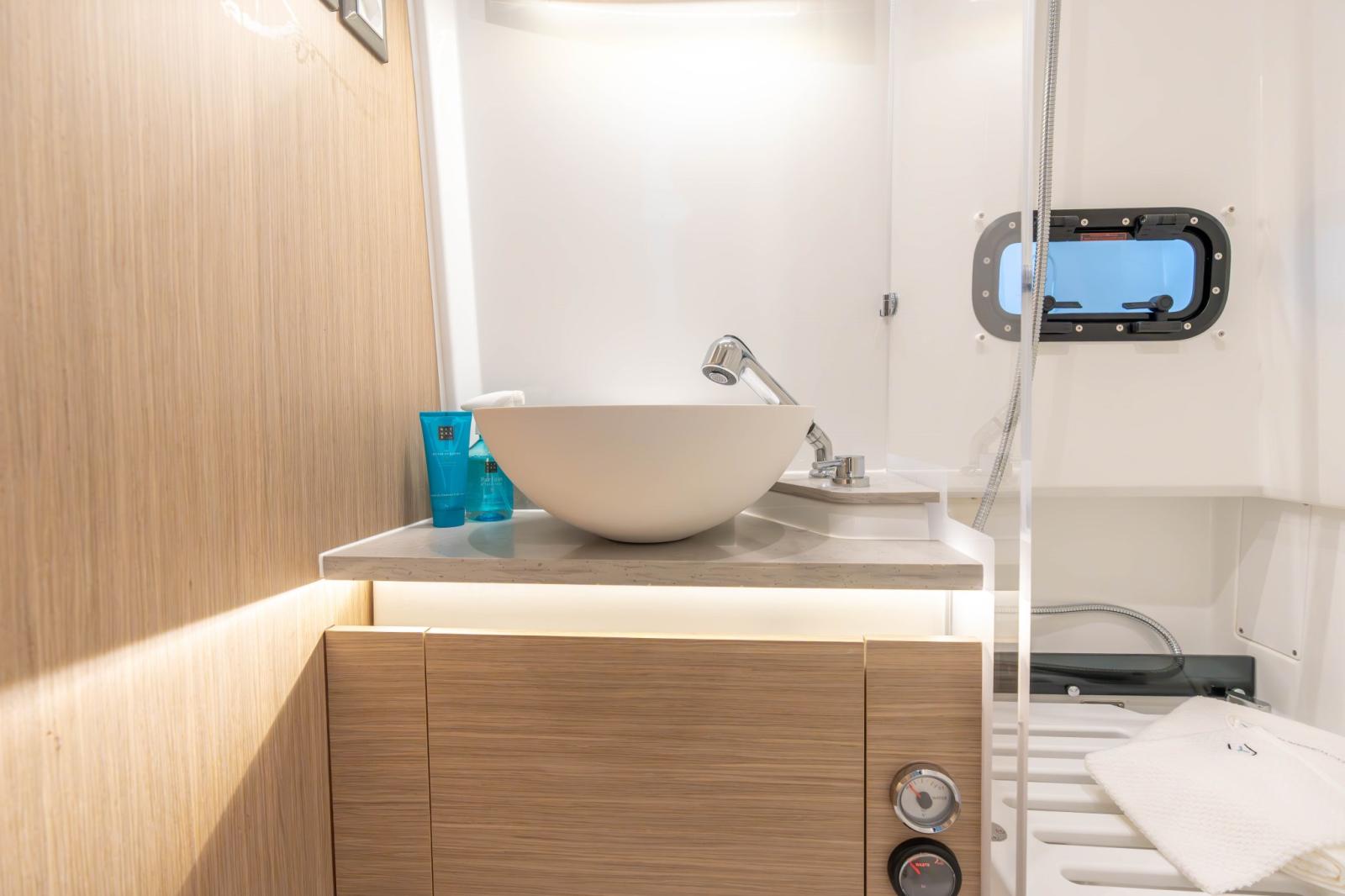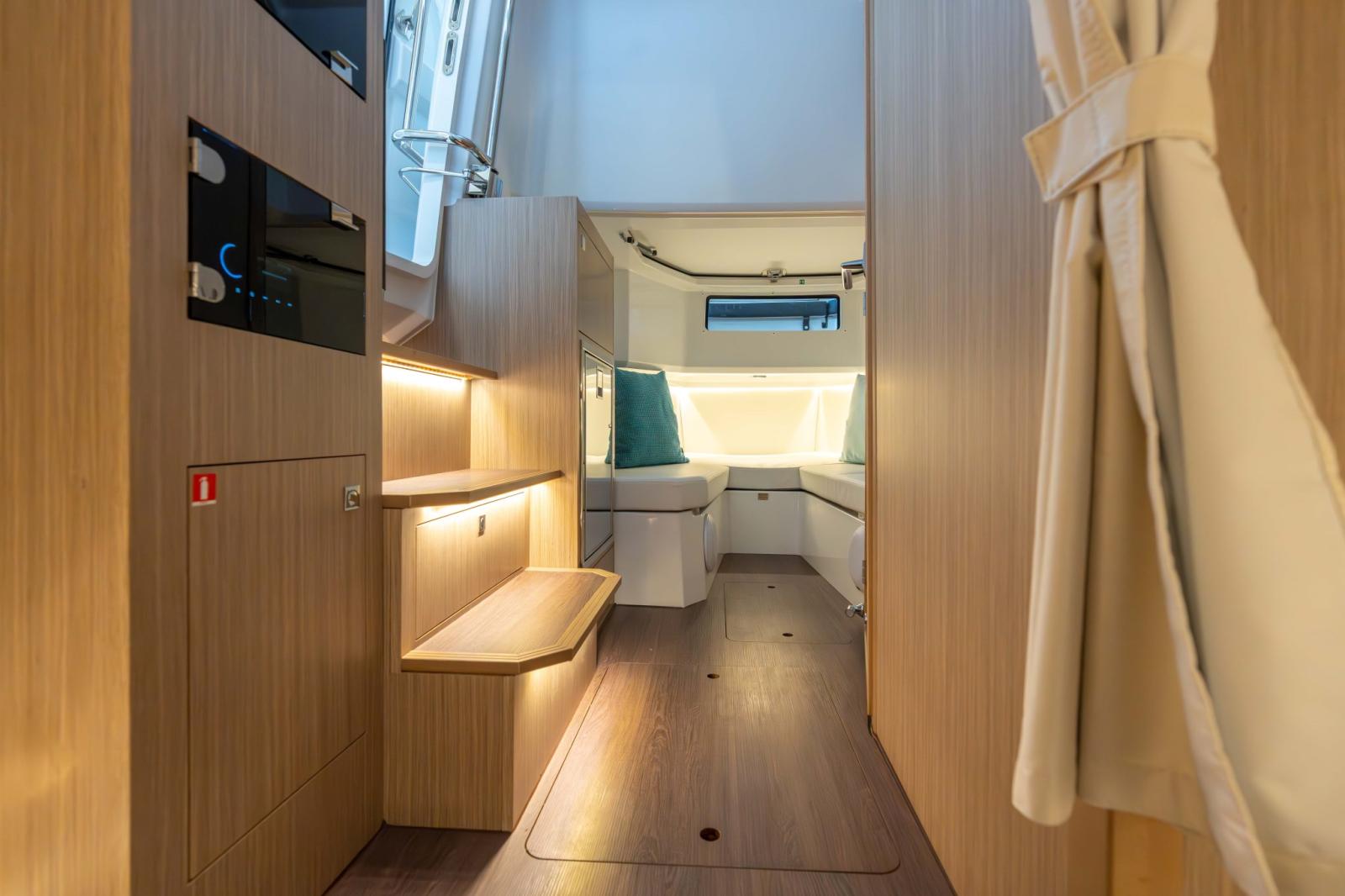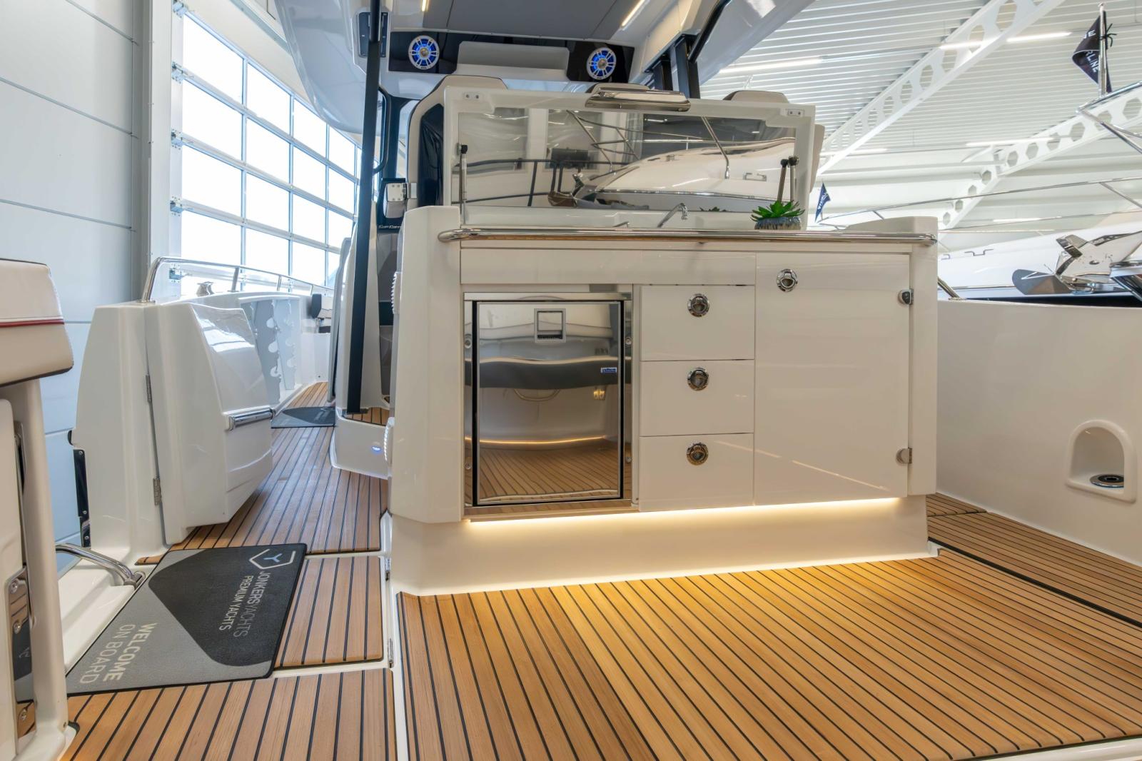 With two generous cockpits, and an immense side door with an integrated swim ladder for