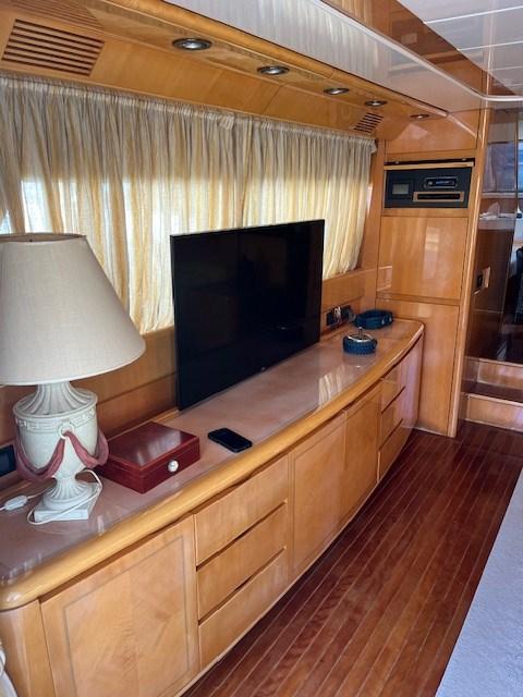 Engine Alarm, Water pressure pump, 22 Batteries (6 MOTORI 2024 E 16 BATTERIE NUOVE), 4 Battery charger (MOTORI, SERVIZI, ELICA DI POPPA), Deck Shower, Twin Steering, Hydraulic Flaps (Centralina revisionata 2023 , gli stessi sono stati smontati e revisionati i cilindri, puliti e sabbiati, sostituito guarnizioni e fasce, lappatura camicia interna, sostituzione passascafi e tubazioni. Prova cilindri su banco prova), Tender Crane (GRU PER TENDER NEL FLY), Fire Extinguishing System, Gangway (IDRAULICA), Platform, Automatic Bilge Pump, Entry door, 2 Side door, Teak Cockpit, Shorepower connector, Voltage Rectifier, Rollbar (FLY), Electric Windlass, swimming ladder, Saddles for tender, cockpit table, Tender (AVON CON 40HP YAMAHA), 2 Stern Winches, Bow Winches.