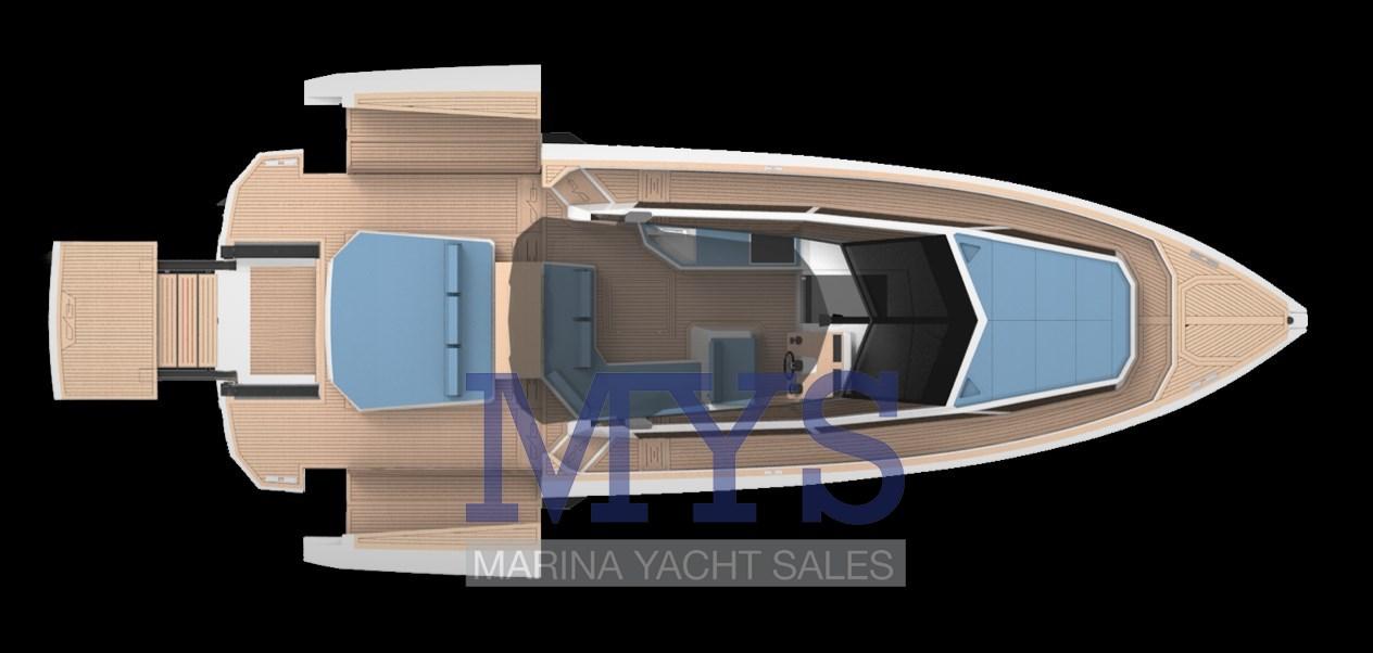 Engine Alarm, Electric Engine Compartment Opening, Water pressure pump, Teak Side Decks, Deck Shower, Electric Flaps, Washbasin in the cockpit, Courtesy Lights, Gangway, Platform, Automatic Bilge Pump, Teak Cockpit, Shorepower connector, Electric Windlass, swimming ladder, cockpit table, Living Room Foldable Table.
