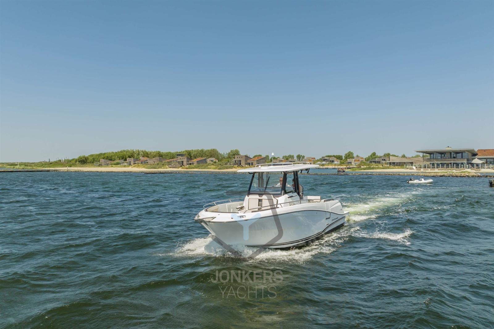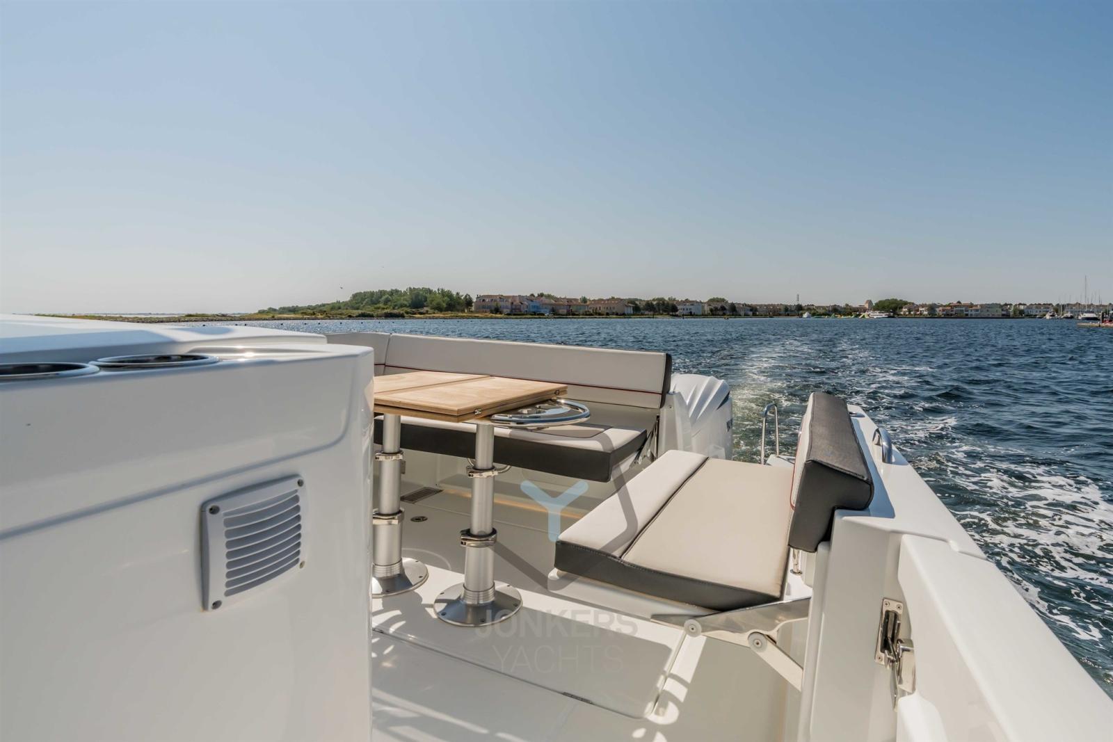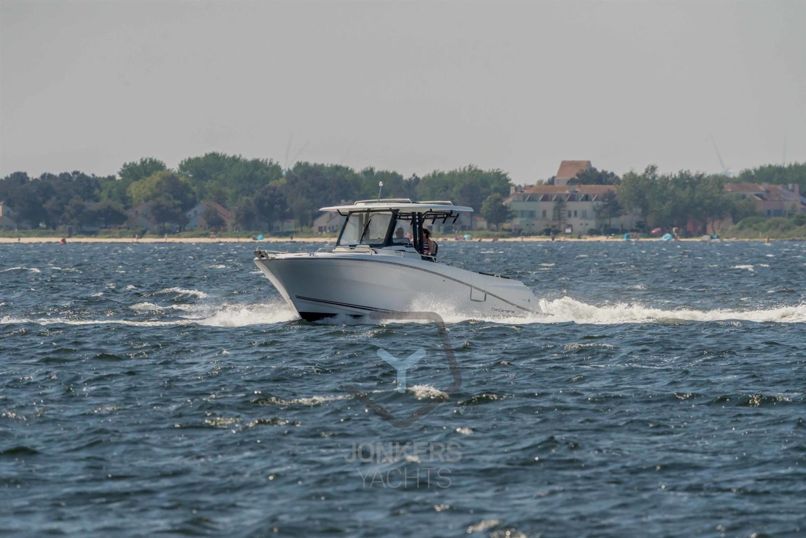 Enjoy the shade of the standard T-top, or lounge on one of the spacious sun decks after a swim, the outdoor spaces are optimally equipped. If you like to throw out a fishing rod, the boat is equipped with everything you need to get ahead, such as rooftop rod rests and a transparent living tray! At the end of a well-spent day, you don't have to say goodbye to your company; you can extend your time on the water. The leaning post serves as a galley equipped with all conveniences: a refrigerator, a sink and room for a gas stove or grill.