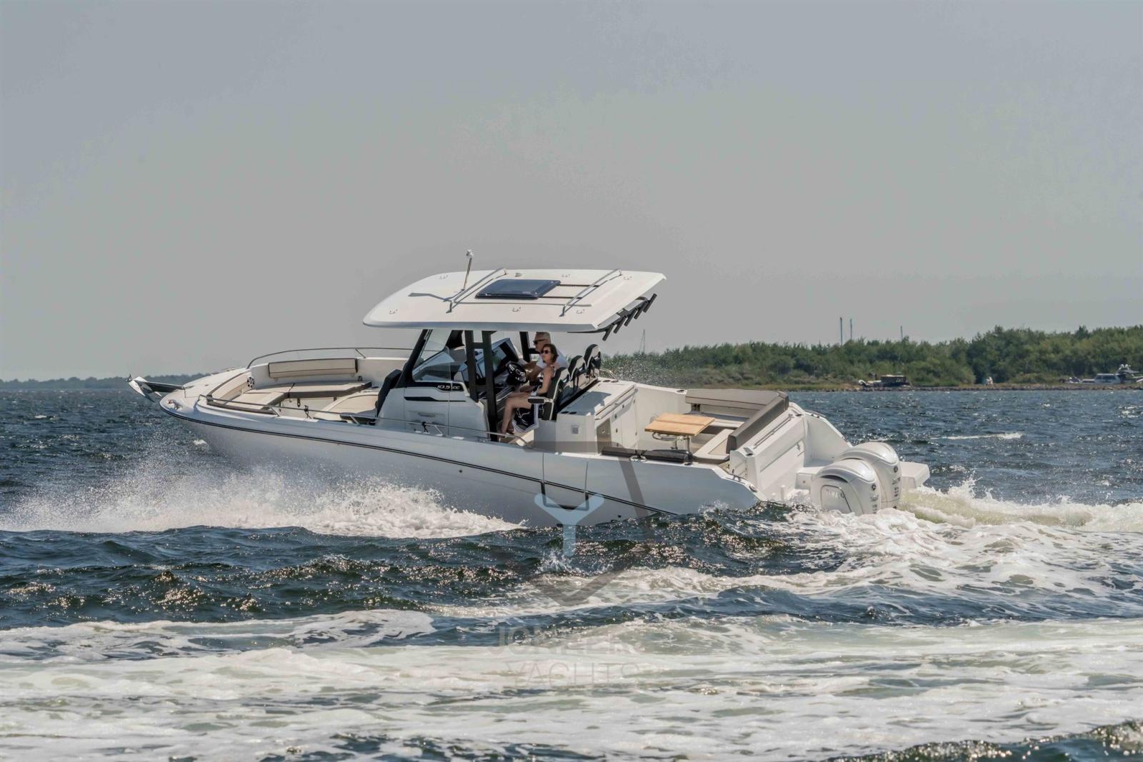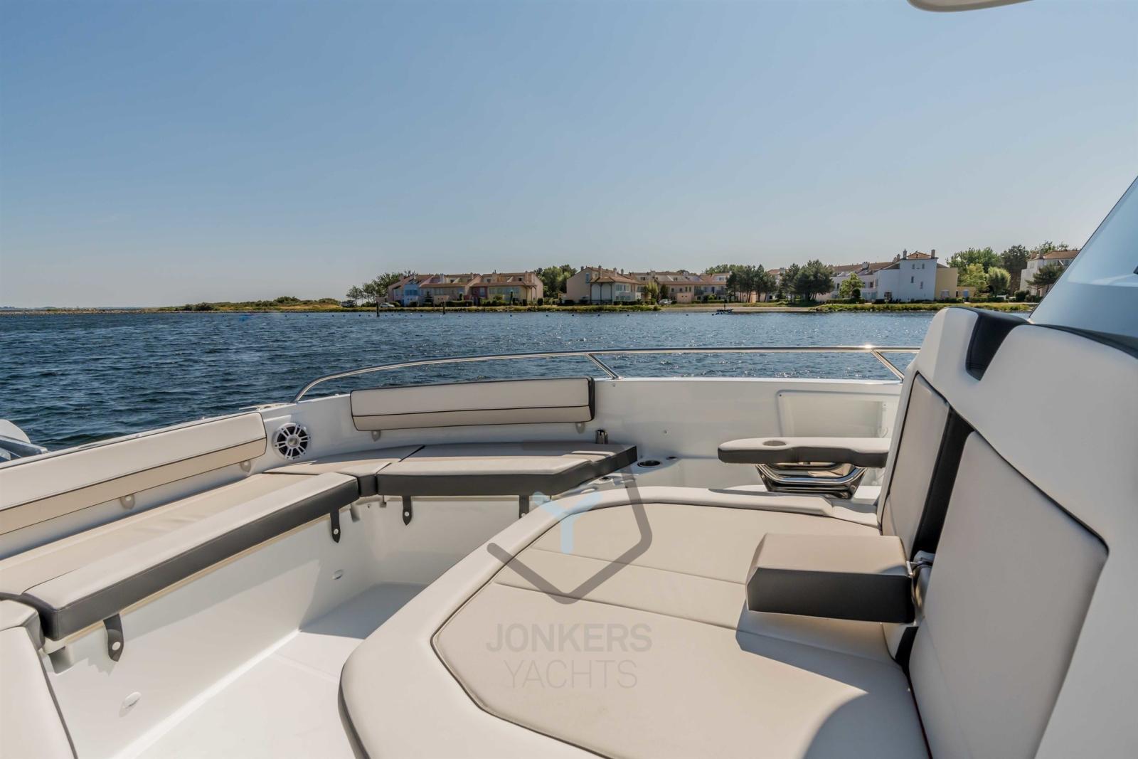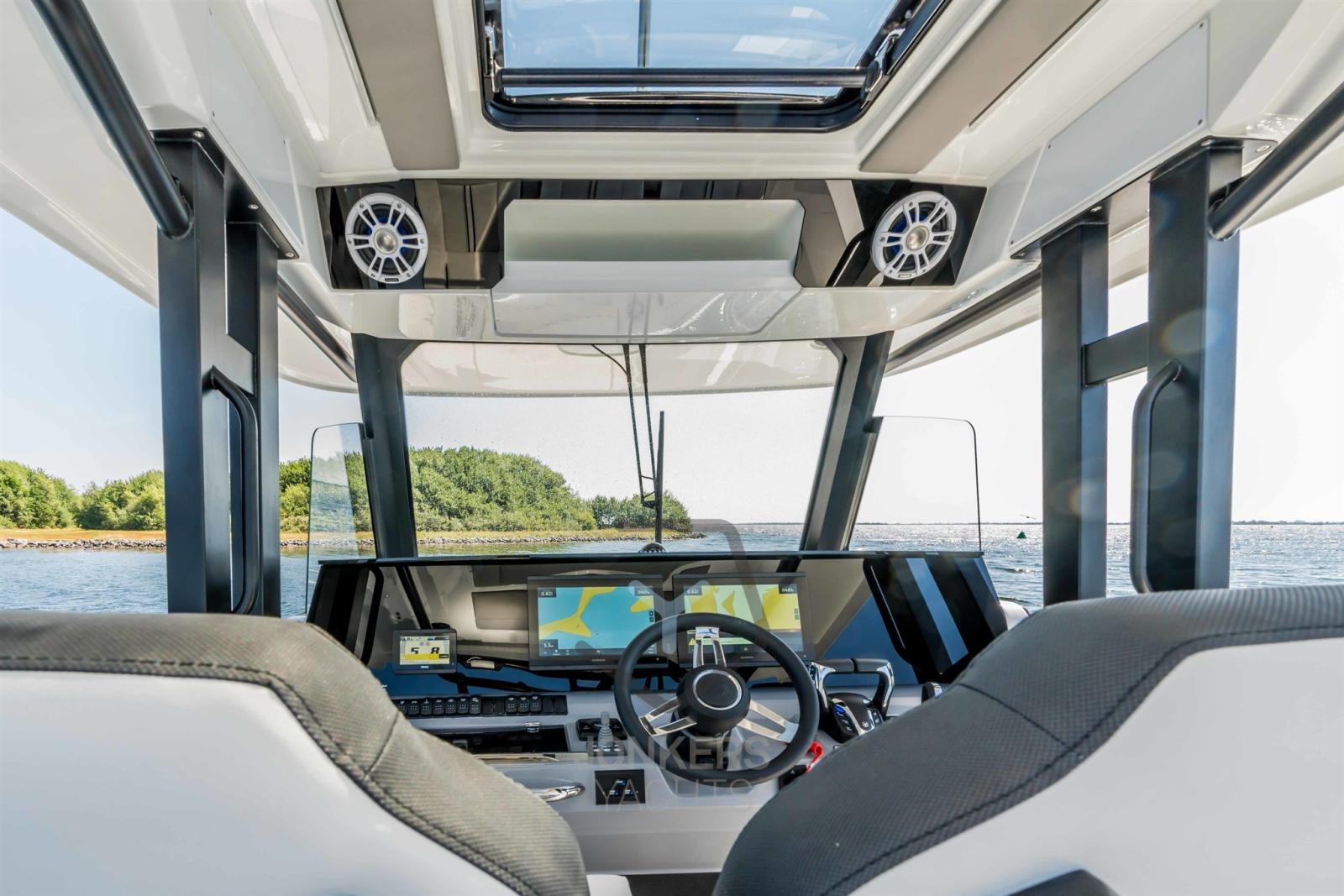 Enjoy the shade of the standard T-top, or lounge on one of the spacious sun decks after a swim, the outdoor spaces are optimally equipped. If you like to throw out a fishing rod, the boat is equipped with everything you need to get ahead, such as rooftop rod rests and a transparent living tray! At the end of a well-spent day, you don't have to say goodbye to your company; you can extend your time on the water. The leaning post serves as a galley equipped with all conveniences: a refrigerator, a sink and room for a gas stove or grill.
