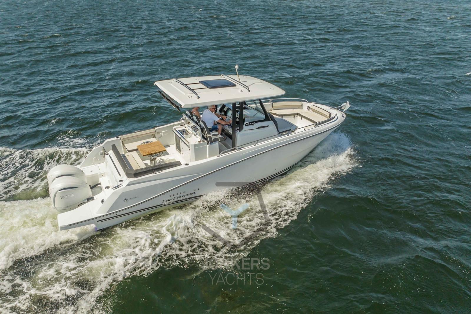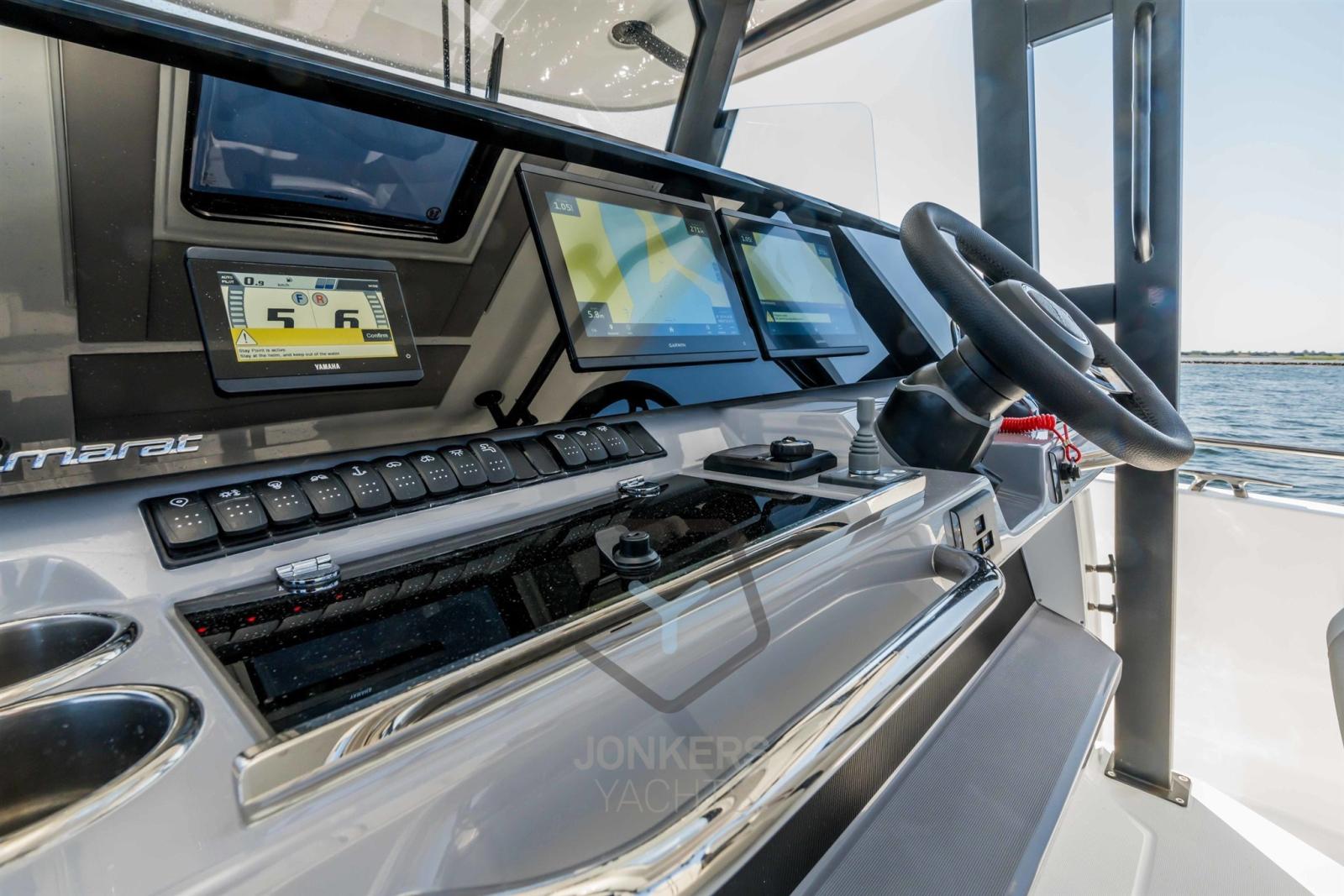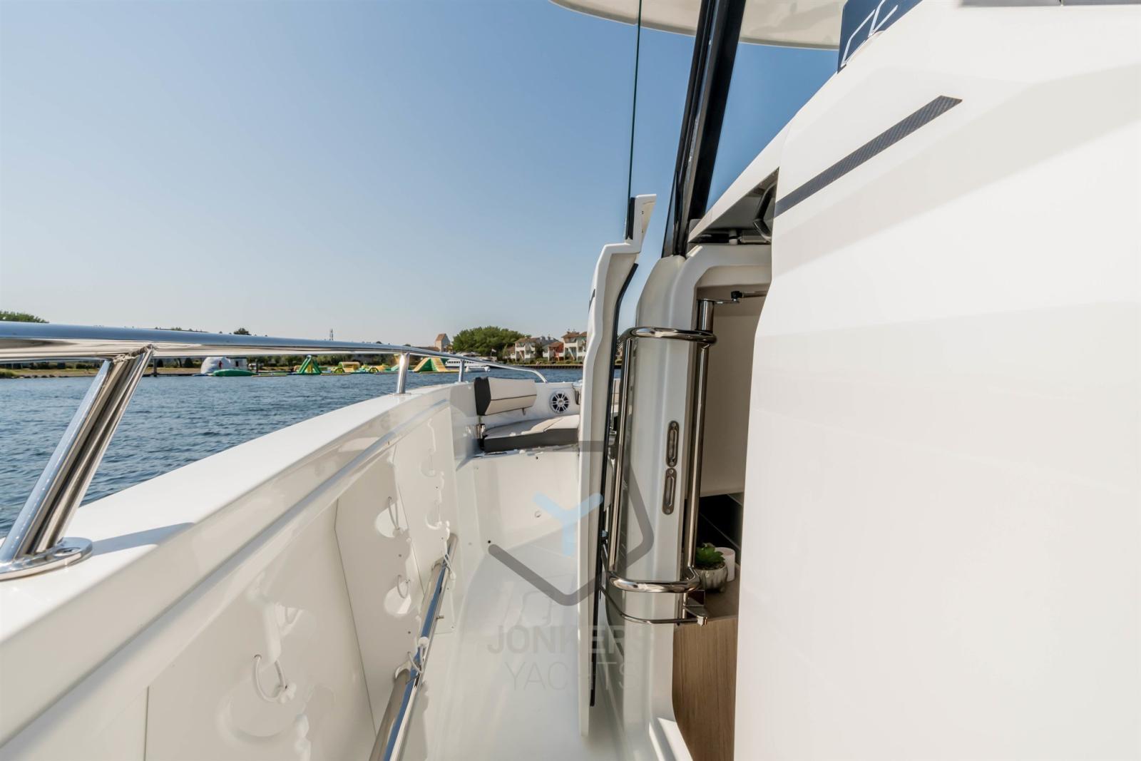 Whether you dream of a day of fishing with all the trimmings, or want to lie quietly at anchor, on the new boat within this series you can experience unforgettable moments with family and friends. The Cap Camarat 10.5 CC features two spacious steering positions and a large side door with integrated swim ladder for easy access to the sea: fun and relaxation guaranteed! With its V-shaped hull, the boat has excellent seaworthiness, and with its powerful twin engine, 2x 300 hp with joystick, and ergonomic steering, you will enjoy long fast cruises, perfectly safe in the comfortable seats.