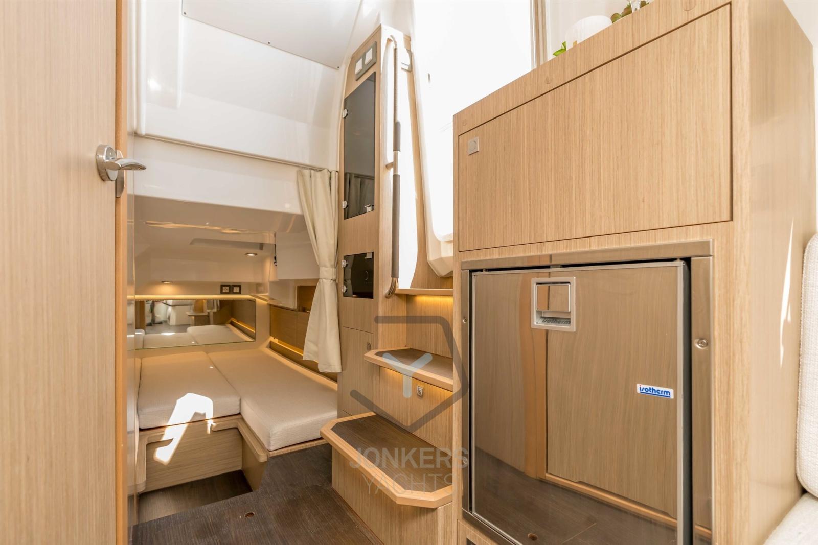 Inside, you will find a surprisingly large open and bright living space. Let yourself sway on the waves in four comfortable berths: in the forward cabin, the saloon converts into a berth, the main compartment has a separate shower, and in the aft cabin there is an attractive double cabin.