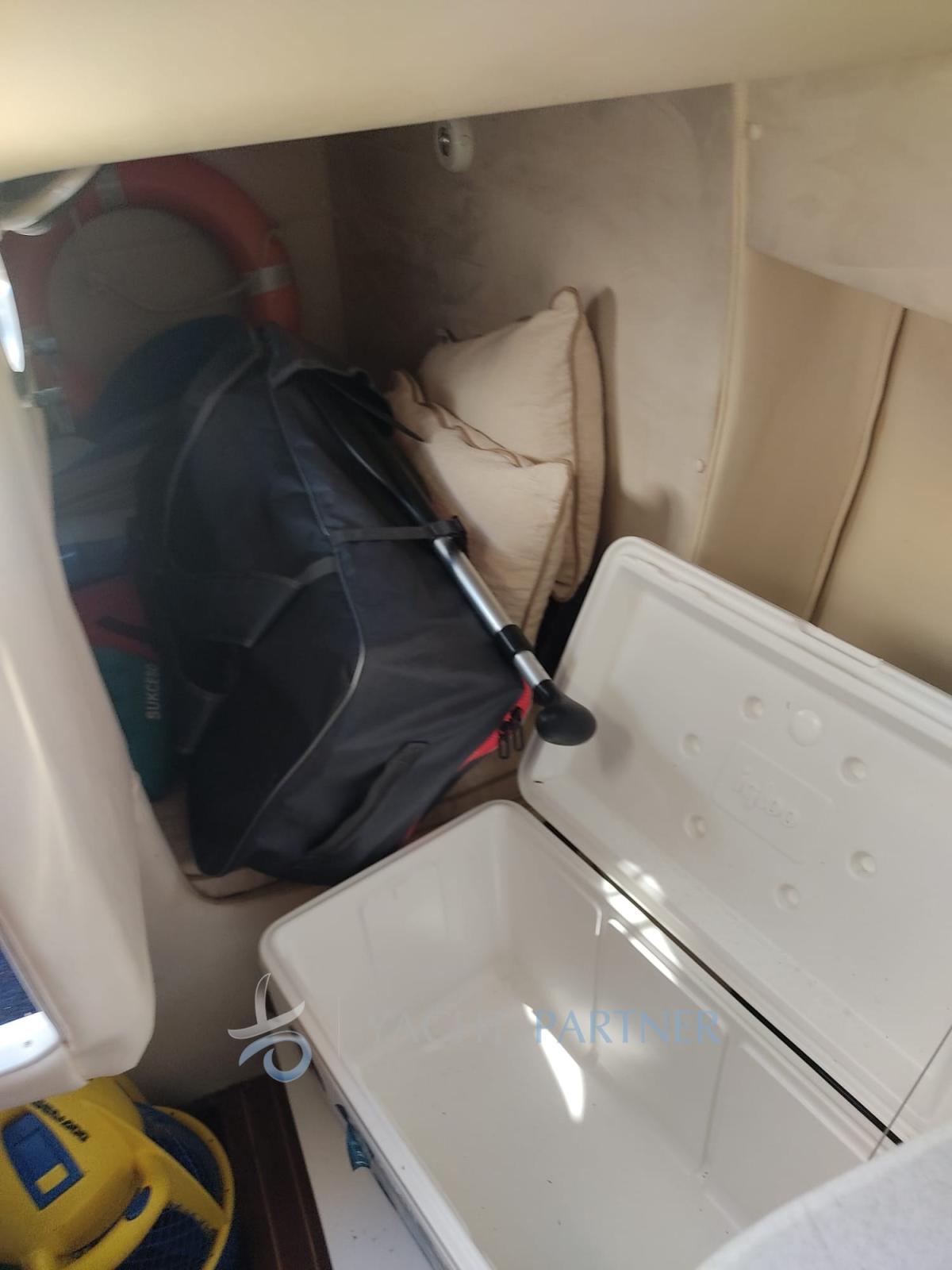 Anchor (Catena in acciaio), Water pressure pump, 2 Batteries, Deck Shower, Hydraulic Flaps, Fire Extinguishing System, Washbasin in the cockpit, Courtesy Lights, Underwater lights, Teak Cockpit, Shorepower connector, Electric Windlass, swimming ladder, cockpit table.