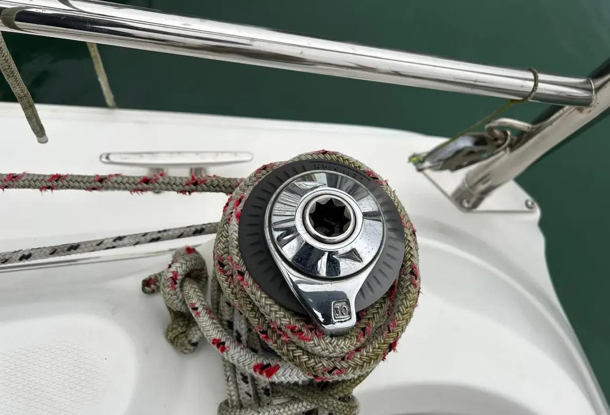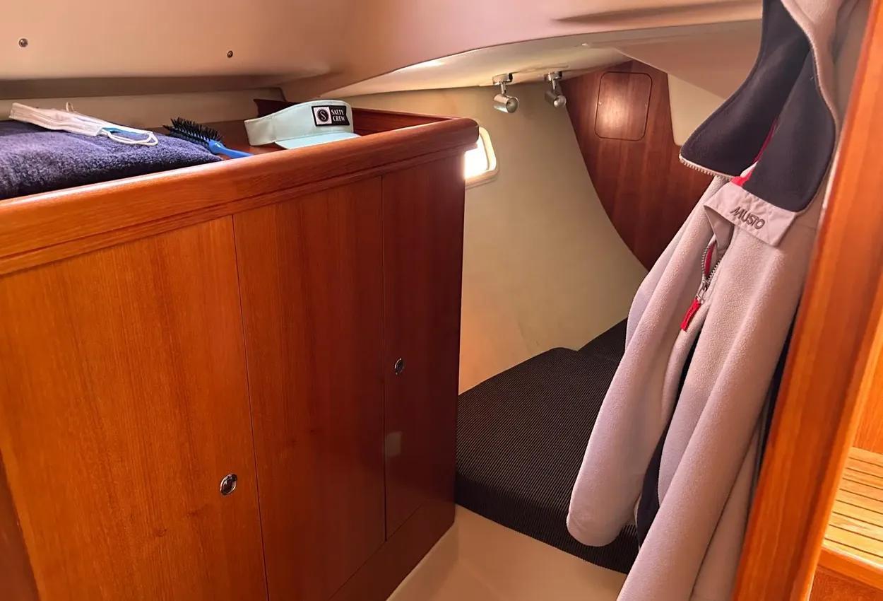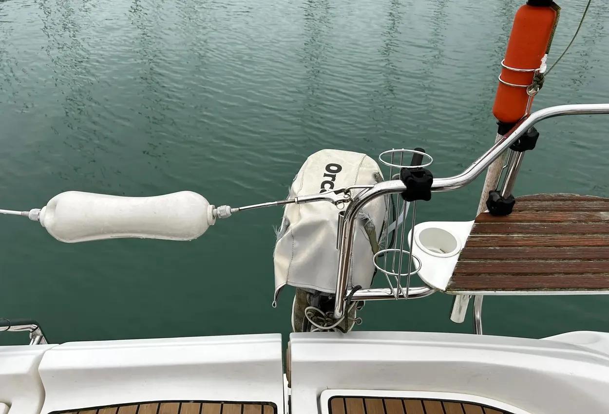 Boat DescriptionModel: 2005 Hunter Legend 33 sail cruiserEngine: Yanmar 3YM30 diesel engine with saildrive SD20 and folding propInterior FeaturesA lovely clean example of this popular model with:2 large double cabinsDouble berth sleeping in the saloonThe aft cabin to starboard includes:Double bedHanging lockerStowage areasThe saloon features:Large C-shaped seating area with table to portSeparate bench seat/bunk to starboardStowage areas throughoutUpholstery finished in dark blueTo starboard is the chart table area with:Ample room for charts and equipment12v and 240v switch panelsRaymarine plotter screenVHF radioStereoGaugesAlso to starboard is the heads compartment with:SinkShower attachmentMarine toilet (with holding tank)To port is the galley area in a wrap-around C shape with:Twin hobsOvenSinkFridgeStowage areas for provisionsCentral companionway access to the cockpit with engine compartment below.Inventory IncludesRaymarine C80 plotterRaymarine ST60 depth, log, wind speedSinrad RD68 VHFBlaupunkt Freiburg CD34 stereoElectric and manual bilge pumpsHot water systemOven with twin hobsFridgeMarine toilet with holding tankBattery charger with 220v shore power cableTeak cockpitCockpit cushionsOutboard engine bracketRadar reflectorAvon Redstar tenderHonda BF2.3 outboardSeago LR4V liferaft (date unknown)Ropes and fendersBoathooksWater temp gaugeOil pressure & temp gaugeCompassHour meterSwimming ladderSprayhoodElectric anchor windlass