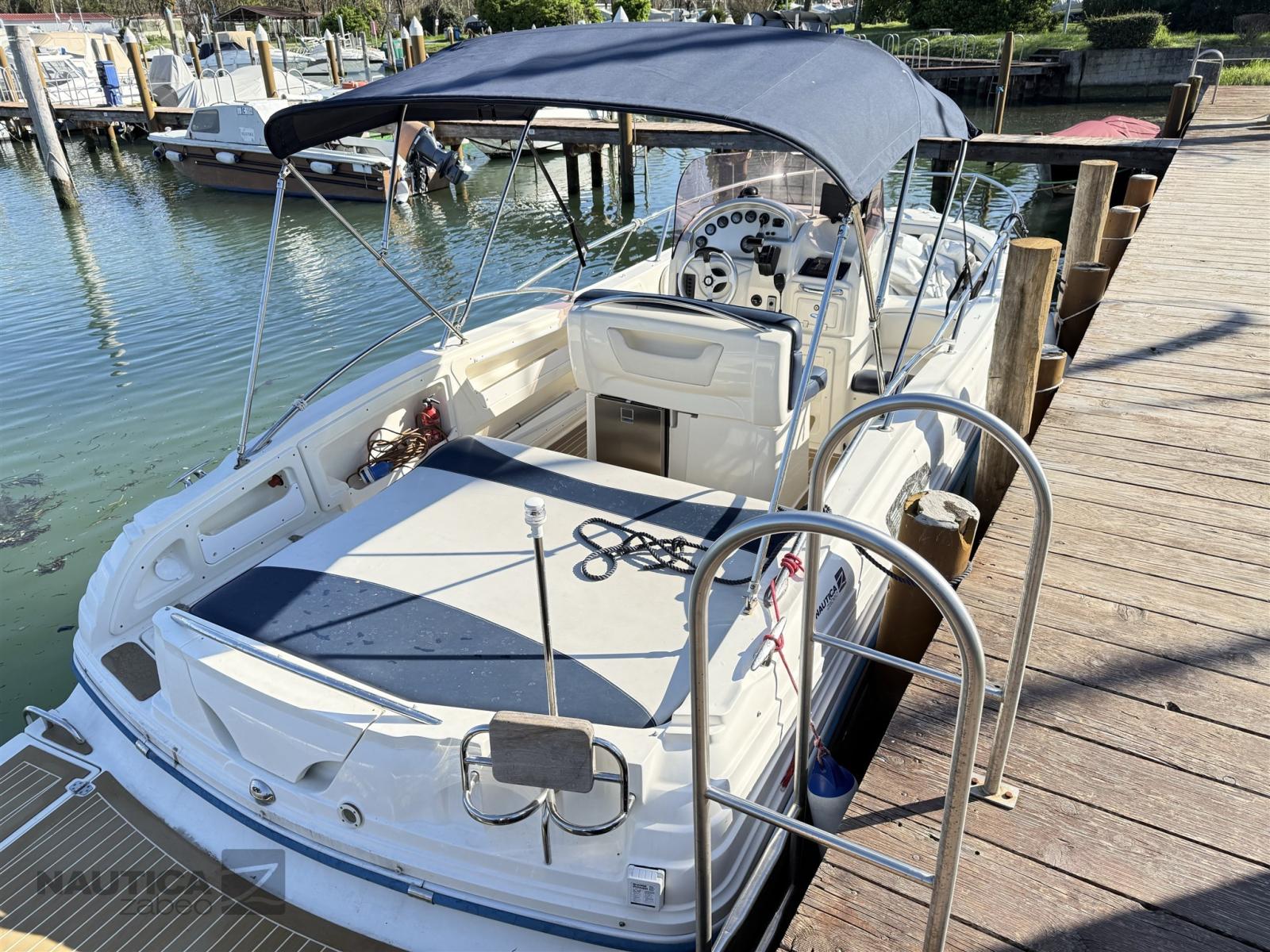 Among the main features, the Vittoria 23.60 can accommodate up to 10 people, making it ideal for outings with friends. It is equipped with a sterndrive engine; for example, some units are equipped with a 5.0 MPI Mercruiser with 260 hp, which guarantees good performance at sea.