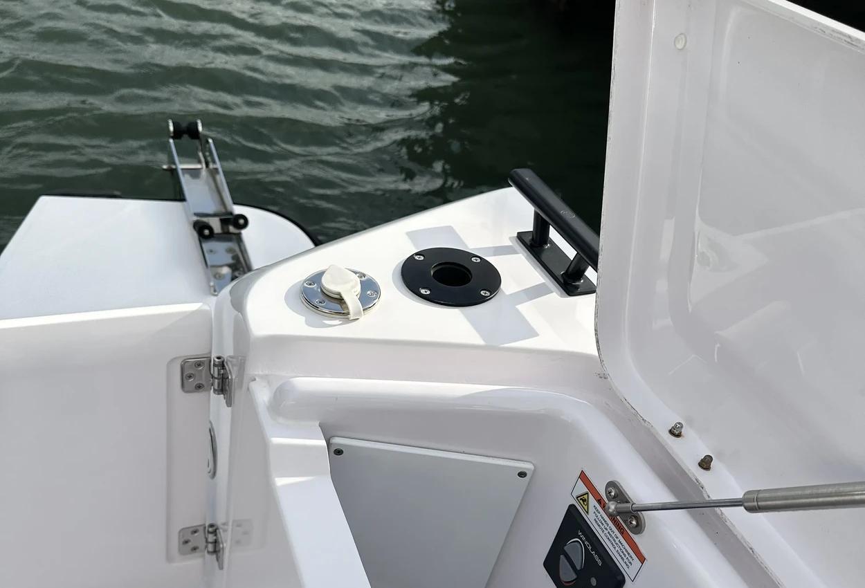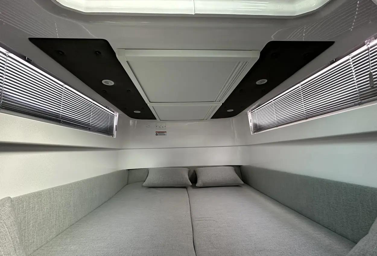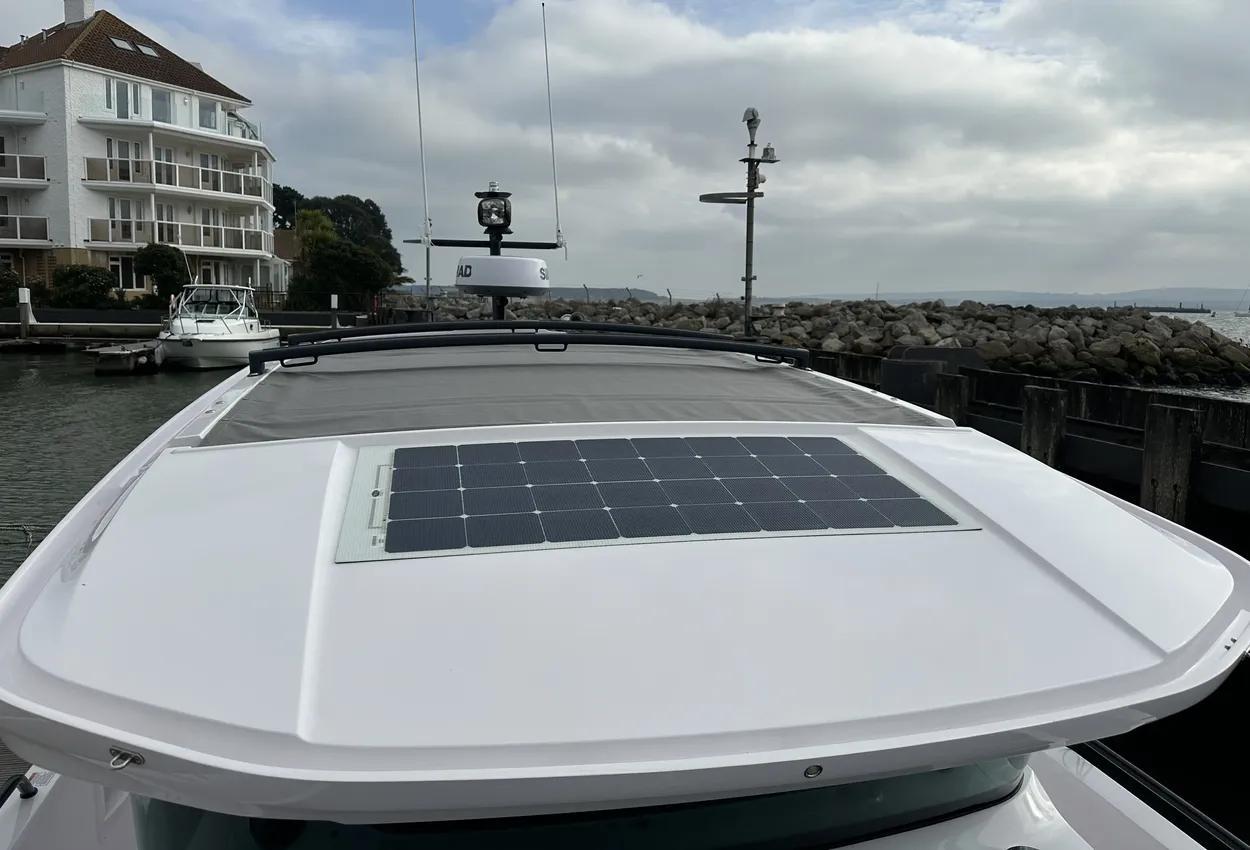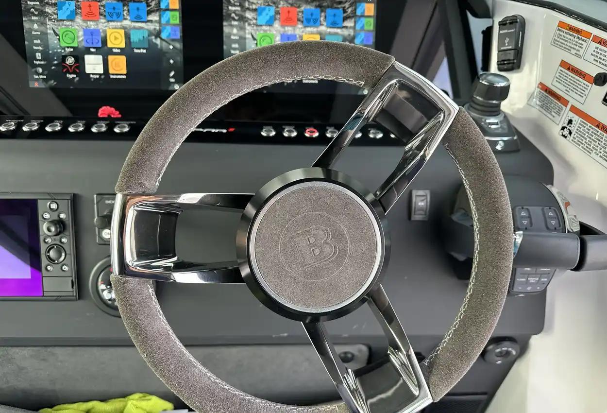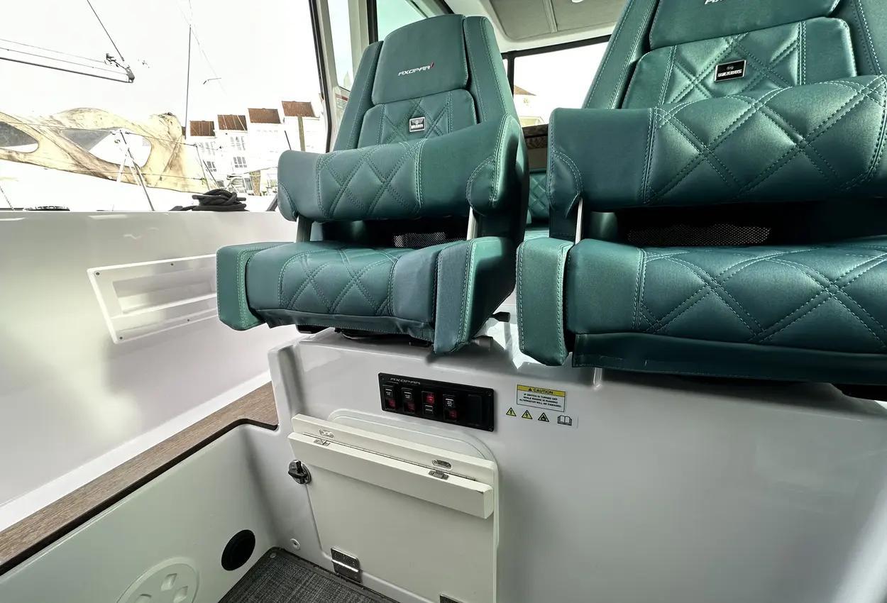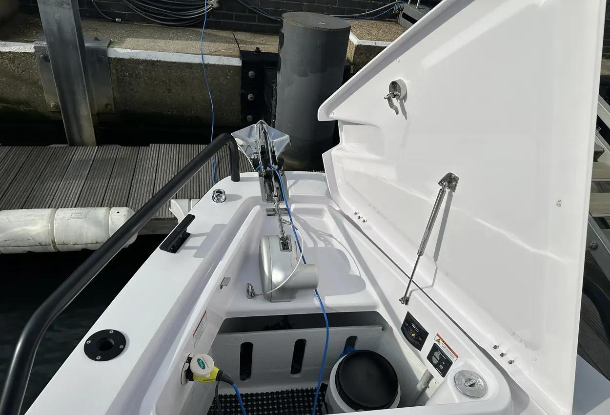 The Axopar 37 XC is designed to take on every season, offering a fully enclosed cabin to protect you from the elements. With twin Mercury Verado 330hp engines, it’s powerful yet comfortable, making it the perfect choice for year-round exploring. Whether it’s a crisp winter morning or a breezy summer evening, the Axopar 37 XC ensures you’re always ready to set sail.Incredible opportunity to purchase this Axopar 37XC Cross Cabin - Brabus Line! Experience power and comfort combined. Offering a huge spec, this is not a boat to be missed. View now in Poole 01202 679 421.Boat DescriptionHand laminated hull in Vinylester resin for the first coat for osmosis prevention of the hull in GRP materialTwin-stepped hull with “sharp entry bow”Integrated engine bracket in hull for outboard enginesFixed aluminium fuel tank 730l with overflow preventionFreshwater tank 100lHeavy-duty rub rail with rubber end caps in greyHeavy-duty rub rail around swim platformsAxopar 3D signature chrome logo on both sides of hullBow thruster tunnel preparation in hullWalk-around deck layout with open aft deckAnti-skid finishing on working deck areas and deck hatchesSelf-draining deck area with quick drain aft deckAll hardware, pulpits, locks, hinges, filler caps & cockpit grab rails in 316 stainless steel8 x cleats on aft, midships and fore deckAdditional hooking points for safety harness around side deck areasFore deck pulpits, shortLED navigation lights on fore deckSpacious anchor locker with drainage in bowRope holders in anchor locker on fore deck & fender storagesSofa with backrest on fore deck including harbor coverLarge skylight with harbor coverFlush mounted 2 x skylights including harbor coverCurved & toughened glass wrap-around windscreens and side windows in light green tint with illuminated 37 signatureFully enclosed cabin with extra wide & lockable sliding doorsRoof structure in white GRP with large opening canvas roofHarbour cover for opening canvas roof2 x integrated & interlinked windscreen wipersWindshield washer with separate reservoirGrab rail under coach roof on aft deckIntegrated boarding steps on both sides of helmFoldable light mast in white painted aluminium with anchor lightTwin large fender storages on aft deck with insulation/cooler boxesAft deck with large storage compartmentBattery/electrical compartment under aft deck storageFlagpoleSignal hornTwo electric bilge pumps with auto-functionManual bilge pump for aft deck sectionTrim-tabs with joystick controlSide railsIntegrated swim platforms and telescopic bathing ladderFront CabinFront cabin with L-shaped lounge sofa & seatingLarge queen size bed with soft side bolstersAll upholstery in Torres Grey fabricRoof panels in Vintage Steel fabricPortlight towards fore deck with openable hatchMirror in forward bulkhead2 x foldable wooden shelves beside the bedCabinet upholstered in Vintage Steel fabric with wenge topMirror above cabinet4 x pop up clothes hangersBuilt-in electric flush toilet under L-sofa with septic tank 70l and deck/hull outletsMain 12V fuse panel with automatic fuses12V & USB outlet in front cabinFire & CO2 alarms6 x LED roof spotlightsLED roof light strip between skylightsTwo manual “mushroom” roof ventsCarpet in blackBRABUS LineBRABUS Line Color Edition, Miami BlueBRABUS Line Color Edition, Platinum GreyBRABUS Performance LineAdditional FeaturesKitchen Module in cockpitToilet compartmentFixed sun bed on foredeck with coversX2 12" Glass helm Simrad information displayRoof barsNavigation OptionsChartplotter Simrad NSS 12Information display twin 12Twin Chartplotter Simrad NSS 12"Echo sounder, Activeimaging 3in1Echo sounder, thru hullSimrad VHFRadar Simrad Halo20+