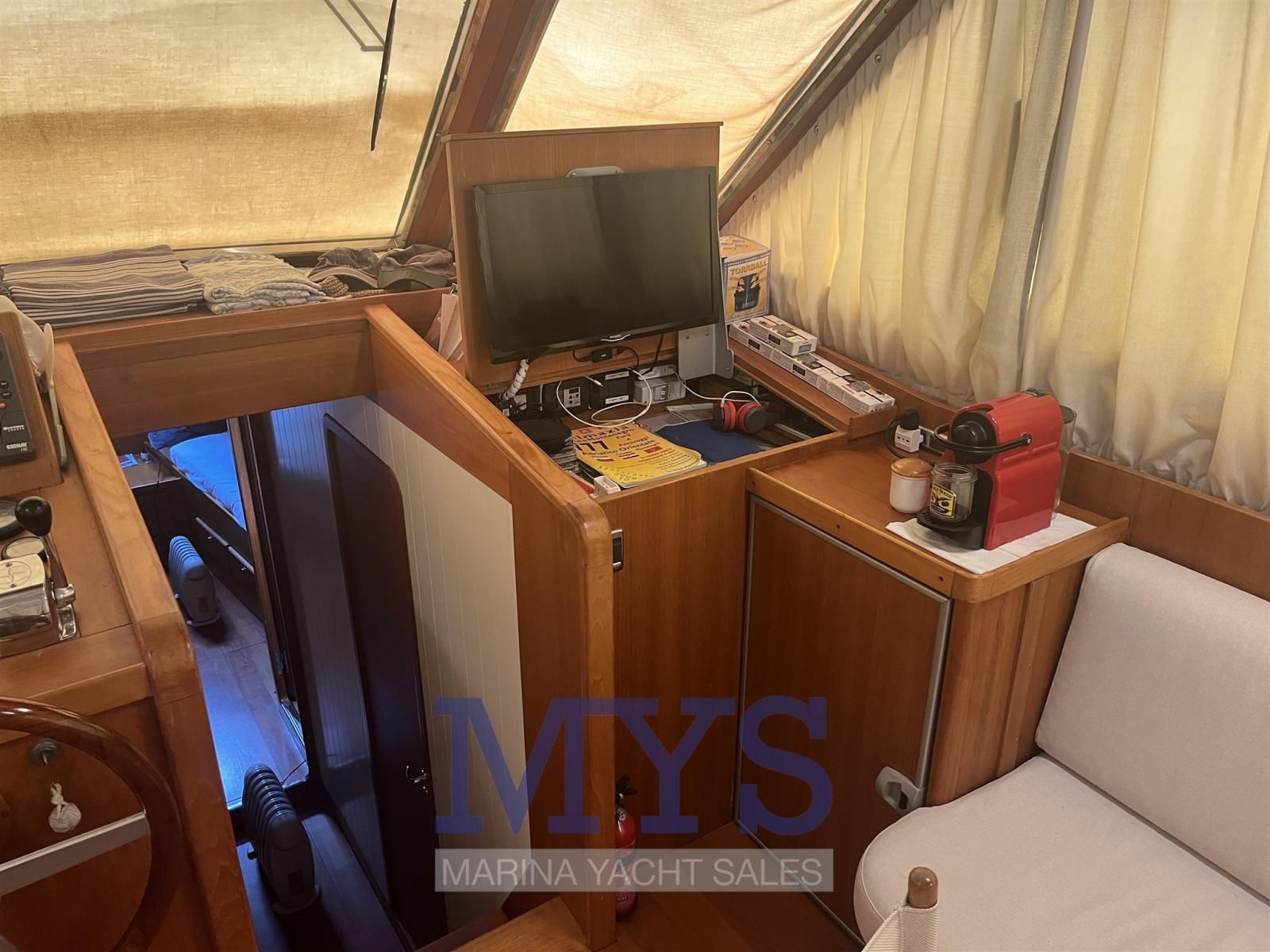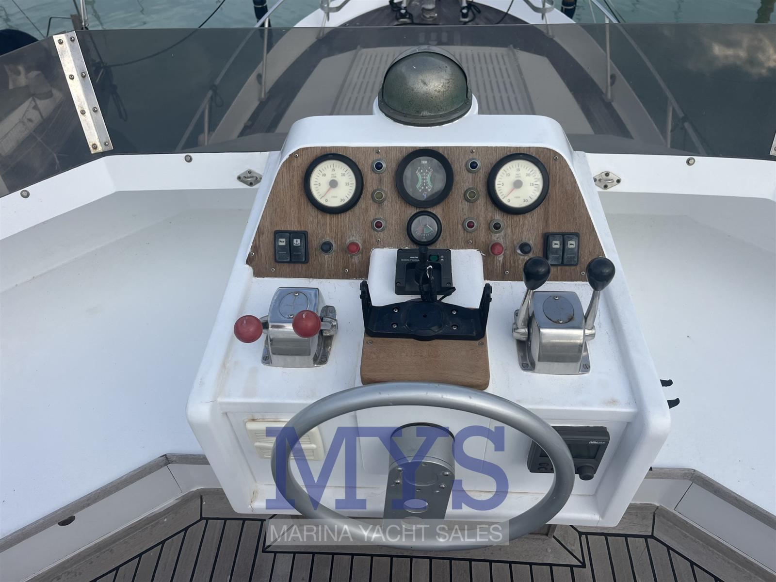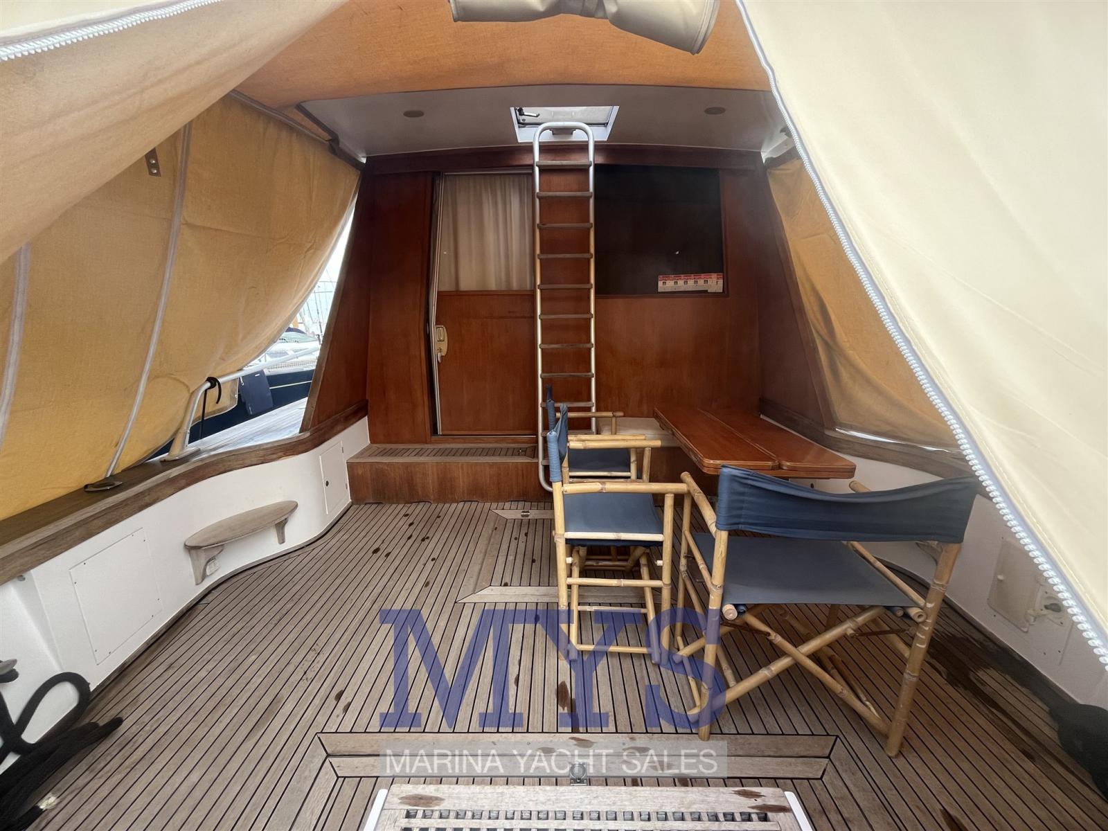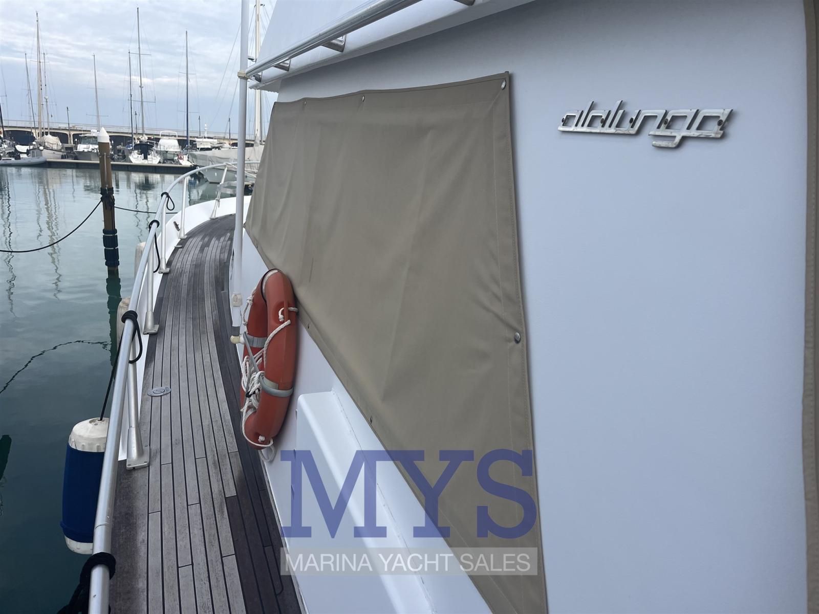 Engine Alarm, Anchor (Delta - 100 mt di catena), Water pressure pump, 6 Batteries, 2 Battery charger, Deck Shower, Bow Thruster (motore e elica del 2024), Hydraulic Flaps, Fire Extinguishing System, Flaps Indicators, Courtesy Lights, Auxiliary Engine (Mercury 8 hp - 2 tempi - anno 2000), Gangway (idraulica Opac Mare), Platform, Manual Bilge Pump, Teak Cockpit, Shorepower connector, Water harbor connector system, Electric Windlass, swimming ladder, cockpit table (a 6 posti), Tender (Mariner 2.50 - chiglia rigida - anno 2007), Horn.