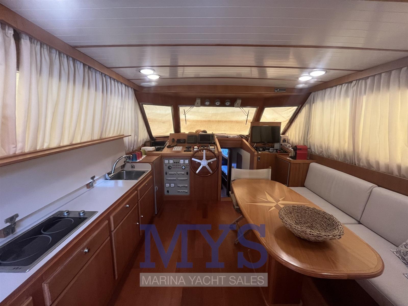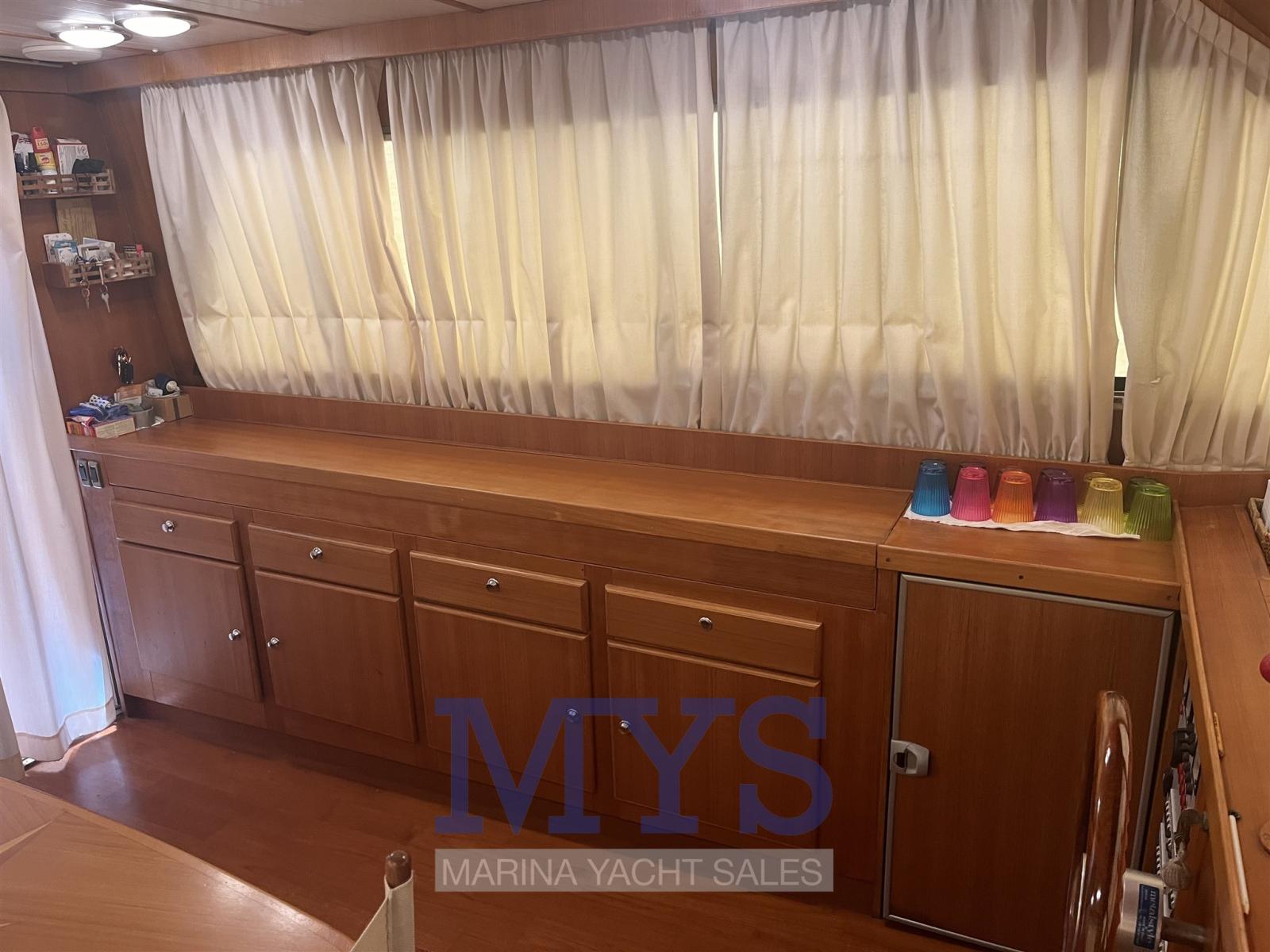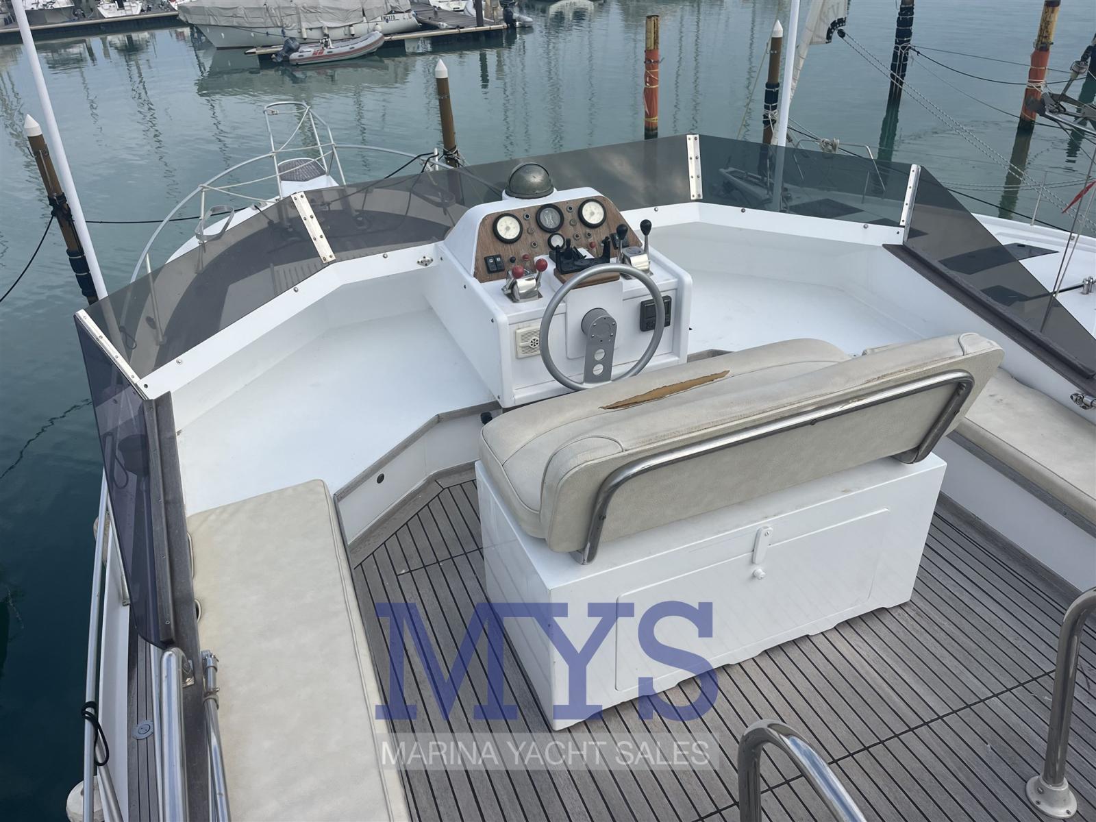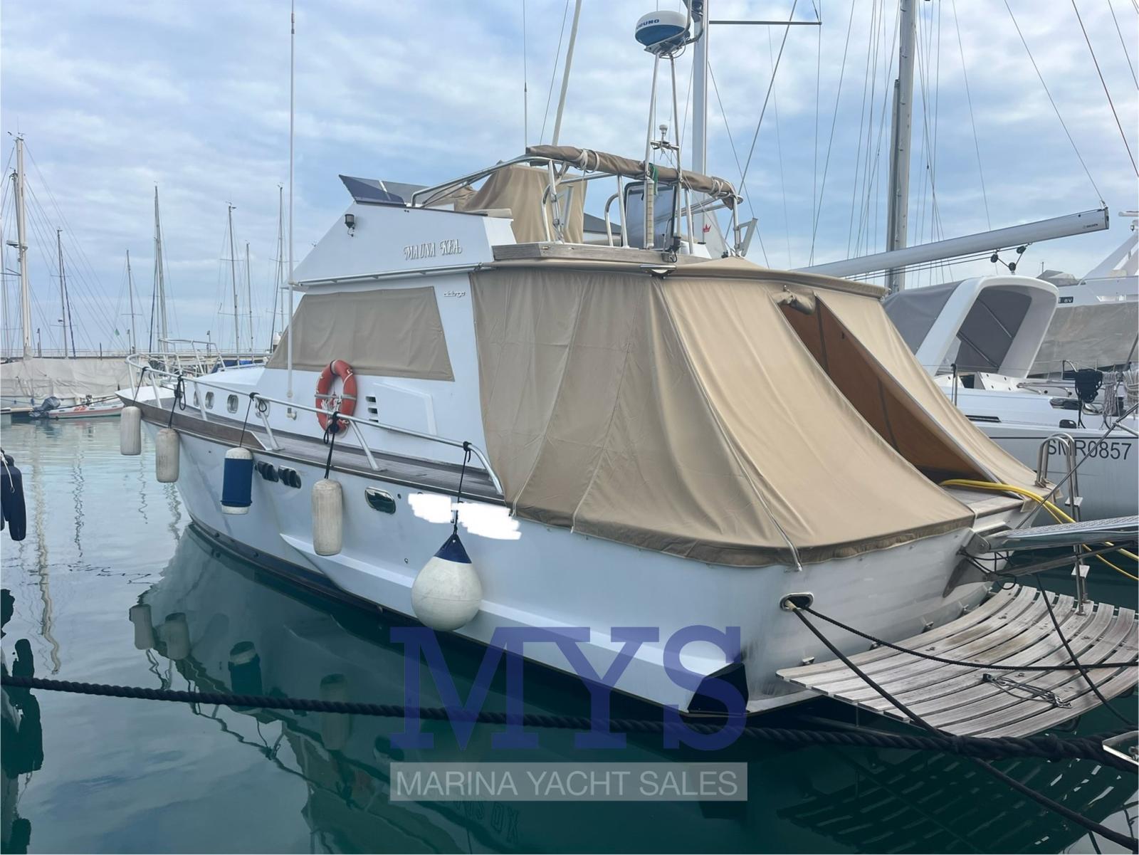 Engine Alarm, Anchor (Delta - 100 mt di catena), Water pressure pump, 6 Batteries, 2 Battery charger, Deck Shower, Bow Thruster (motore e elica del 2024), Hydraulic Flaps, Fire Extinguishing System, Flaps Indicators, Courtesy Lights, Auxiliary Engine (Mercury 8 hp - 2 tempi - anno 2000), Gangway (idraulica Opac Mare), Platform, Manual Bilge Pump, Teak Cockpit, Shorepower connector, Water harbor connector system, Electric Windlass, swimming ladder, cockpit table (a 6 posti), Tender (Mariner 2.50 - chiglia rigida - anno 2007), Horn.
