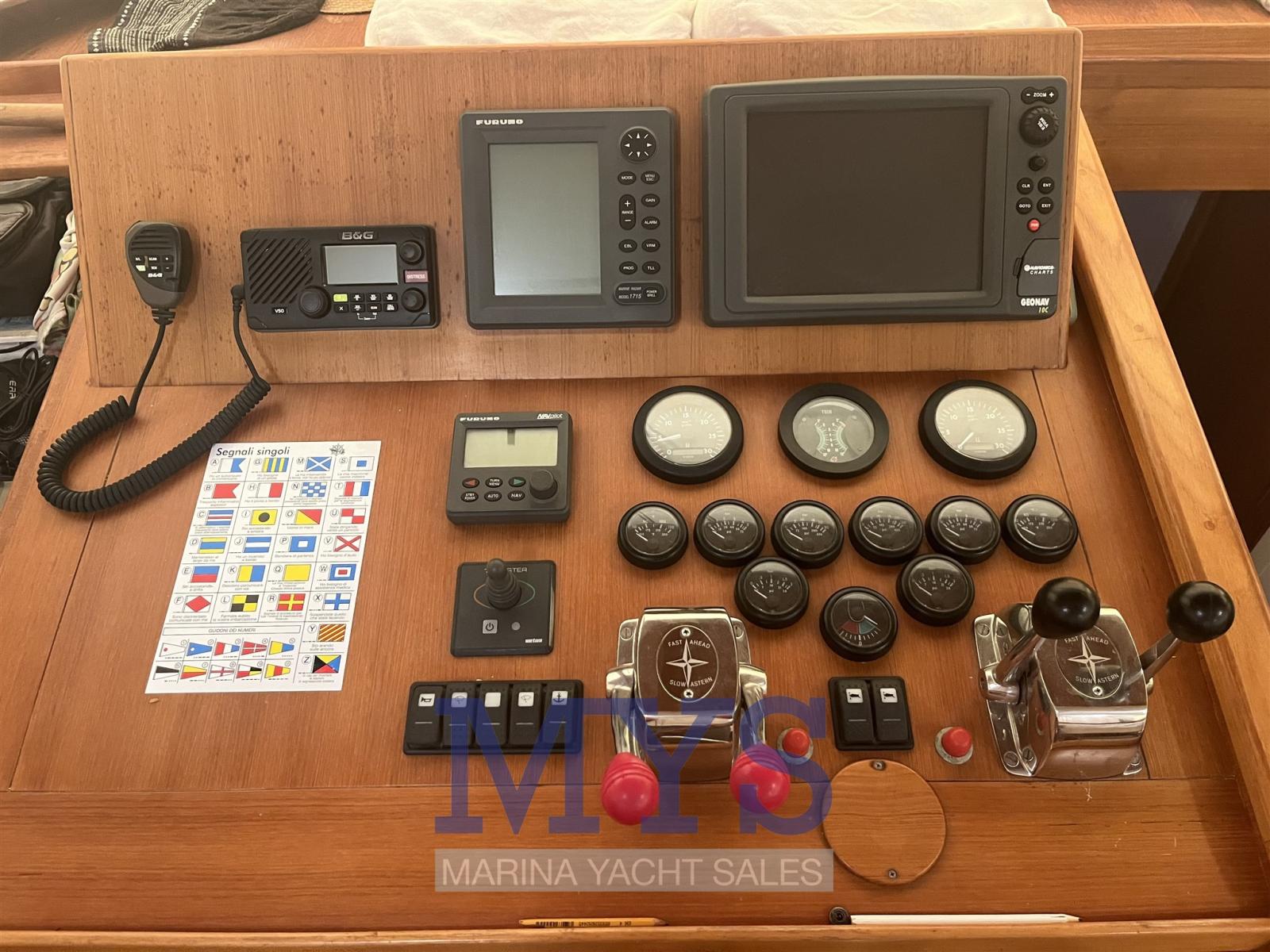 2 Compass, Autopilot (Furuno), 2 Chartplotter (Garmin del 2024 - Geonav del 2007), Radar (Furuno), 3 VHF Radio (B&G).