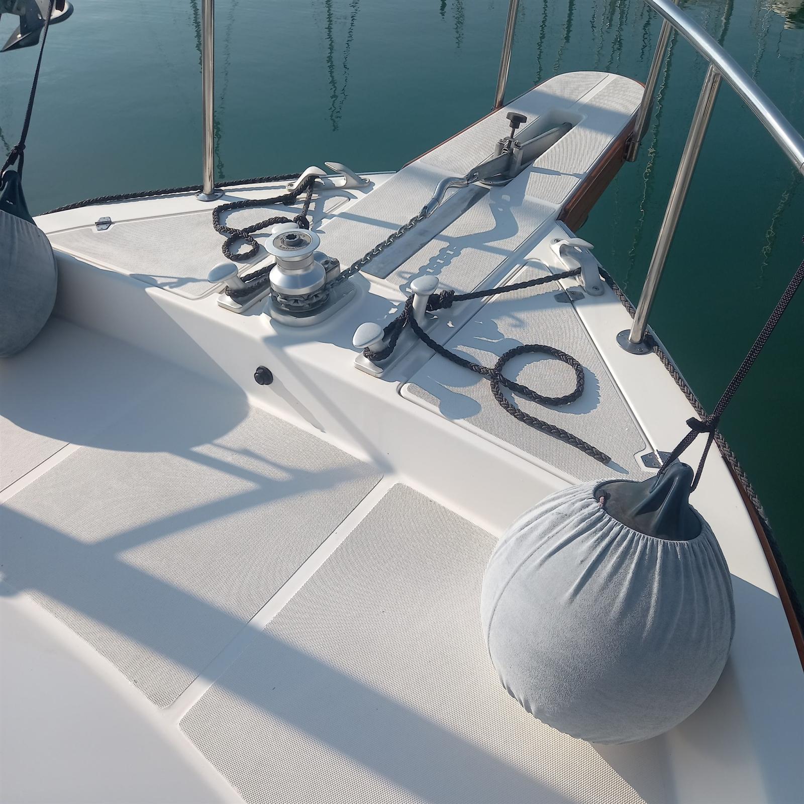 Engine Alarm, Water pressure pump, 3 Batteries, Deck Shower, Twin Steering, Directional Spotlight (2022), Hydraulic Flaps (N°2), Tender Crane, Fire Extinguishing System, Courtesy Lights, Gangway, Platform (allungata 2017), Automatic Bilge Pump, Teak Cockpit (Rifatto 2018), Shorepower connector, Water harbor connector system, Voltage Rectifier, Electronic instrumentation repeater, Rollbar, Electric Windlass, swimming ladder, Waste Water Purifier System, Living Room Foldable Table, Tender, Horn.