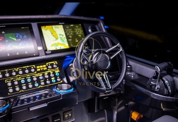 Radar Antenna (opzionale), Electronic engine control, On-Board Computer, Chain counter, Display, GPS (opzionale), Interface, Joystick (opzionale), Autopilot (opzionale), Chartplotter (opzionale), Plotter with GPS antenna (opzionale), Radar (opzionale), Co-pilot seat, Dynamic positioning system.