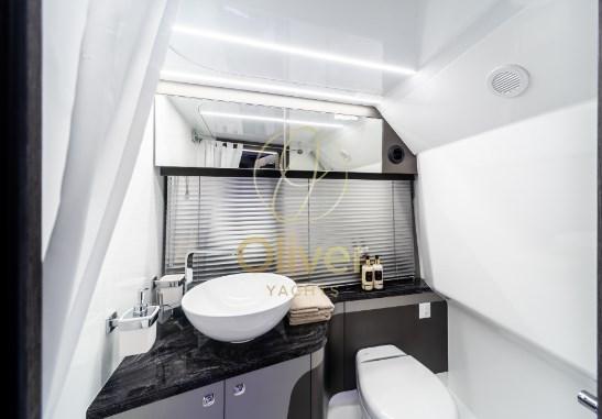 It adds elegance and increases comfort. The bow is accessed via the side walkway on the left. In the cockpit, on the port side, there is a