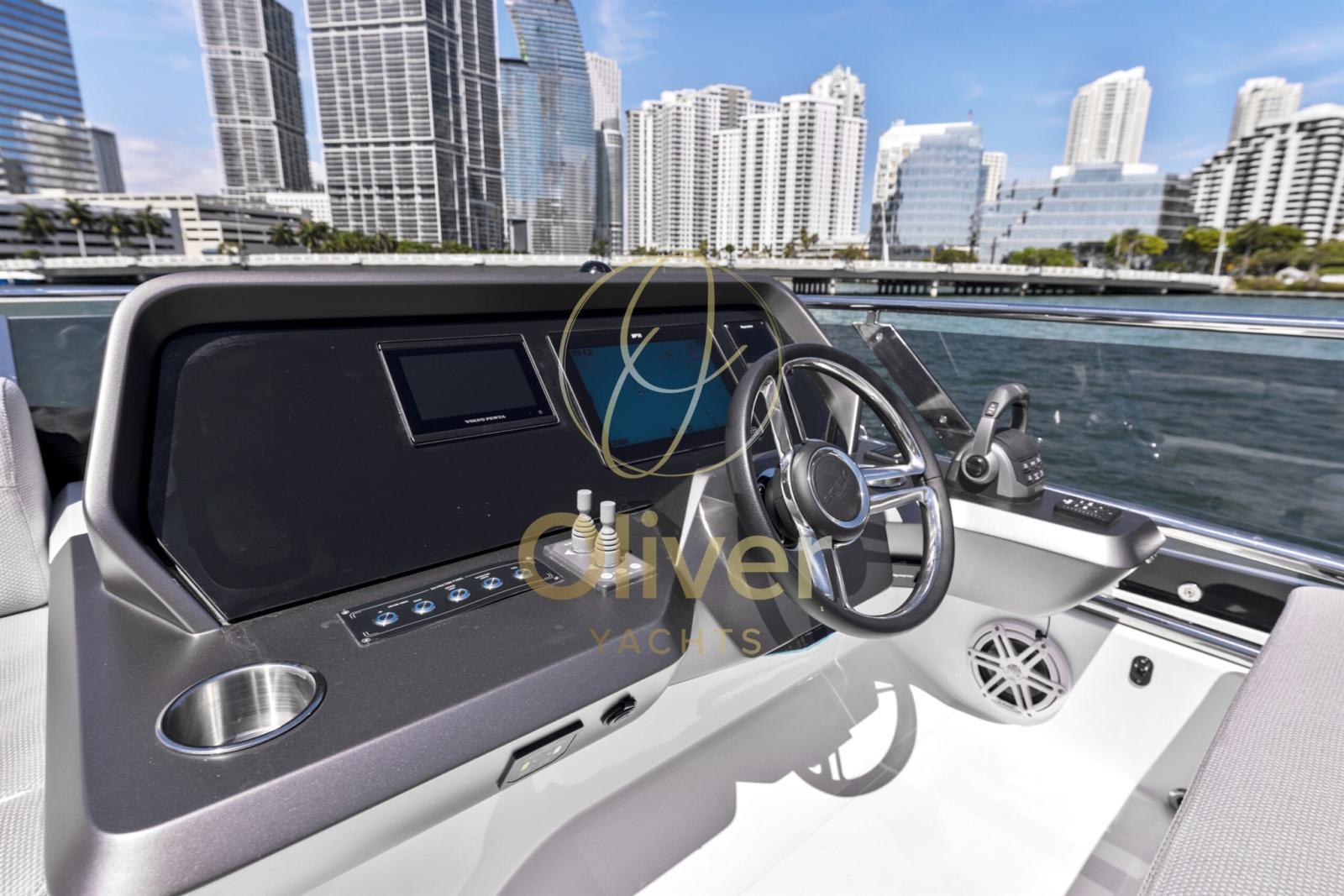 Electronic engine control, On-Board Computer, Chain counter, Display, Joystick (opzionale), Plotter with GPS antenna (opzionale), Radar (opzionale), Co-pilot seat, Dynamic positioning system.