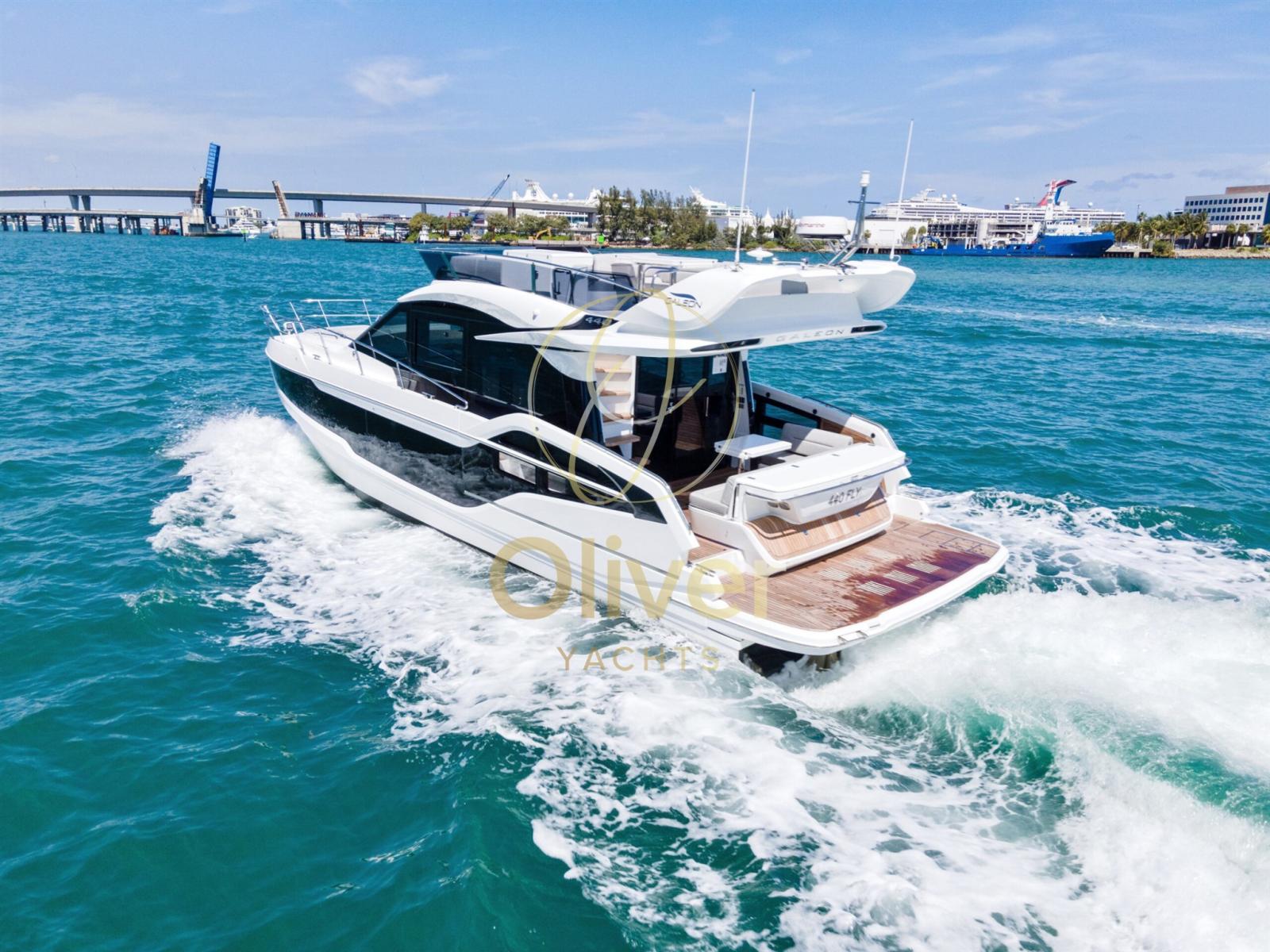 The sleek exterior marks another collaboration with the esteemed Tony Castro Design Studio and is instantly recognizable as it follows the trends set by the fourth generation of Galeon yachts. A unique combination of a dynamic silhouette with sporty accents is complemented by the large windows on both decks that enliven the interior. A clear focus has been placed on the practicality and versatility of all exterior areas to include all passengers and allow easy access.