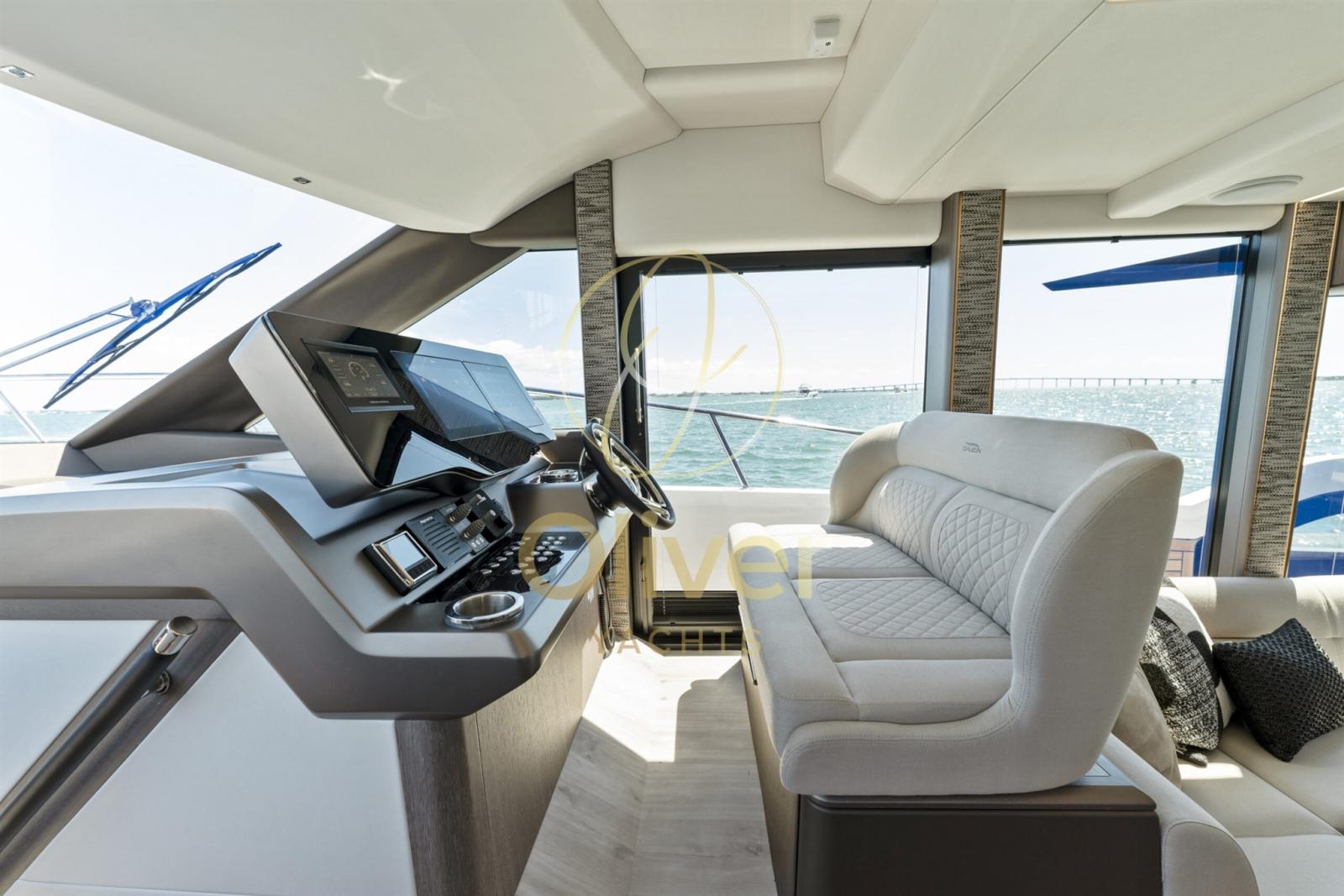 Cockpit Cover, Cushions, Stern Cushions, Bow Cushions, Fly Bridge Cuscions, Cockpit Cushions, Sunbathing deck, Flybridge Cover, Electric Canopy (opzionale), Sunshade.