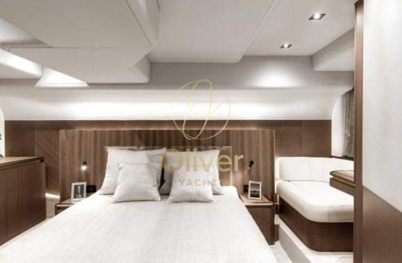 Engine Alarm, Bilge Alarm, Electric Engine Compartment Opening, Auto Dynamic Trim Interceptor, Water pressure pump, Auto-Trim, Folding cleats, Draining System, Teak Side Decks (opzionale), Canvas Wing (zipwake), Special Colour (vari gelcoat), Deck Shower, Twin Steering, Stern Thruster (opzionale), Headlights fixed on the stem, Hydraulic Flaps, Tender Garage, Tender Crane, Hard top (Hard Top in carbonio al fine di mantenere il baricentro basso e aumentare la stabilità), Fire Extinguishing System, Flaps Indicators, Washbasin in the cockpit, Courtesy Lights, Underwater lights (opzionale), Gangway (opzionale), Platform (in teak, opzionale sistema idraulico per la plancetta sommergibile), Automatic Bilge Pump, Manual Bilge Pump, Entry door, Side door, Teak Cockpit (opzionale), Shorepower connector, Water harbor connector system, Electronic instrumentation repeater, Electric Windlass, swimming ladder, Waste Water Purifier System, Stabilizers (Seakeeper 8 opzionale Zipwake di serie), cockpit table (a scomparsa), Living Room Foldable Table, guard rails with gates, Horn, Teak Deckhouse (opzionale), Stern Winches, Bow Winches.