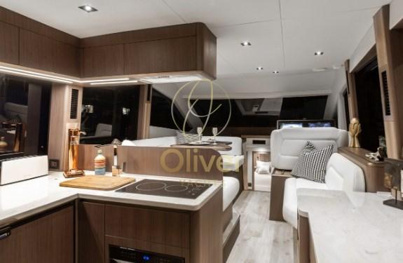 Experience the next level of maritime luxury with the highly anticipated debut of the Galleon 480 FLY, meticulously crafted under the visionary guidance of naval architect Tony Castro. Our main goal was to expand the deck area and accommodate abundant natural light inside by incorporating generously oversized windows on both the main and lower decks.