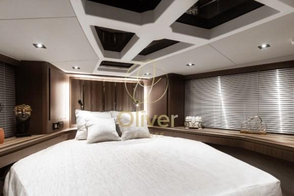 Intrusion Alarm (opzionale), Air Conditioning (opzionale), BBQ/Grill, Warm Water System, Safe, Inverter Air Conditioning (opzionale), Internet Connection, Domotic Controller, Light Dimmer, Watermaker (opzionale 80 l/h), Waste Water Plant, Interior wooden floor (varie essenze in campionario), 12V Outlets, Heater (opzionale), Black Water Tank, Termovision (opzionale, Fliir), Electric Toilet.