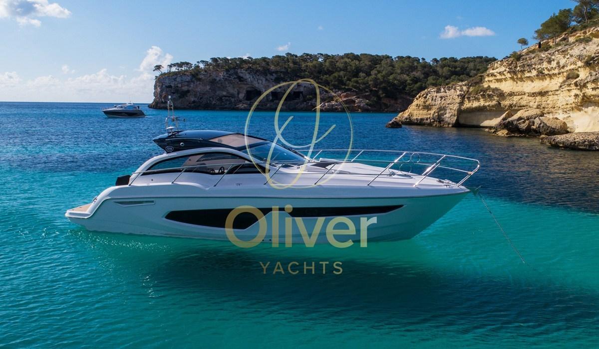 Central area with wide sofa and reclinable backrest to cover to stern sunpad