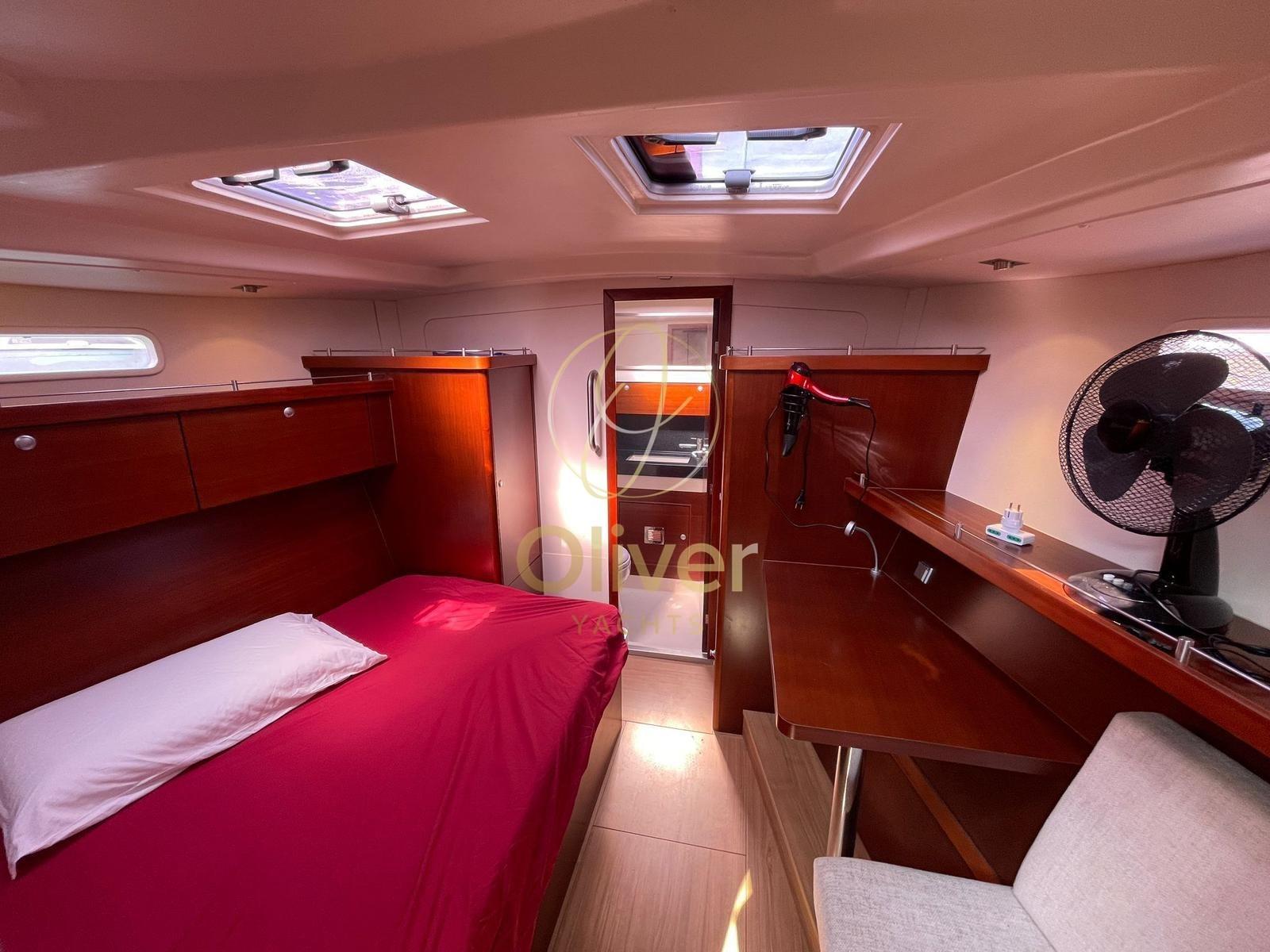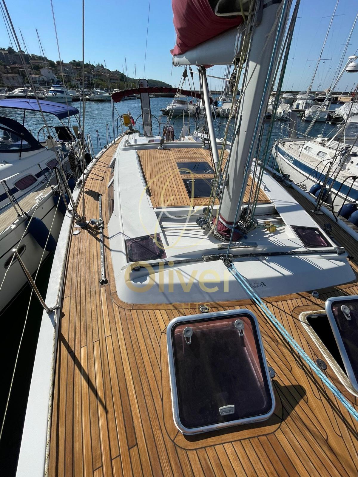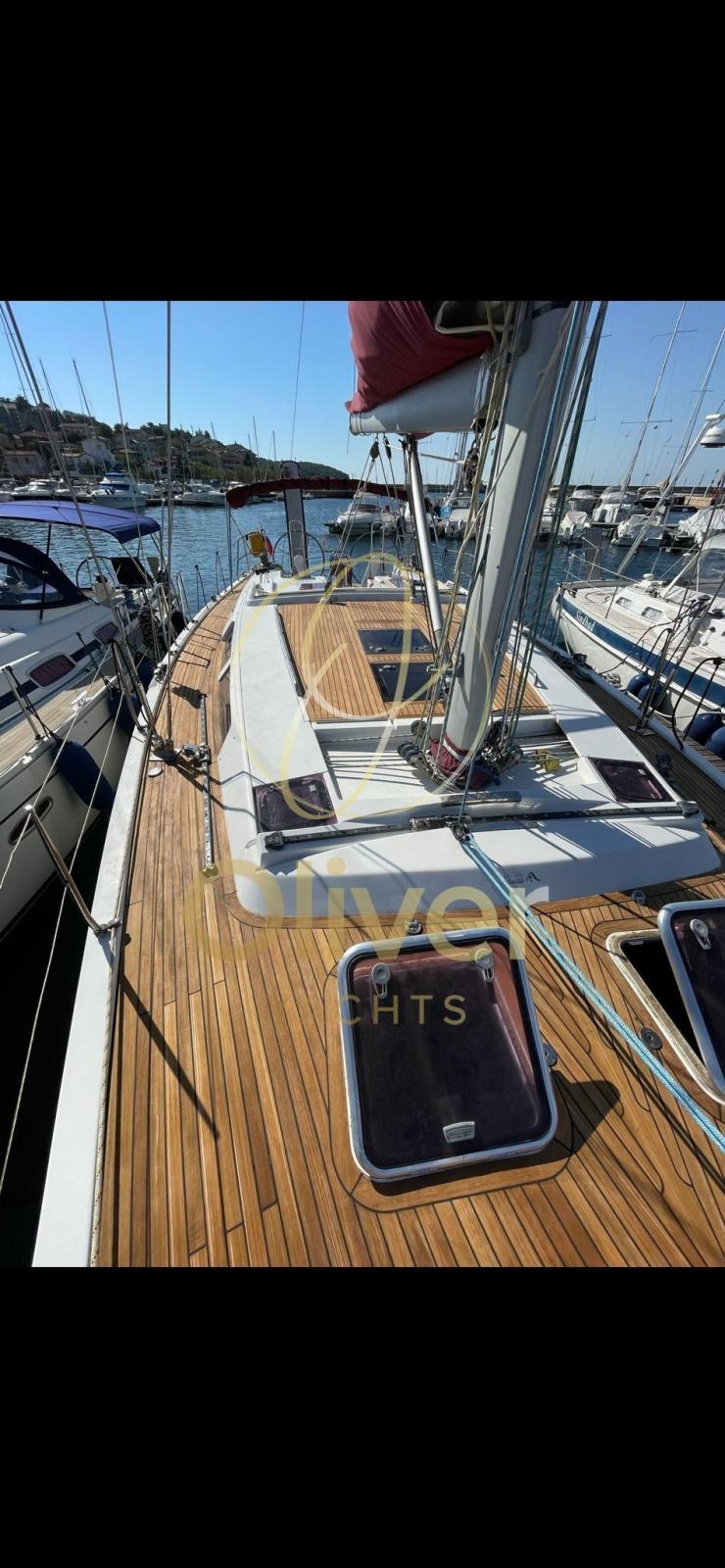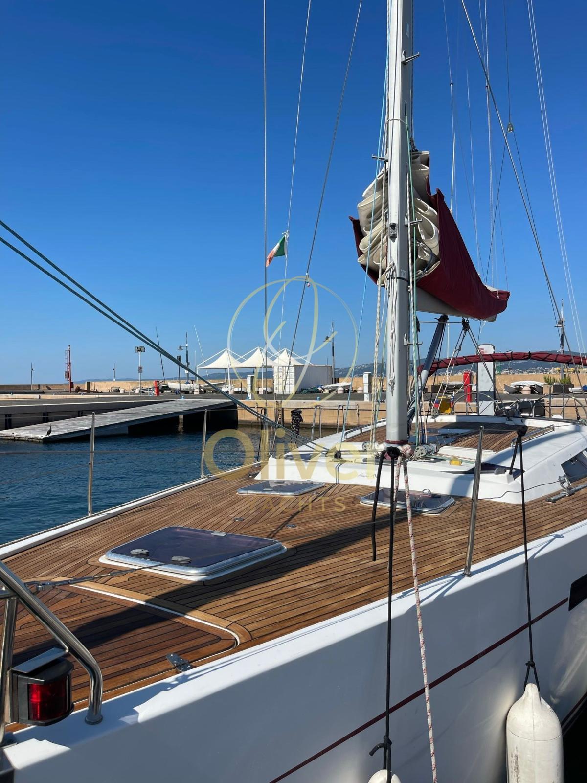 TRANSFERABLE WITH ART 8.2 Net of VAT for subjects with these requirements; 2023: fully polished, new complete teack deck, overhauled anchor windlass engine, overhauled retractable bow thruster, overhauled electric winch motors, replaced electronics with simrad, plotter, vhf with wifi station, simrad radar. Autopilot, compass, GPS. Cartographic plotter in the cockpit; battened mainsail; self-tacking jib; Genoa, jennaker with sock, heating and air conditioning in the two rear cabins, matt lacquered mahogany, 2023 replaced 3 service batteries; 75 meters of chain, 1 electric winch for the rear platform, 2 electric winches, 2 winches for the gennaker, backstay tensioner, 2 steering wheels; gangway, overhauled October 2023 overhauled, 2023: Jotum Antifouling Self-Polishing Coating New, Hard matrix antifouling in October 2023; 1 emergency anchor; various anchor ropes including a specific one for anchoring to the ground of 50 meters; 1/2025 NEW : Radar, GPS Plotter B&G , forestay, VHF antenna, wind vane,, refrigerator, inverter, engine service, forestay and furling jib; 5% brokerage commission + 22% VAT to be paid by the buyer (VAT is calculated only on the amount of the commission)