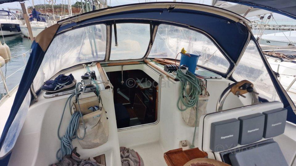 Sails in good condition, UV protection redone on the genoa and replacement of the furling blocks. Mainsail with 2 reefs. Cockpit cover