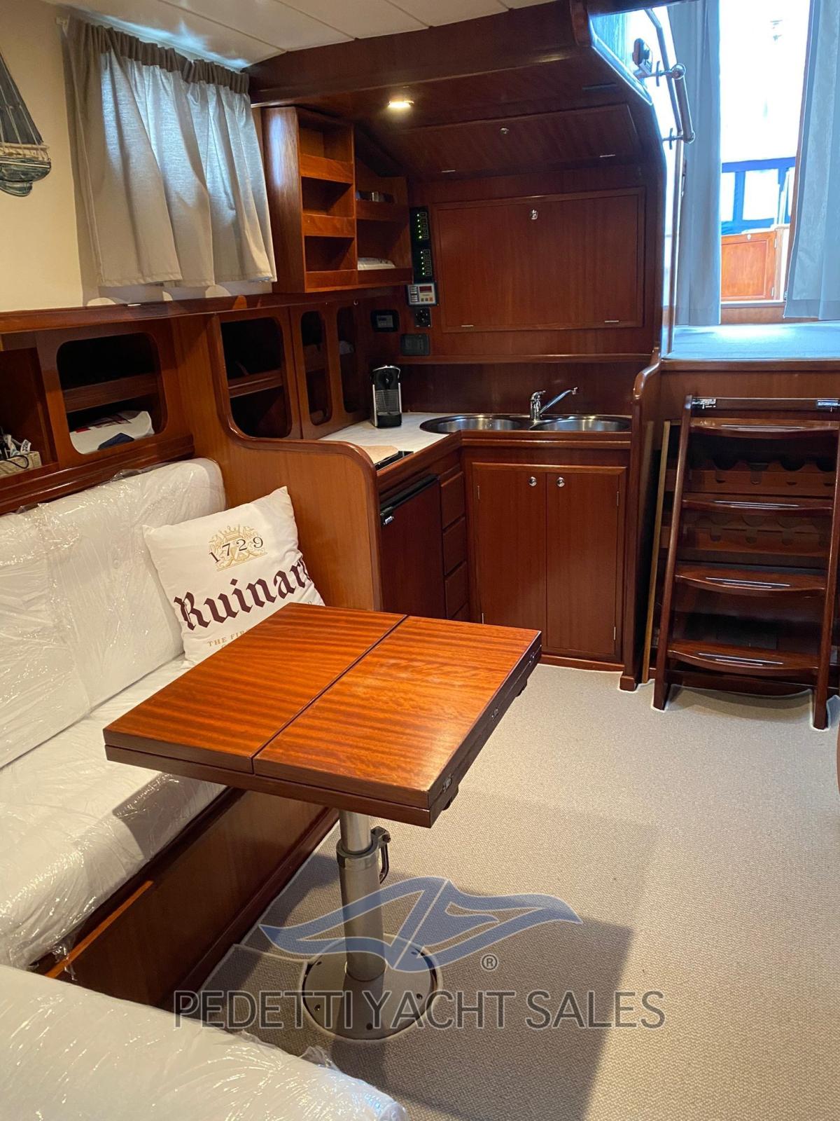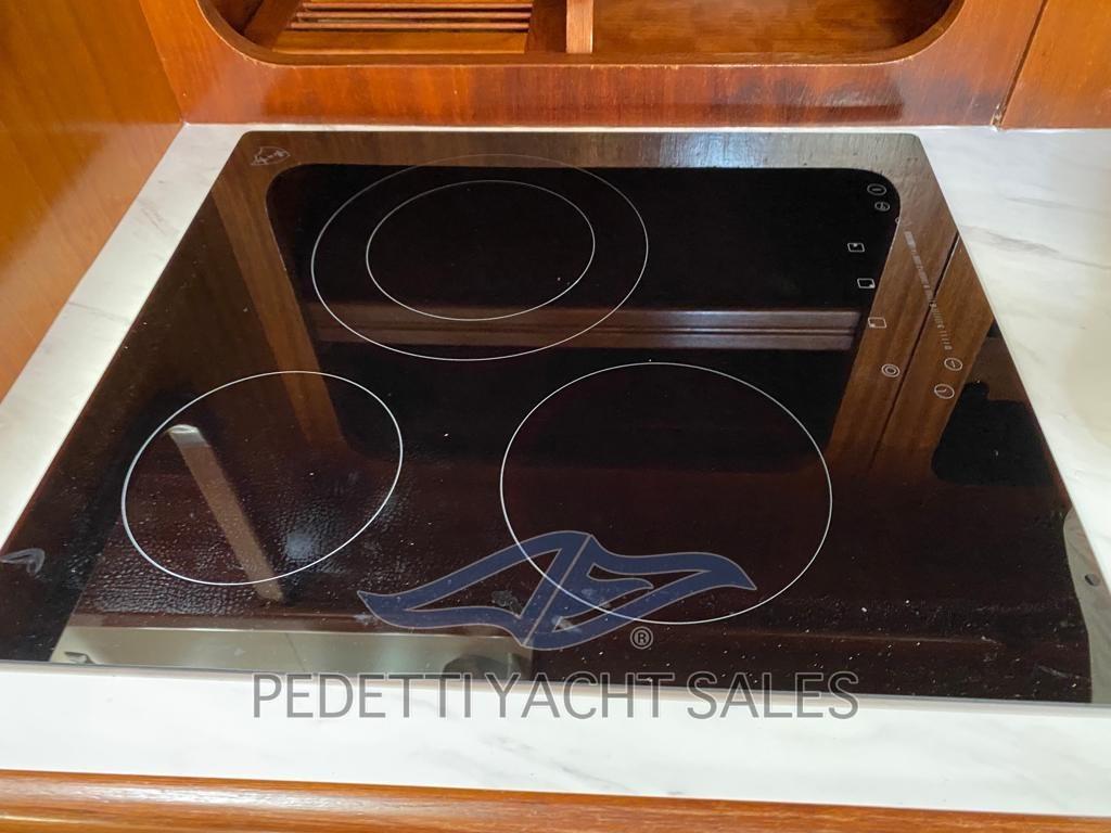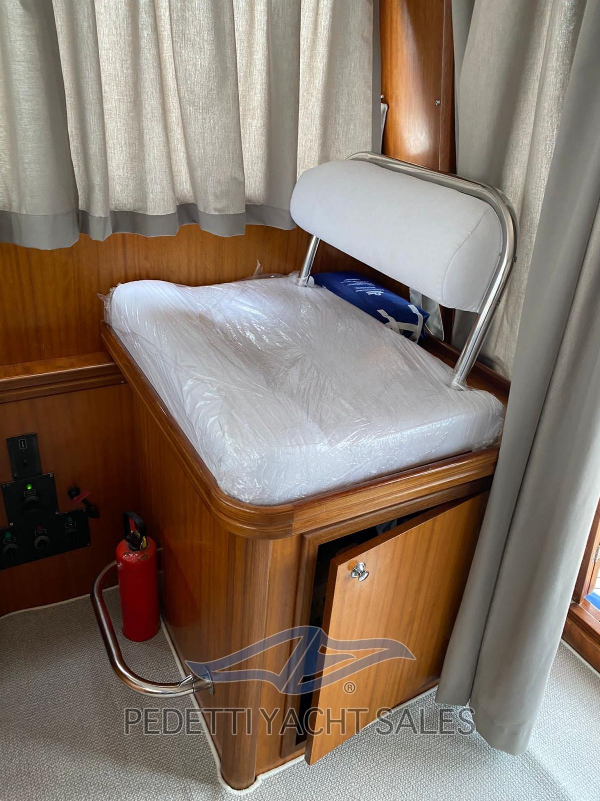 Installed bow thruster with 2 dedicated batteries, installed air conditioning reversible cycle 16000 btu, updated and modified dashboard with new Raymarine gps plotter and vhf, total renovation of interior fabrics (curtains - sofas - driver's seat), new carpet in all rooms, replaced electric toilet, soft gray hull wrapping, new induction hob and new kitchen sink block, new external awnings, new sunbathing cushions in the bow, teak counterboring cockpit and stern platform, TV dinette and owner's cabin, total overhaul of engines (injectors - turbines - exhaust raisers - heat exchangers - filters - belts and tensioners - sleeves - impellers), overhaul of the generator, hull at zero, protective and antifouling treatment, replaced batteries, new roller blackout blinds in the wheelhouse.