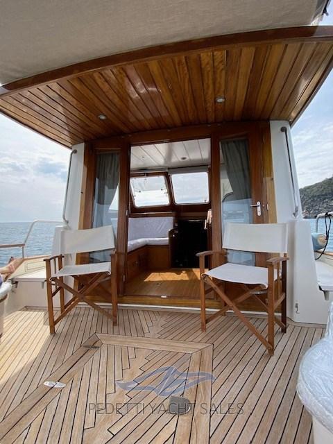 MASE generator, GPS, ECO, VHF, Pilot with remote control, full cushions, Teak in cockpit, cockpit benches, electric winch, hydraulic walkway, new stereo, electric toilet, aft awning, increased boiler, inspectable diesel filters, charger and ground cable, repainted outer woods.