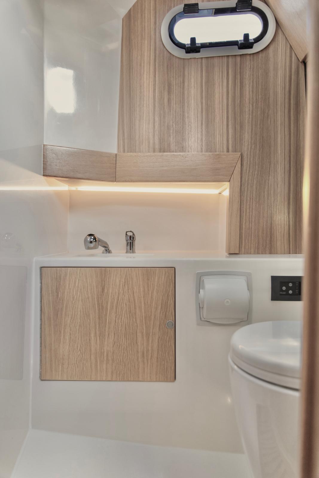 Escape 30 is the perfect all-arounder that combines protection and an open space with all necessary amenities compiled in just 30ft. The clever deck layout and pioneering solutions provide the functionality of a 40 ft experience in a compact power cruiser with cabin and toilet with full standing height, tanning space and hard-top protected kitchen and dining areas. Escape 30 provides the modern 30ft open powerboat layout into a more compact and sporty size offering the ultimate speed and raw performance.