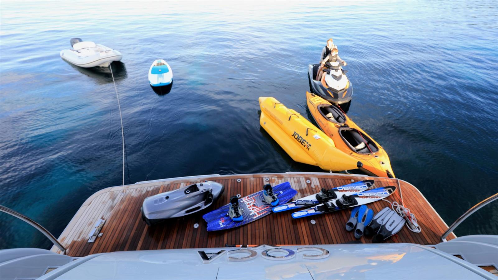 2 Anchor (2x 120 m de chaine de 14), 16 Batteries (12 x 2vlt de 280 amp de 2025 service- 4 Optima 50amp de 2022 moteurs), Teak Side Decks, 2 Battery charger (Mastervolt 24V/100Amp), Special Colour (gris clair de 2016), Twin Steering (hydrautique), Stern Thruster (hydraulique en tunel), Bow Thruster (hydraulique), Courtesy Lights (intérieur), Jet-Ski (SEA DOO 36 de 2012), Auxiliary Engine (50cv Yamaha 4T de 2022), Gangway (Benzoni hydraulique), Platform (teck avec ber), 2 Side door, Teak Cockpit, Shorepower connector (380 vlt avec transformateur 220vlt), 2 Electric Windlass (LOFRAN 2700W de 2025), swimming ladder (escamotable en inox), Tender (Capelli 380), 2 Stern Winches.