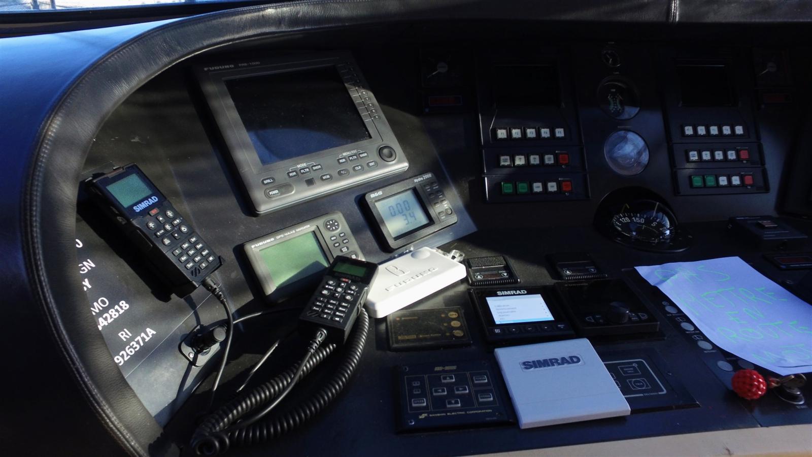 AIS (FURUNO), Rudder angle indicator, 2 Compass, 4 Electronic engine control (et cadran moteur de 2024), Odometer (B&G Hydra 2000), 2 DSC vhf (Simrad HS100), GPS (FURUNO GP 37), Autopilot (FURUNO avec rep fly), Plotter with GPS antenna (MAX SEA ecran 17 avec répétiteur fly et clavier), Radar (FURUNO FRS1000), VHF Radio (Icom BC210), Sonar (B&G Hydra 2000), Wind Station (B&G Hydra 2000).