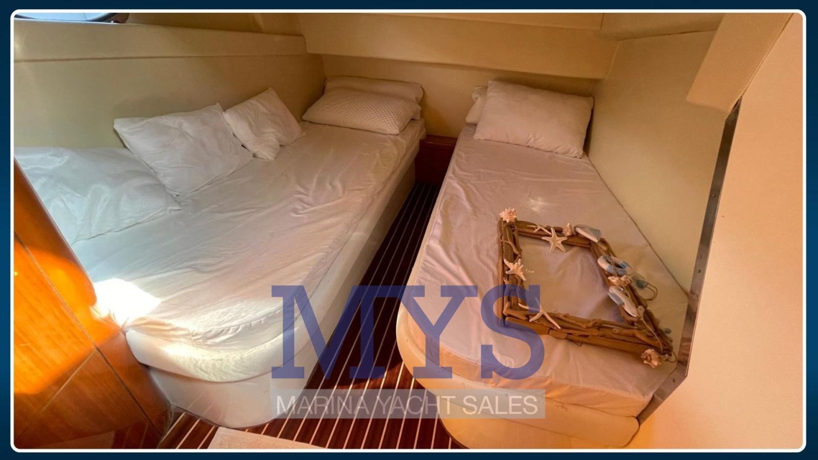 Fume/Gas Detector, Engine Alarm, Anchor (+ 60 mt di catena), Electric Engine Compartment Opening, Water pressure pump, Life Raft (nuovo 2024), 4 Batteries (x 200 Ah), Deck Shower, Hydraulic Flaps, Fire Extinguishing System, Washbasin in the cockpit, Courtesy Lights, Gangway, Platform (in Teak), Automatic Bilge Pump, Manual Bilge Pump, Entry door, Teak Cockpit, Shorepower connector, Rollbar, Electric Windlass, swimming ladder, cockpit table, Living Room Foldable Table, Horn.
