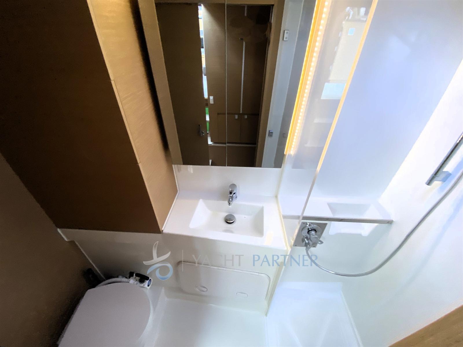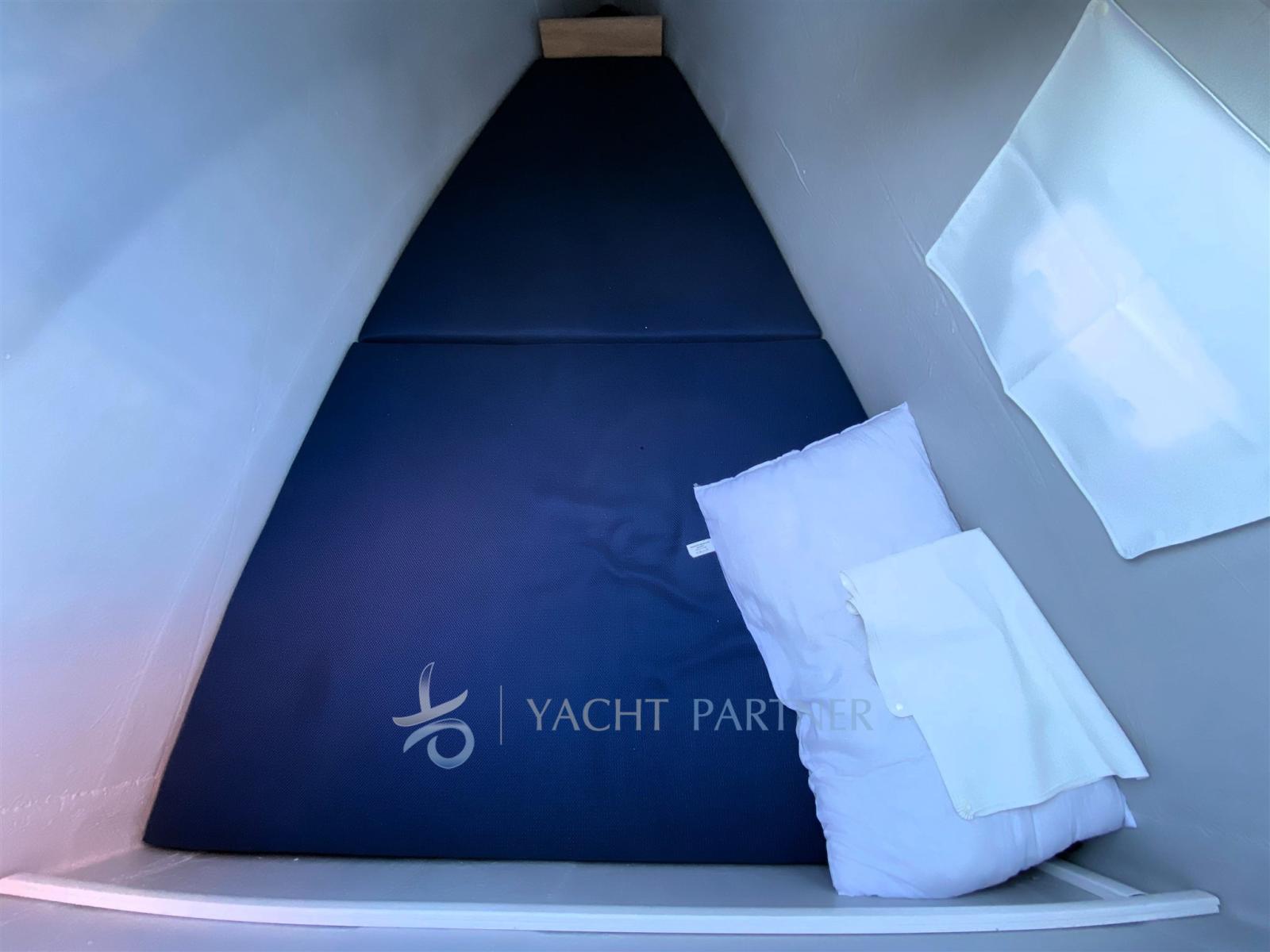 Complete internal and external cushions, sunbathing cushions on bow net; Fans in each cabin, mosquito nets and blinds; Hot water boiler, 2 manual marine toilets, synthetic teak floors; Fusion Apollo RA670 stereo system with 4 speakers (2 in the saloon + 2 in the cockpit); LED courtesy lights in the cockpit, tablet holder with charger station; Additional refrigerator 55 L, additional water tank, extra lockers in the dinette