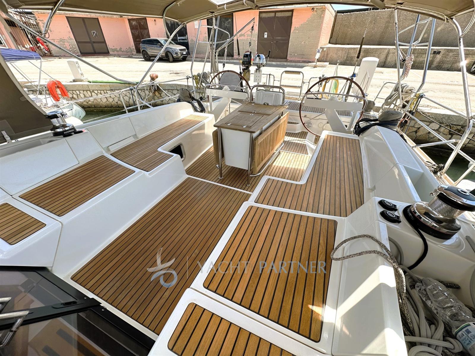 Classic white lacquered mast, elegant and resistant, with furling mainsail on the boom for simple and safe management of the main sail; High quality Facnor trolleys, a guarantee of smoothness and reliability in manoeuvres; Taupe-colored lazy bag, sober and refined, perfectly integrated with the design of the boat; Bamar electric furler, for quick and effortless jib adjustment; Hydraulic backstay, ideal for optimizing mast tension and improving sailing performance; Return of the mainsheet to the additional winches, for easy handling even in demanding conditions; Manoeuvres dedicated to the asymmetrical spinnaker, designed for navigation with a downwind and high performance; 6 electric winches, strategically distributed to ensure maximum control and comfort while sailing.