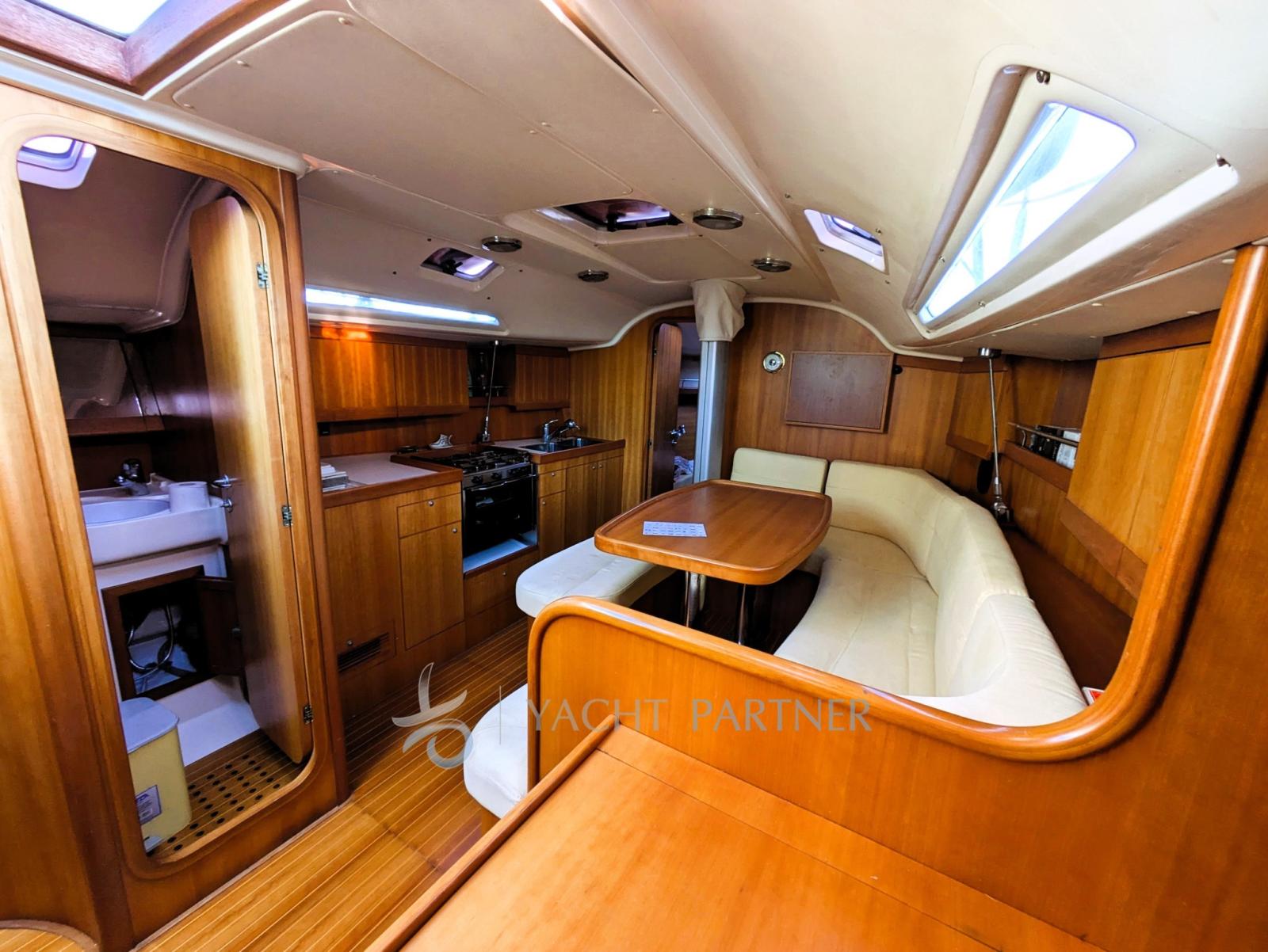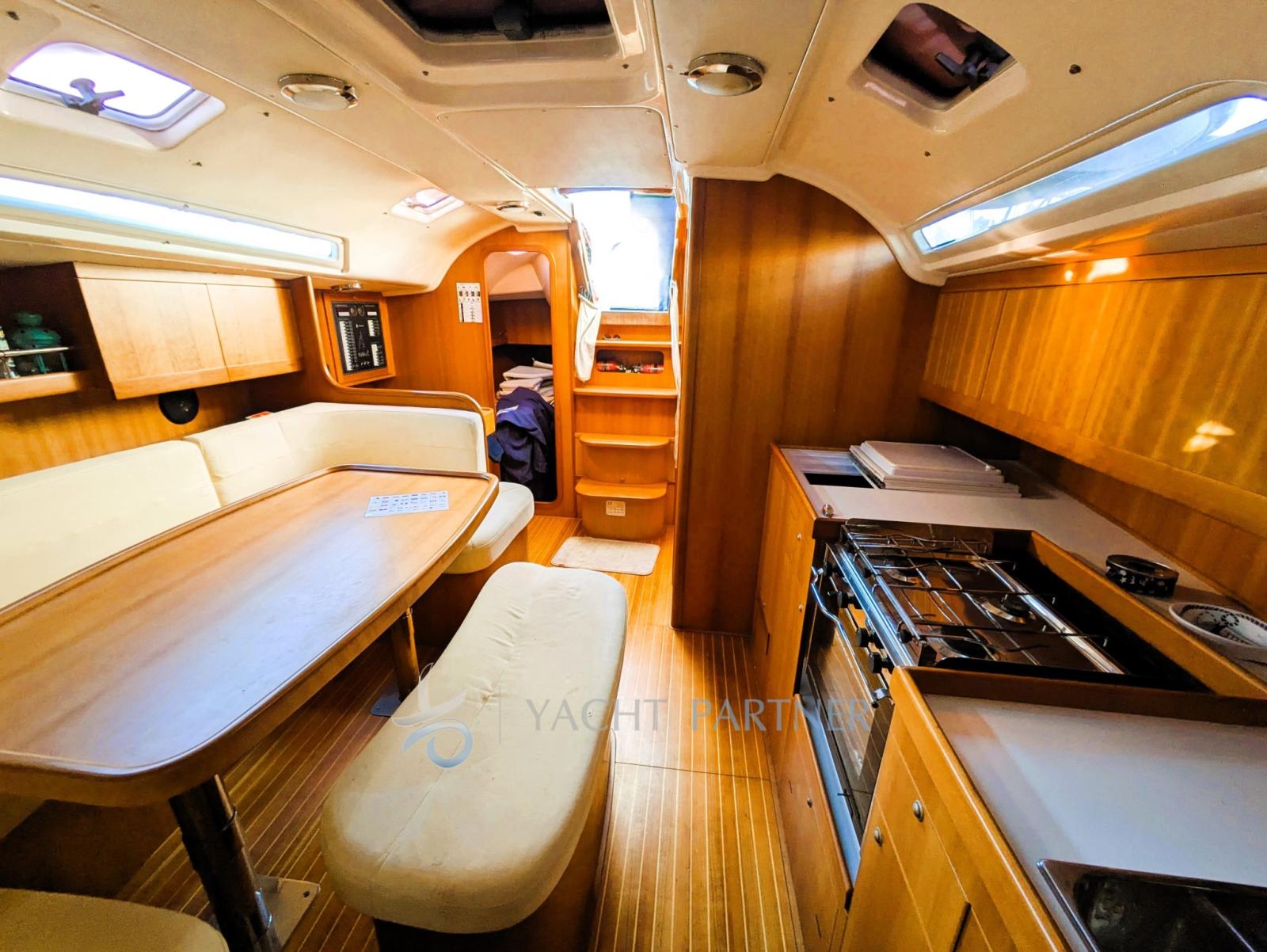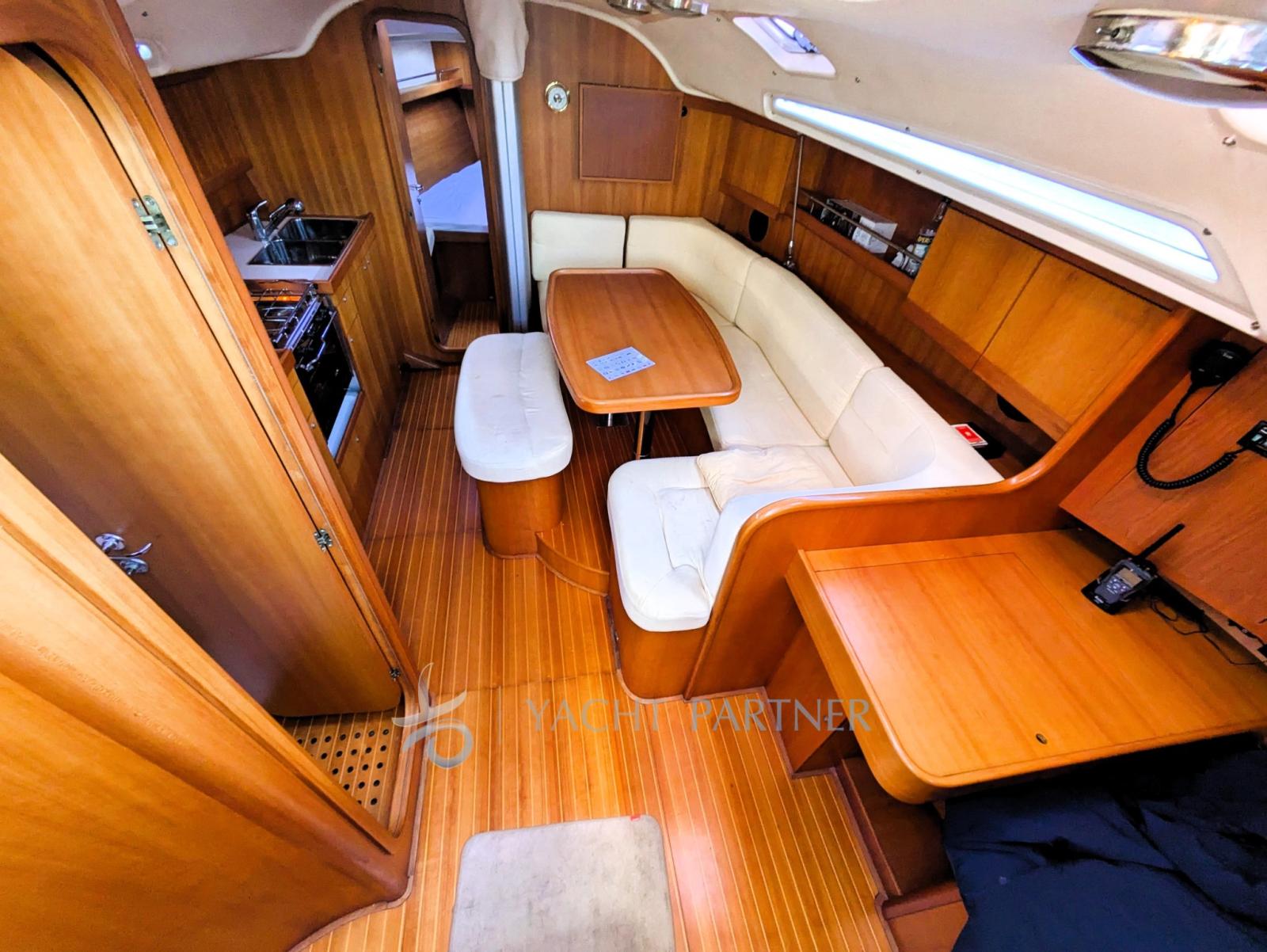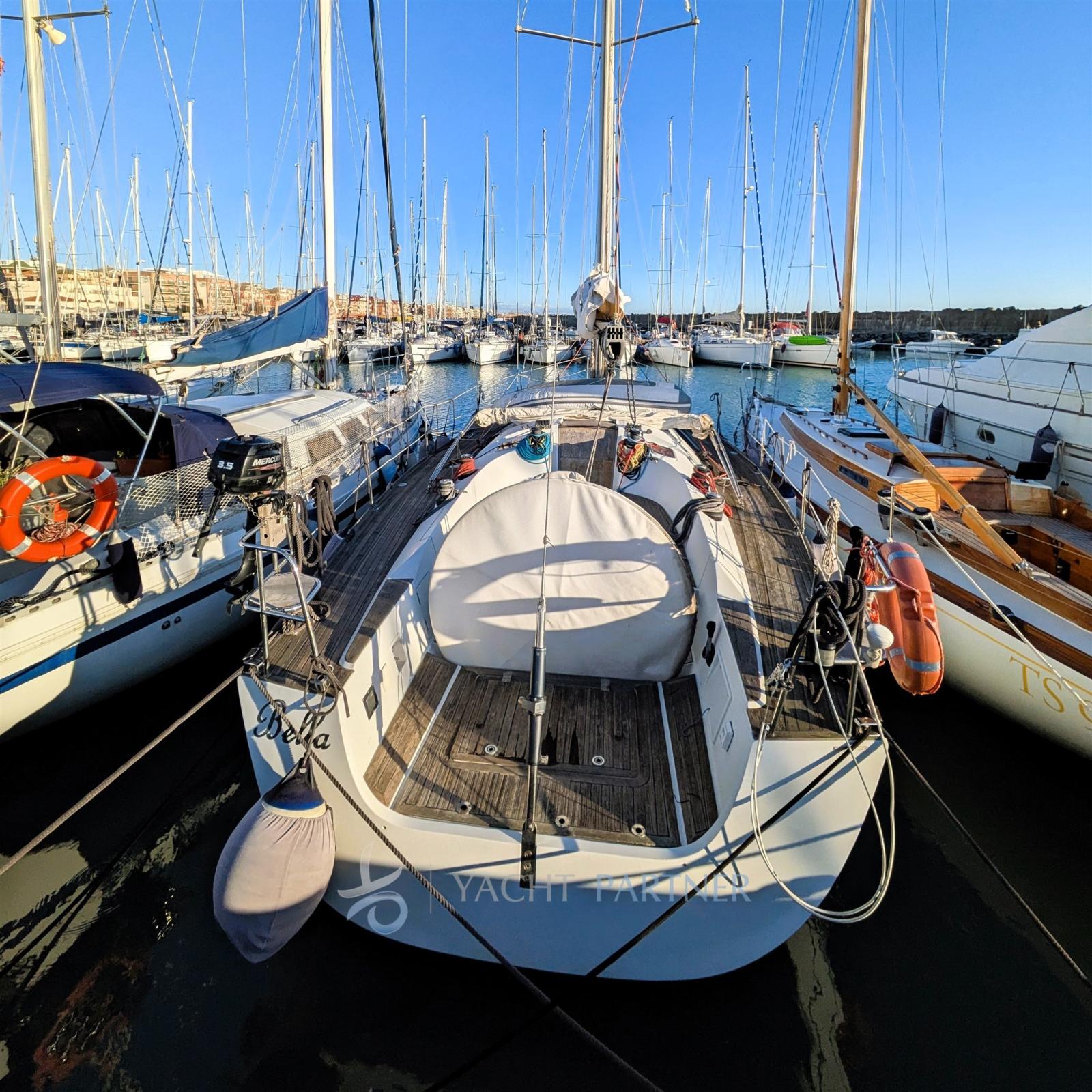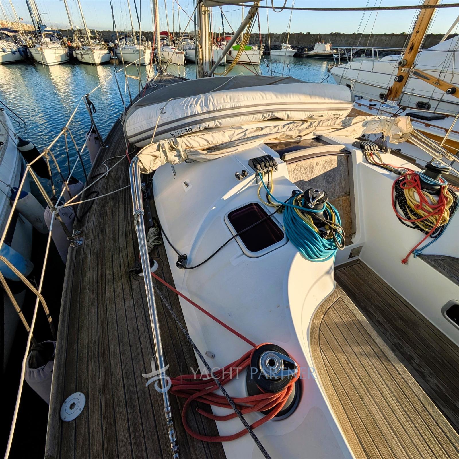 Engine Alarm, 2 Anchor (DELTA - 50 MT 8 MM ( 1 ancora rispetto)), Spare shaft, Water pressure pump (Jabsco), 3 Batteries (2+1), Teak Side Decks, Battery charger (QUICK SBC 40AH), Deck Shower, Directional Spotlight, Auxiliary Engine (SUZUKI 4 CV), Gangway, Manual Bilge Pump, Entry door, Teak Cockpit, Shorepower connector, Water harbor connector system, Electronic instrumentation repeater, Electric Windlass (LOFRANS 1000W), Strand rigging, swimming ladder, Outboard Engine Support Bracket, cockpit table, Living Room Foldable Table, Tender (ZODIAC), 6 Winch (4 HARKEN 44 + 2 HARKEN 48), Windex.