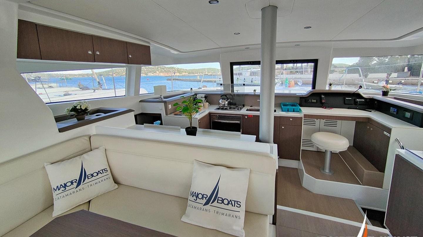 Burner, Oven (gaz), Deck Refrigerator (272 L en 220 vlt avec convertisseur dedié), Dishwasher (220vlt sous evier 6 couverts).